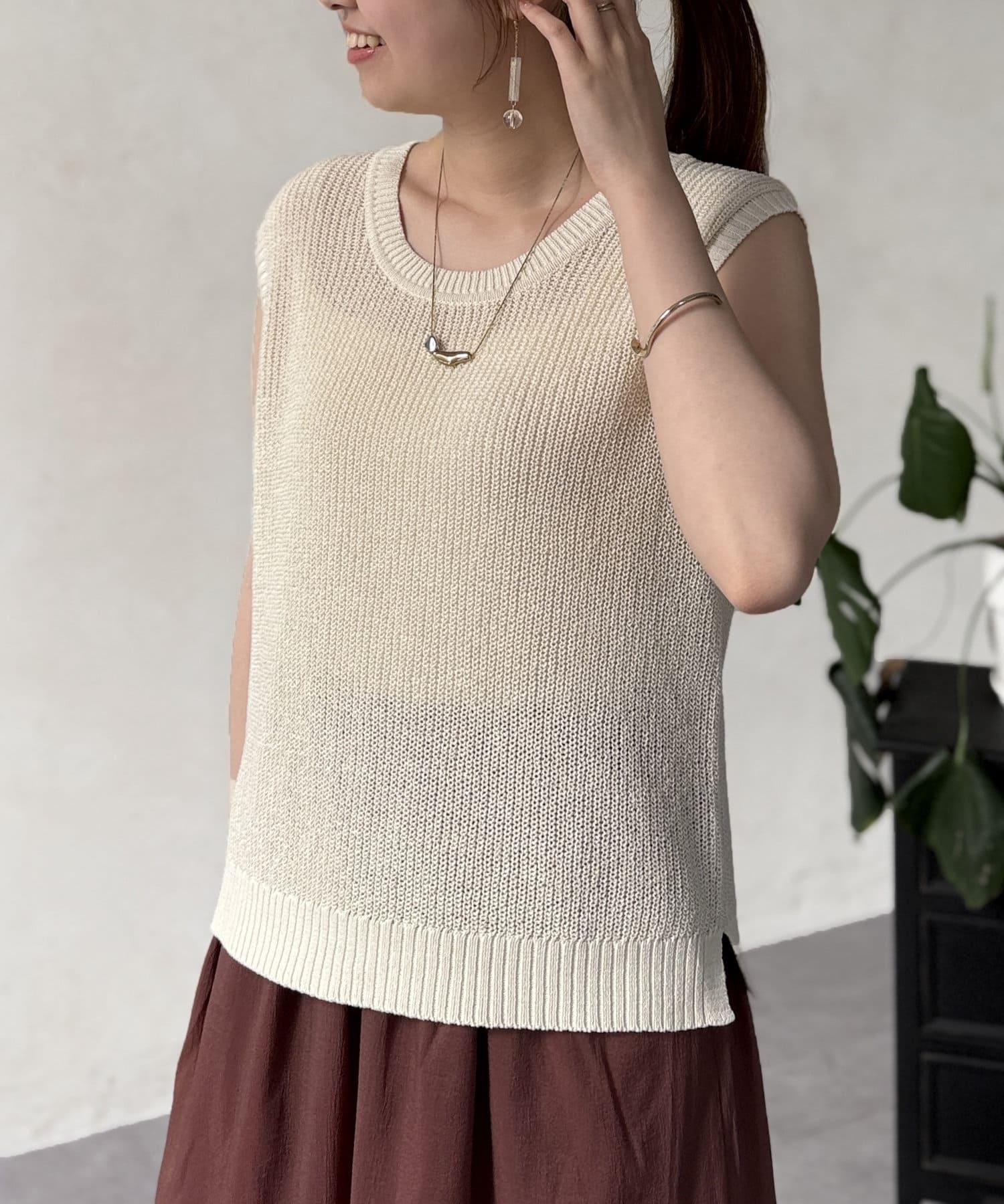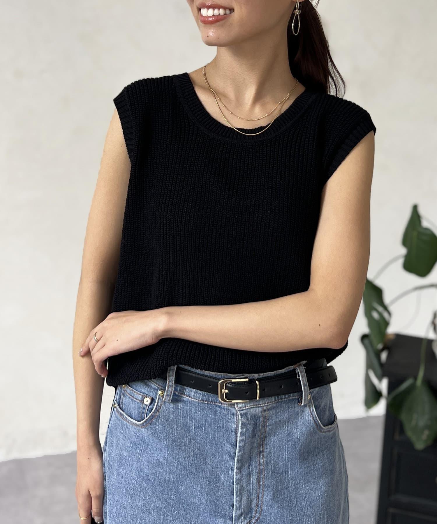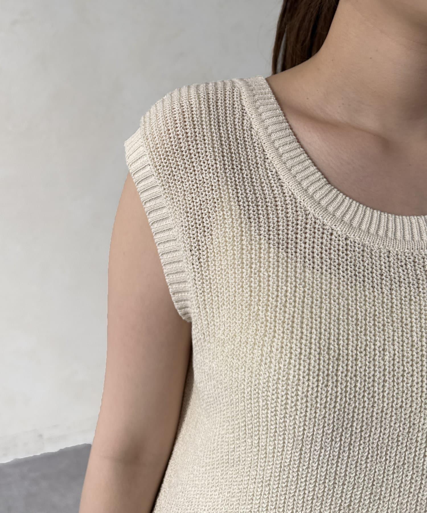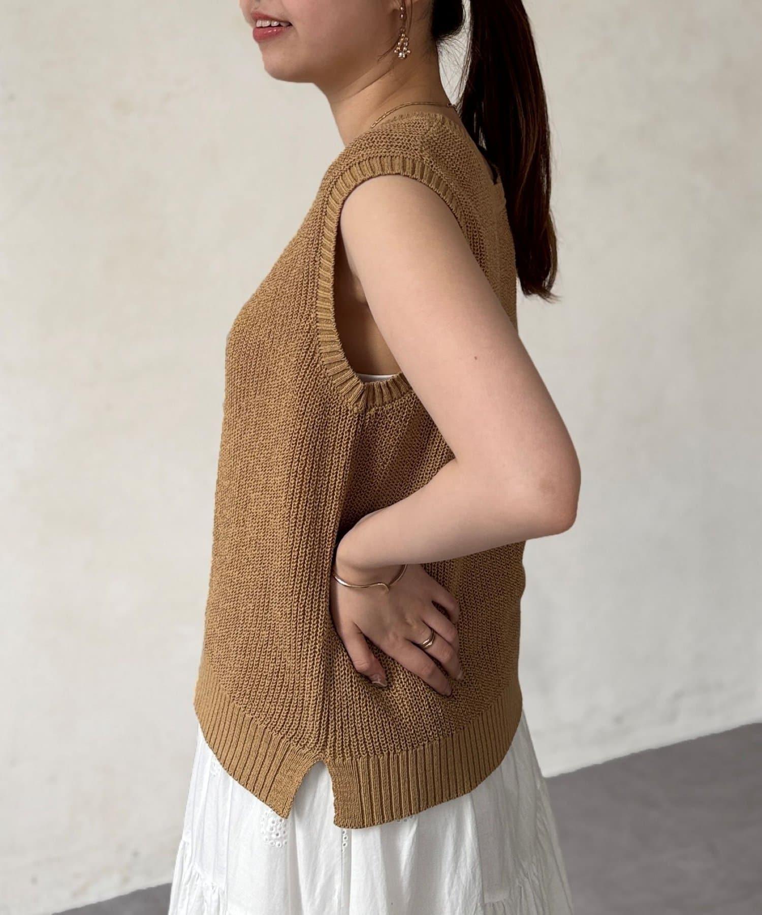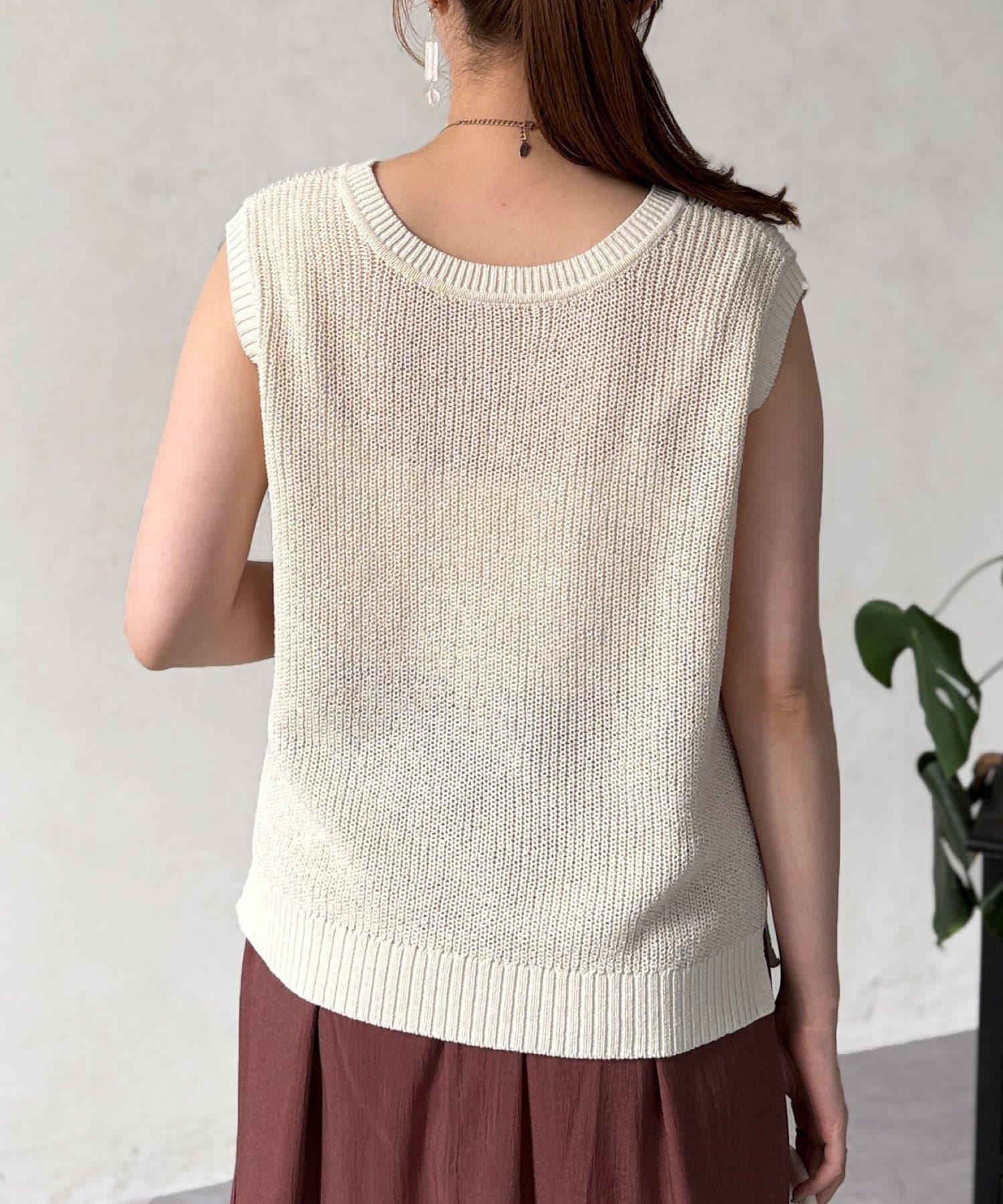 無袖針織衫,版型寬鬆,不挑身材線條。
