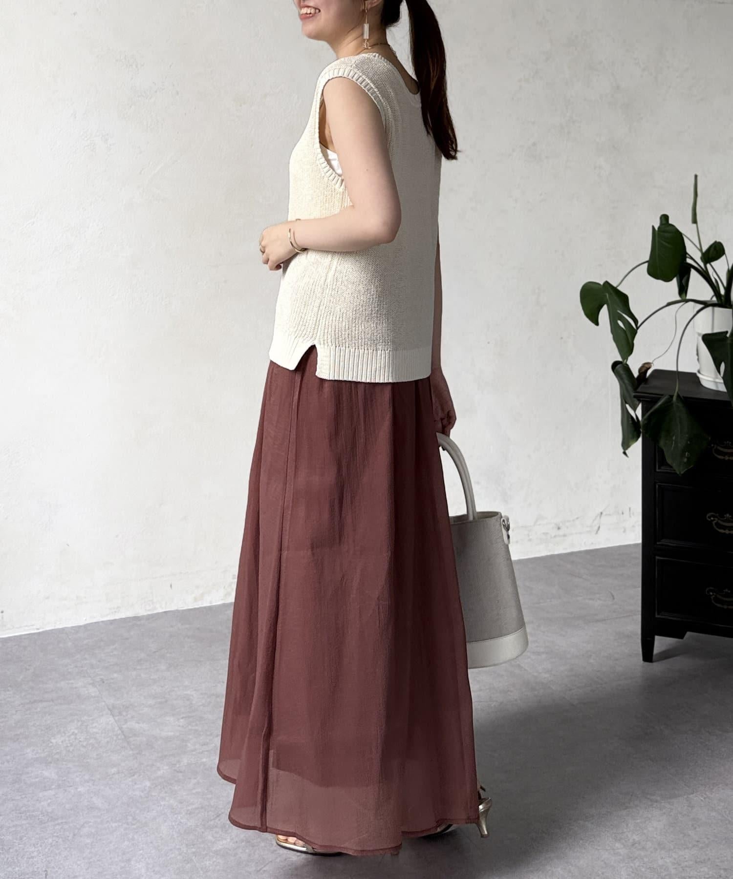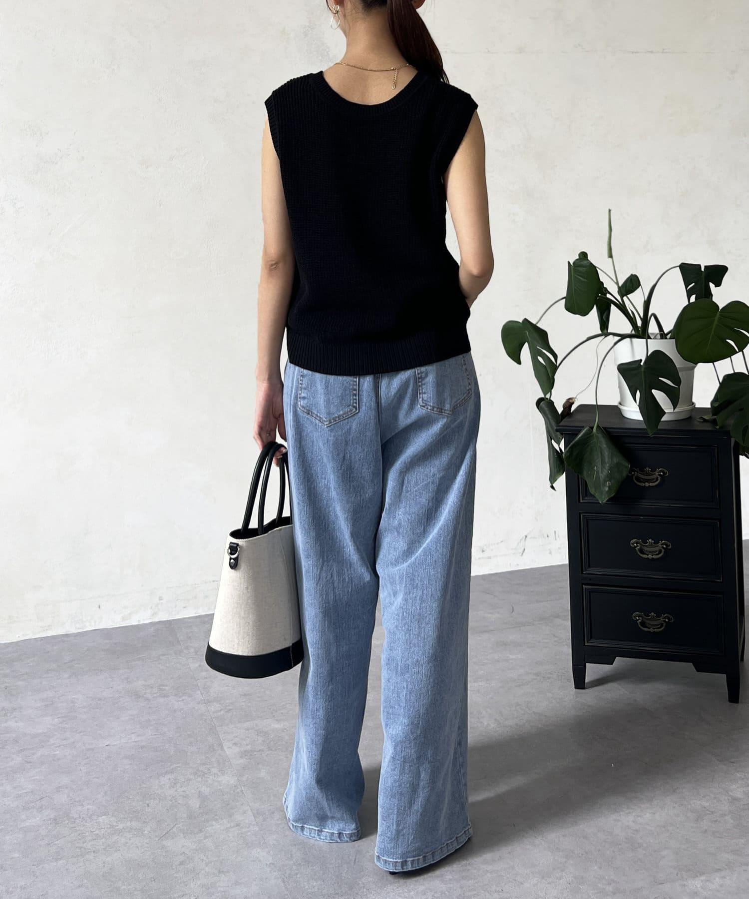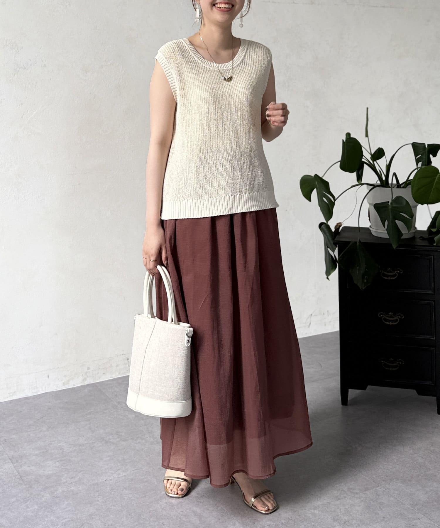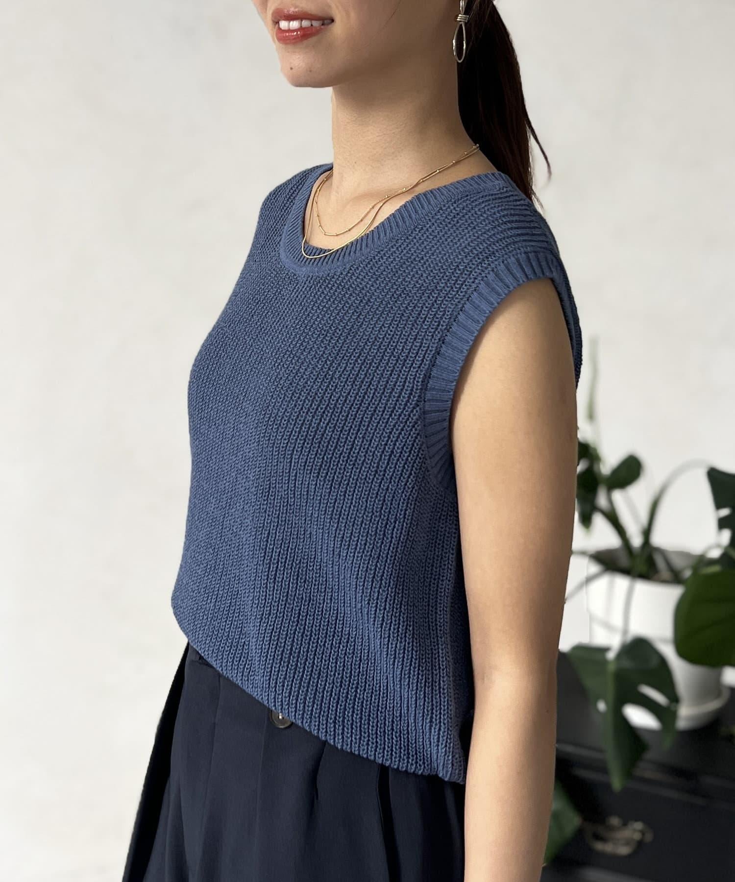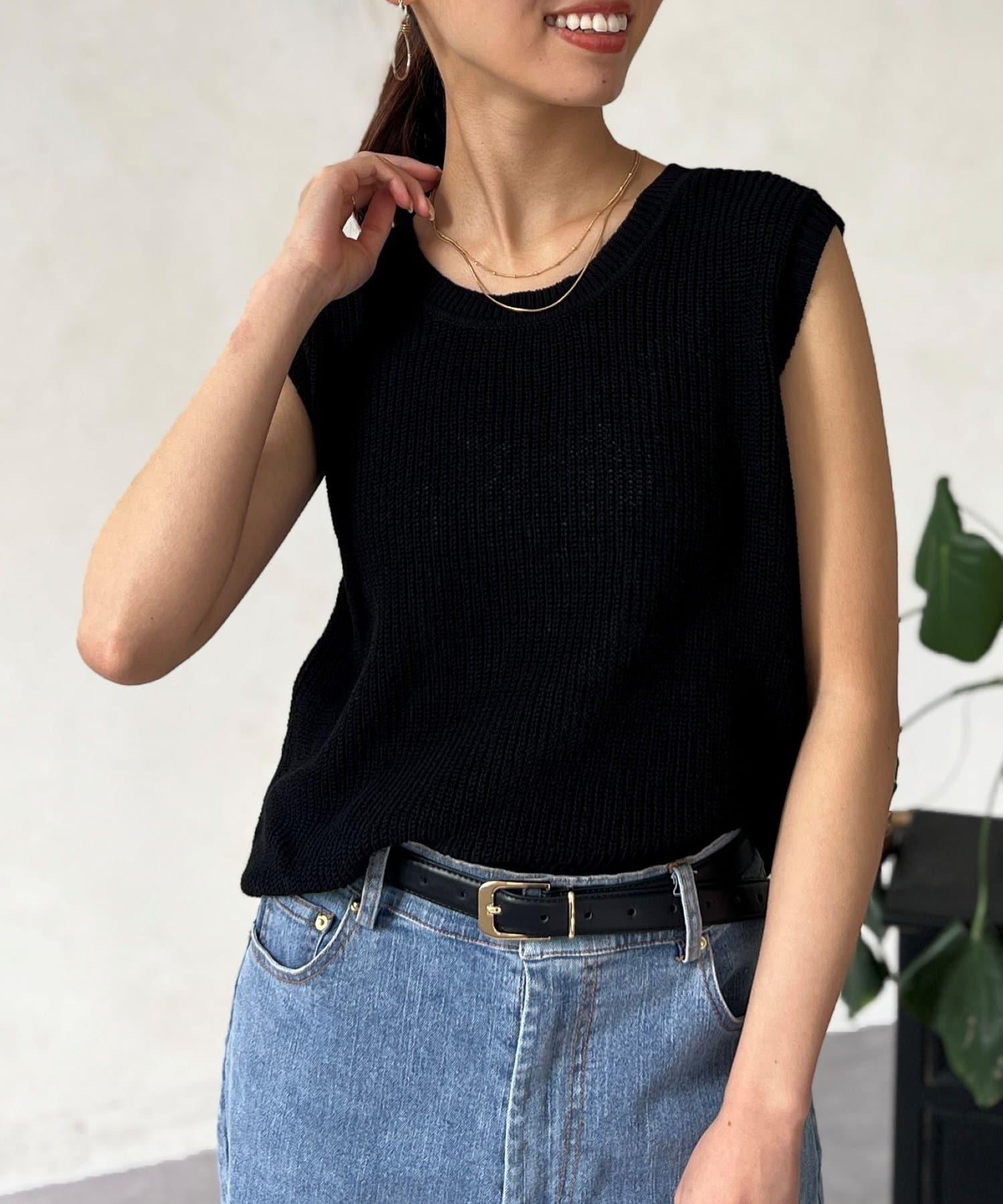 無袖針織衫,版型寬鬆,不挑身材線條。