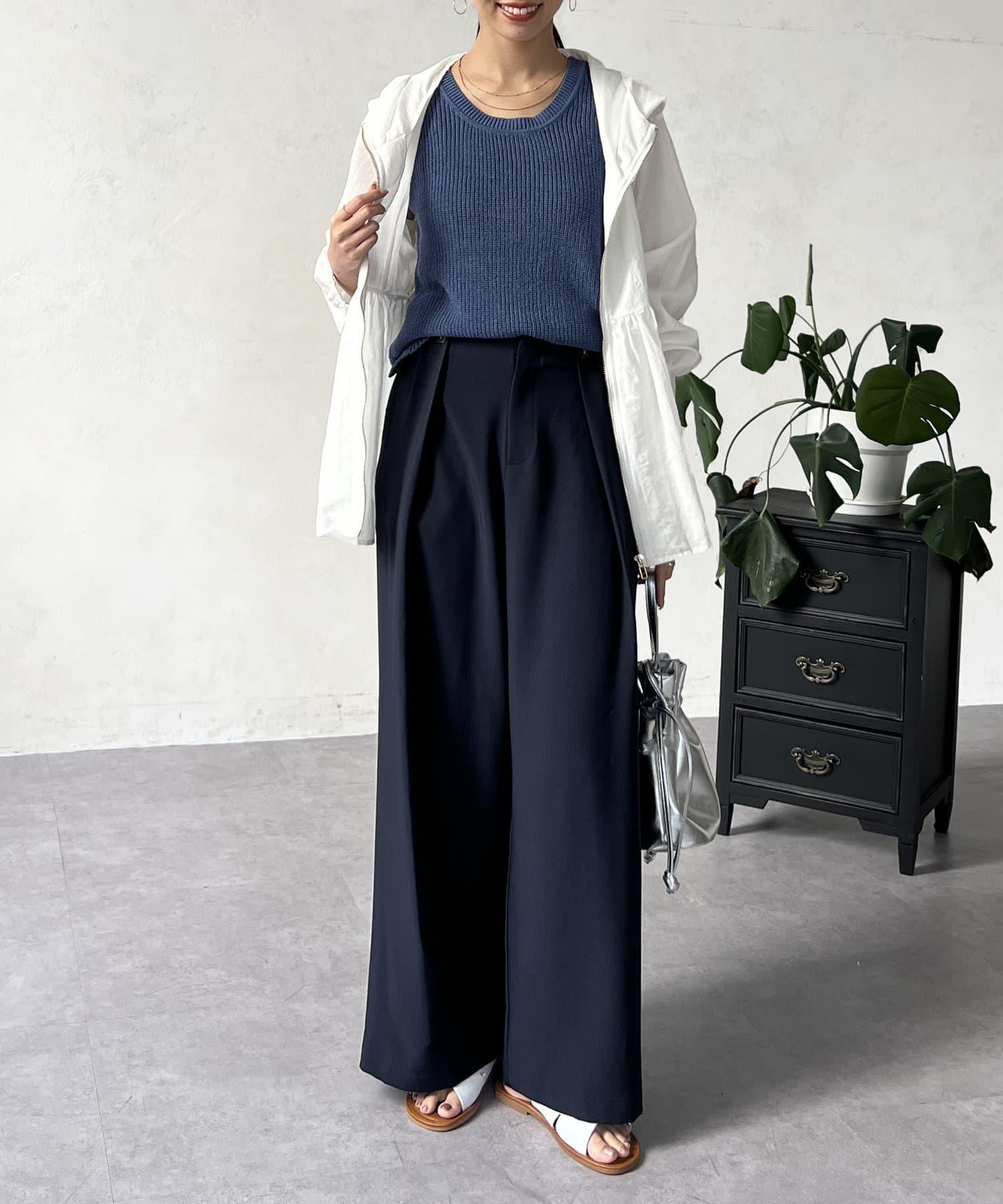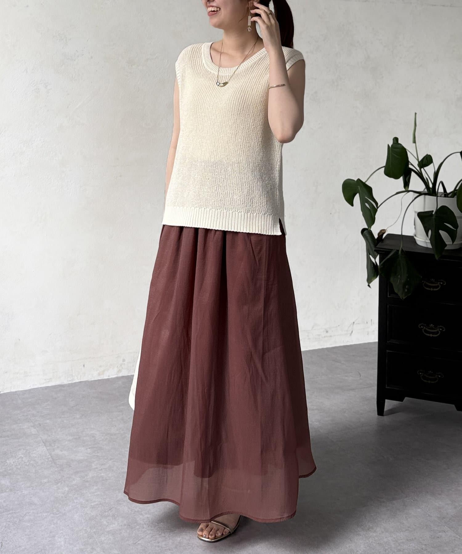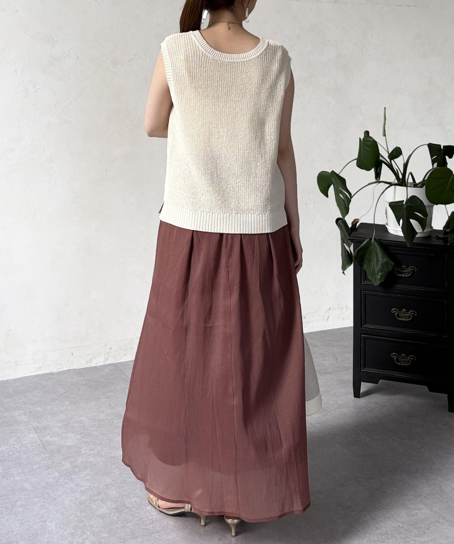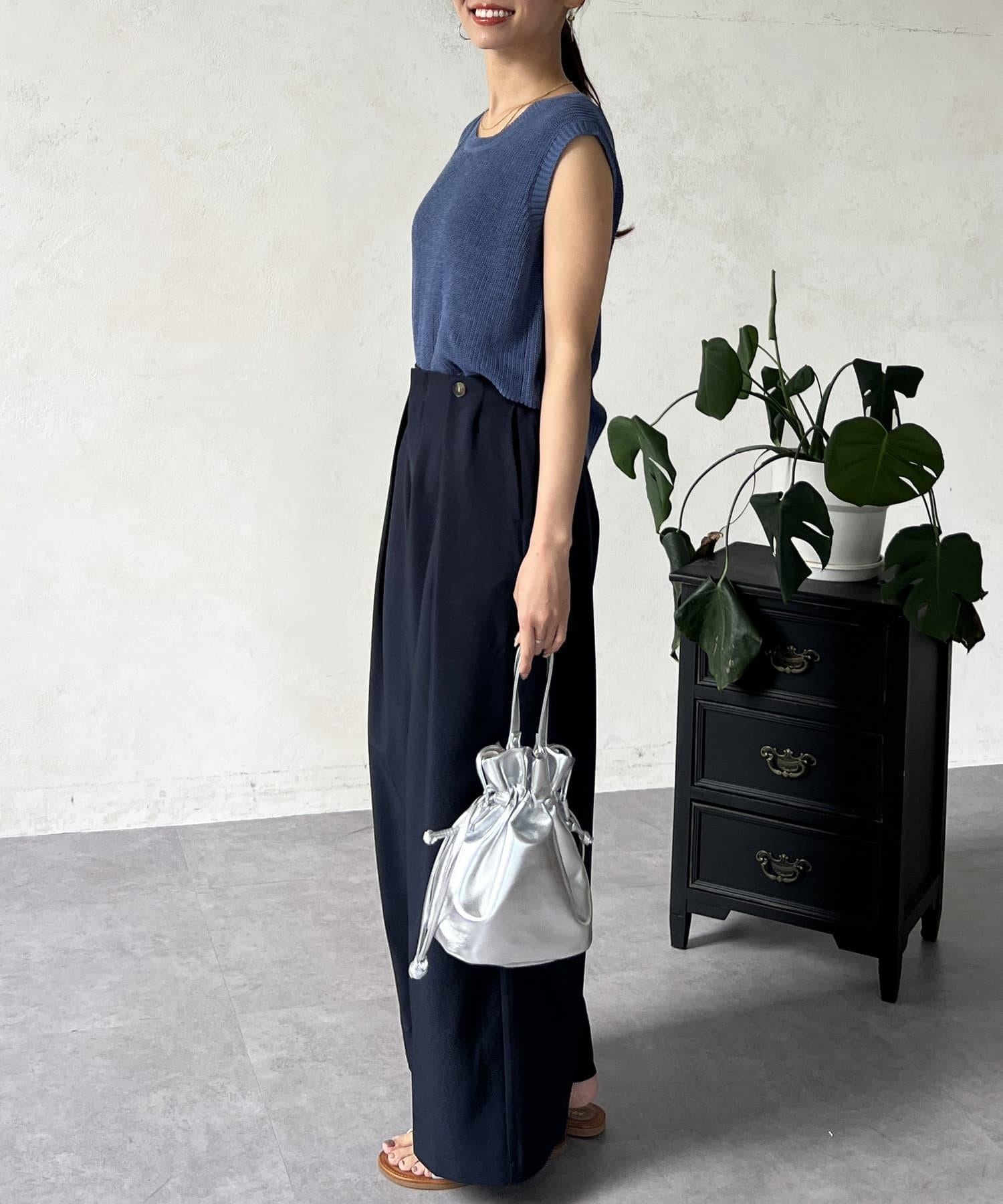 無袖針織衫,版型寬鬆,不挑身材線條。
