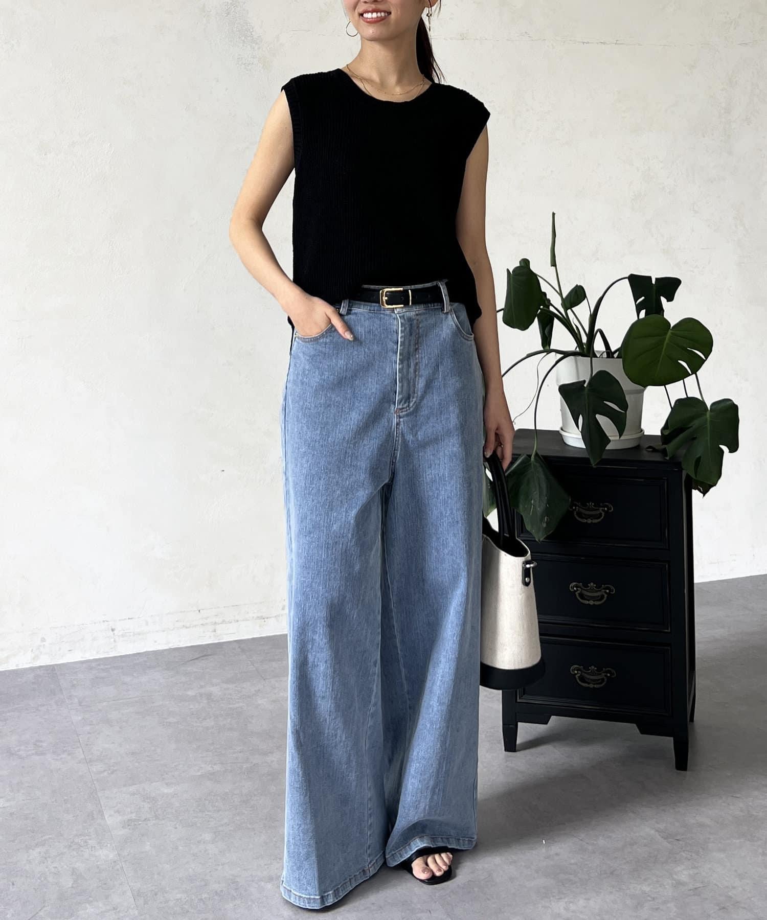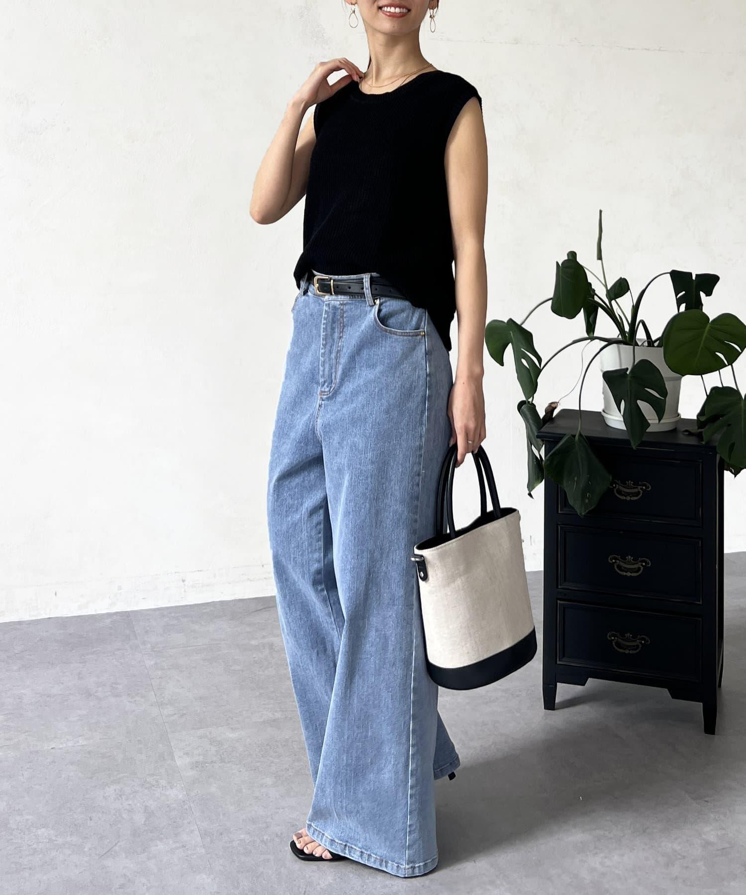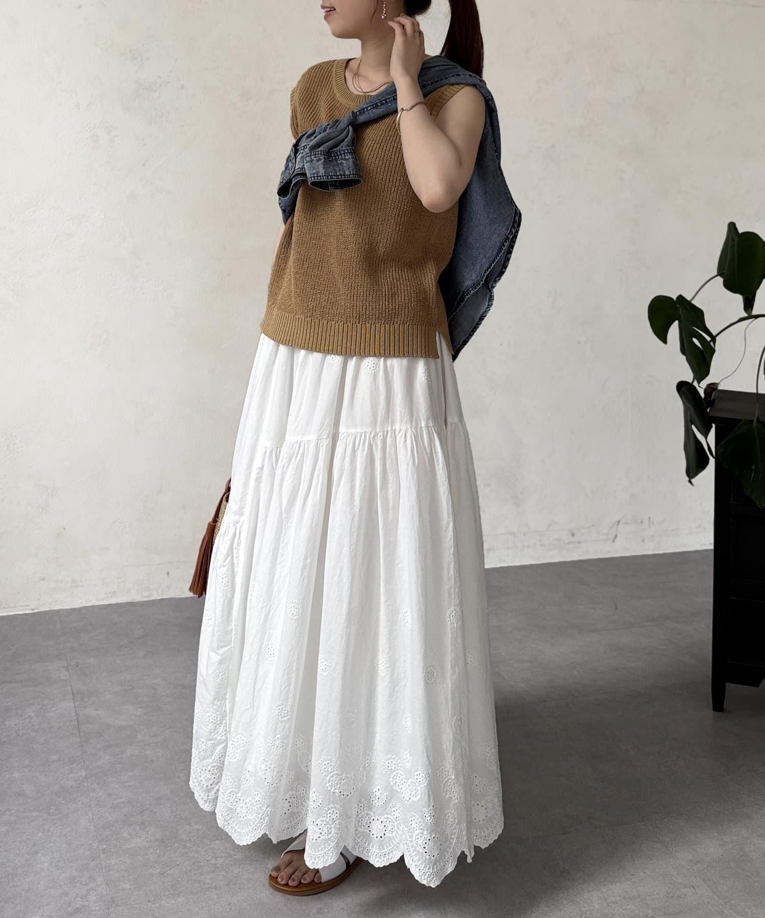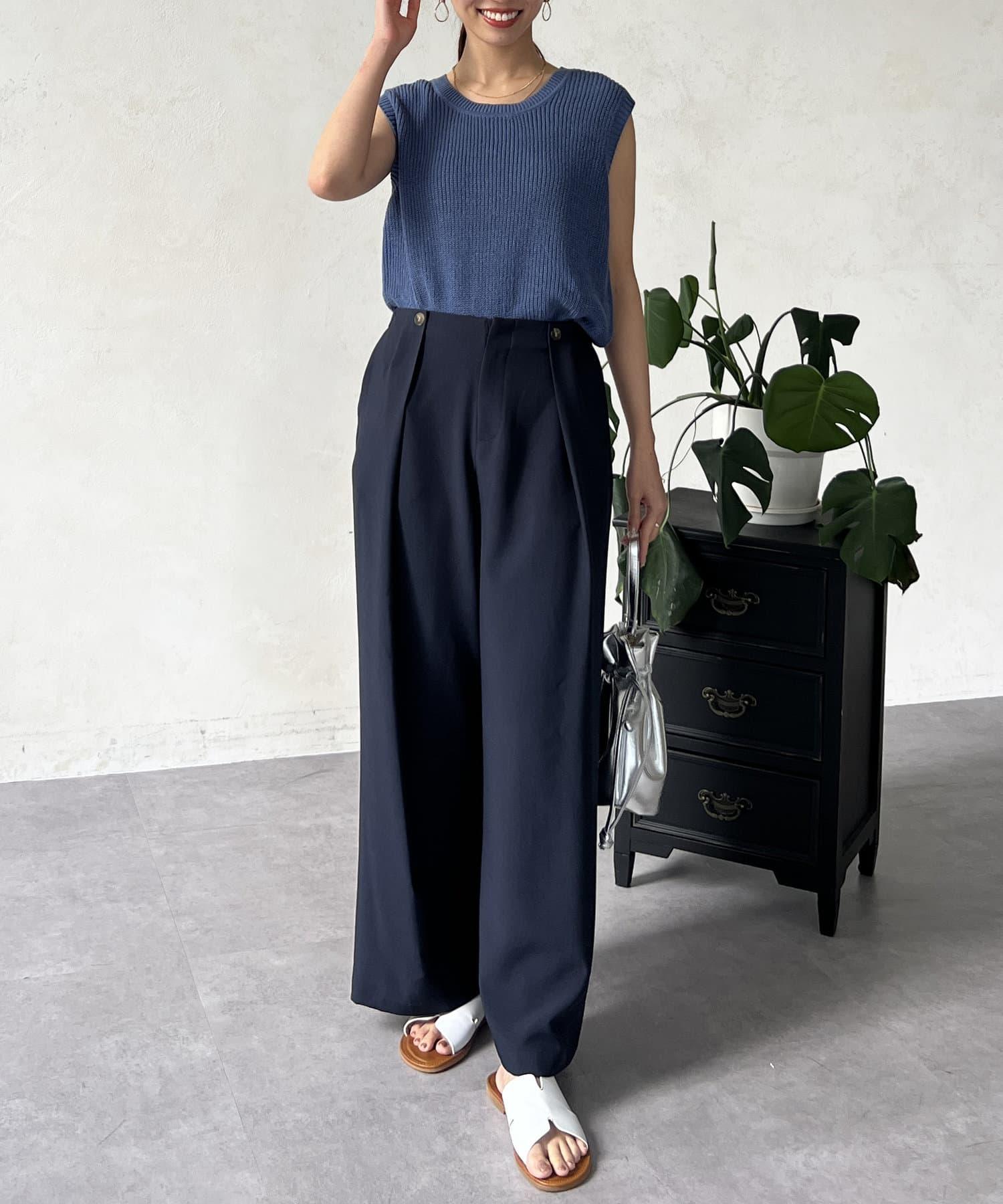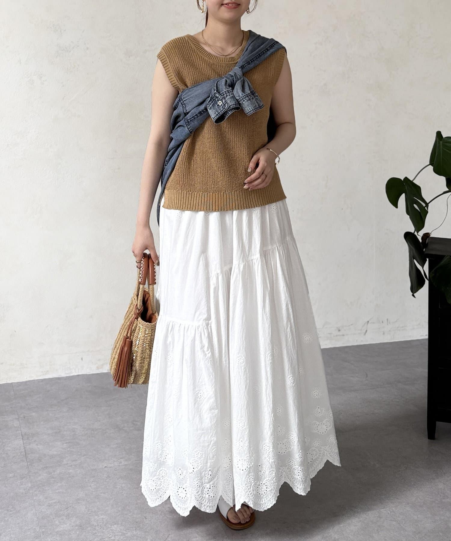 無袖針織衫,版型寬鬆,不挑身材線條。
