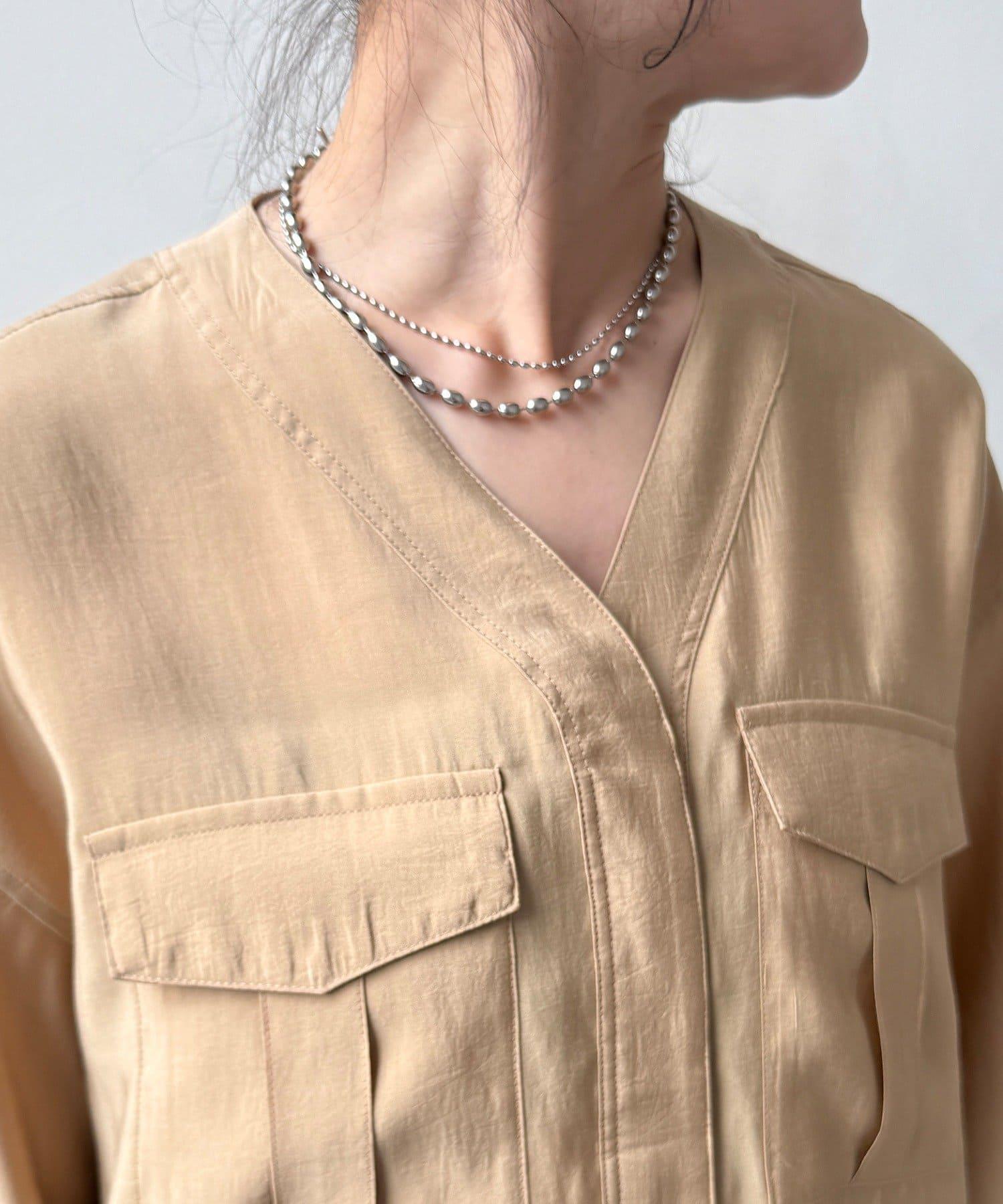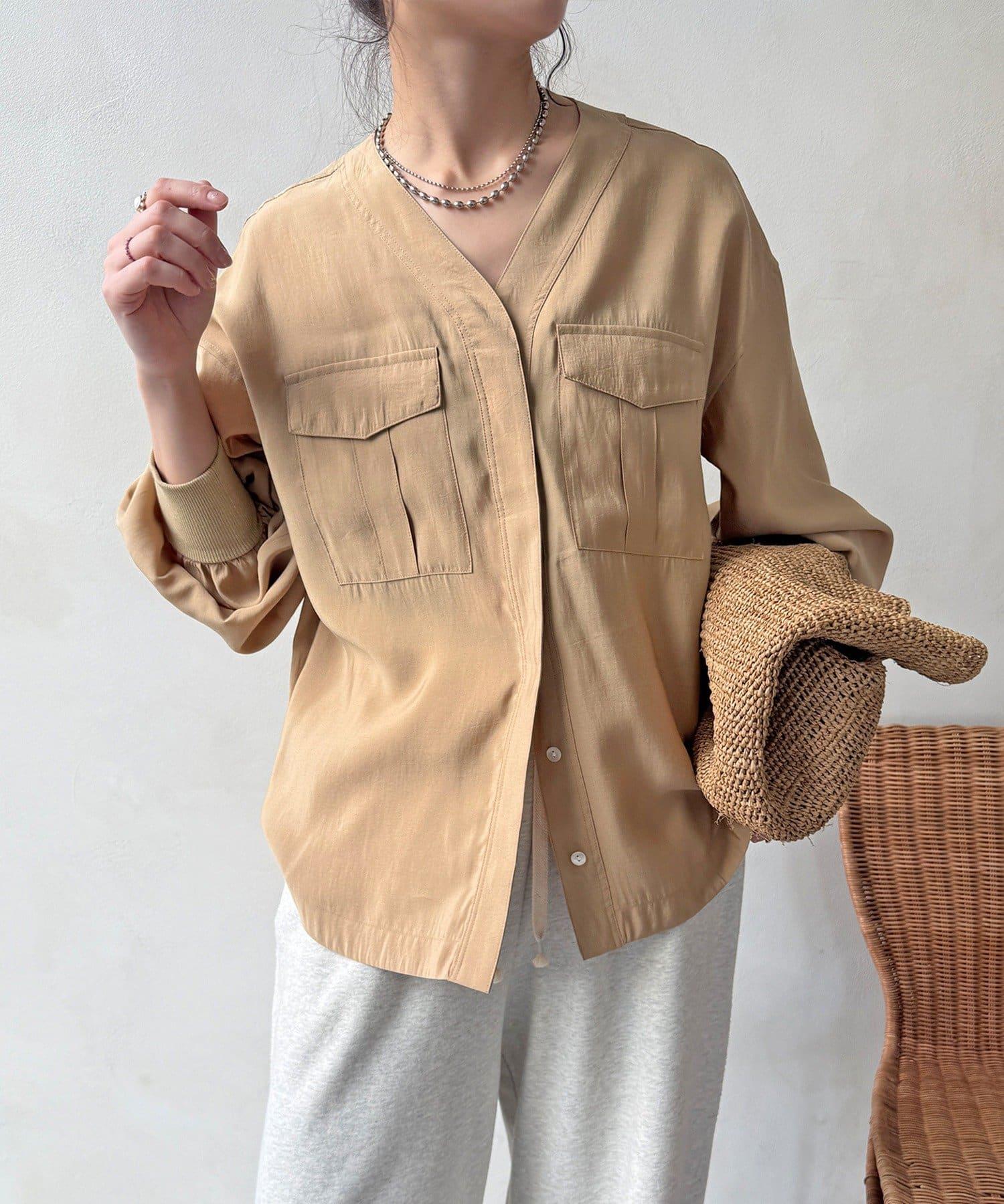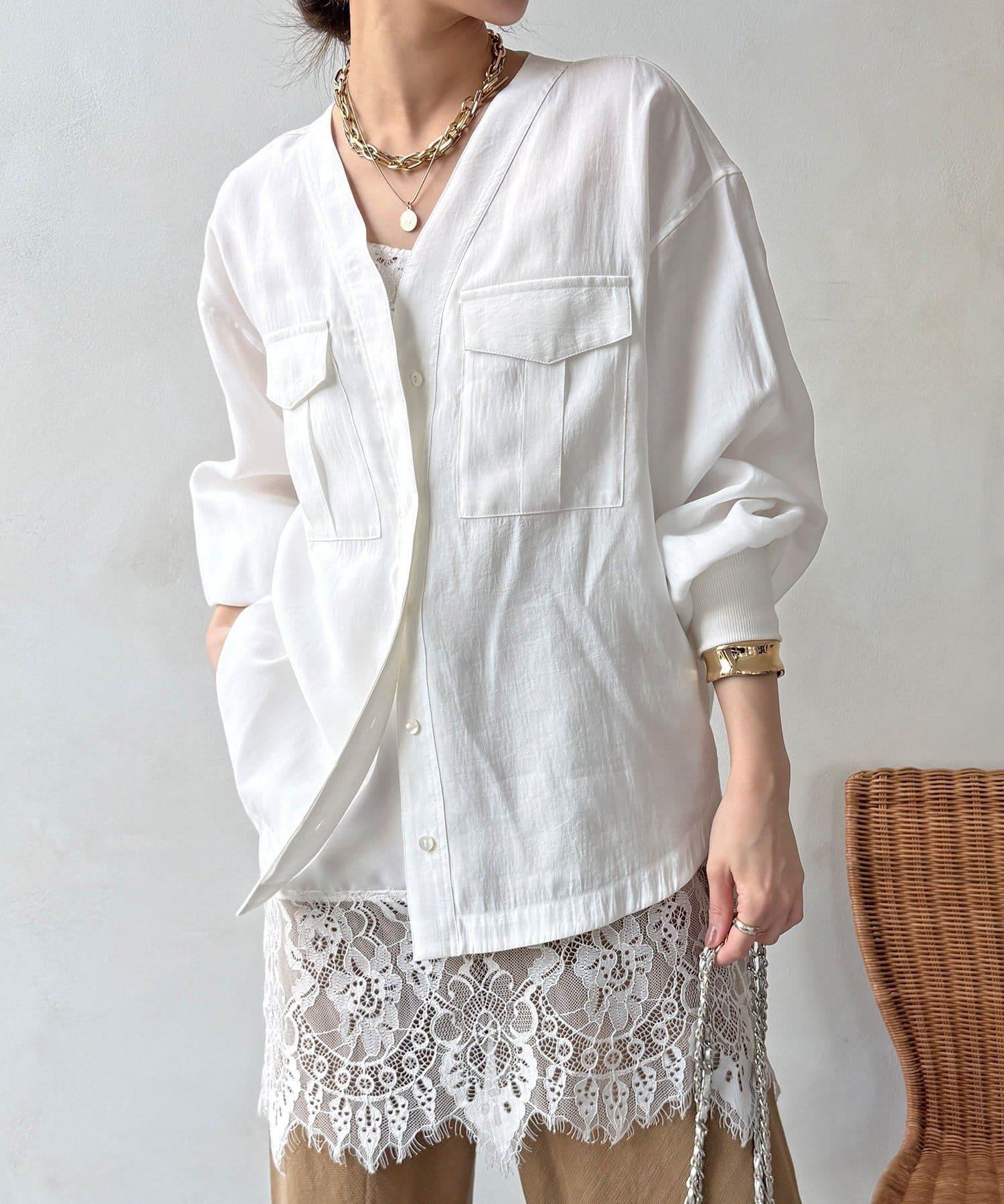 無領的 V 領設計使頸部看起來更簡潔,臉部看起來更利落!