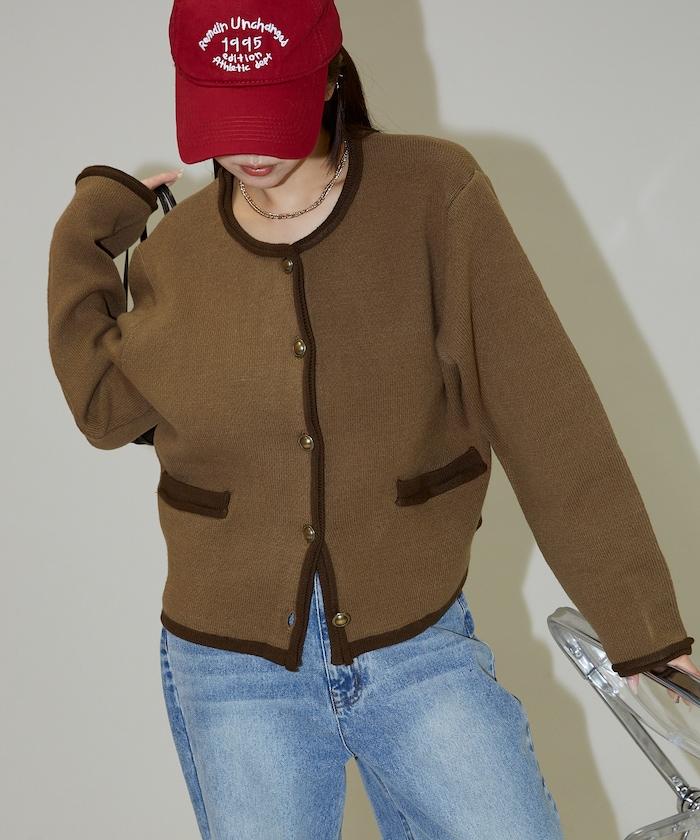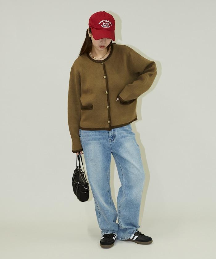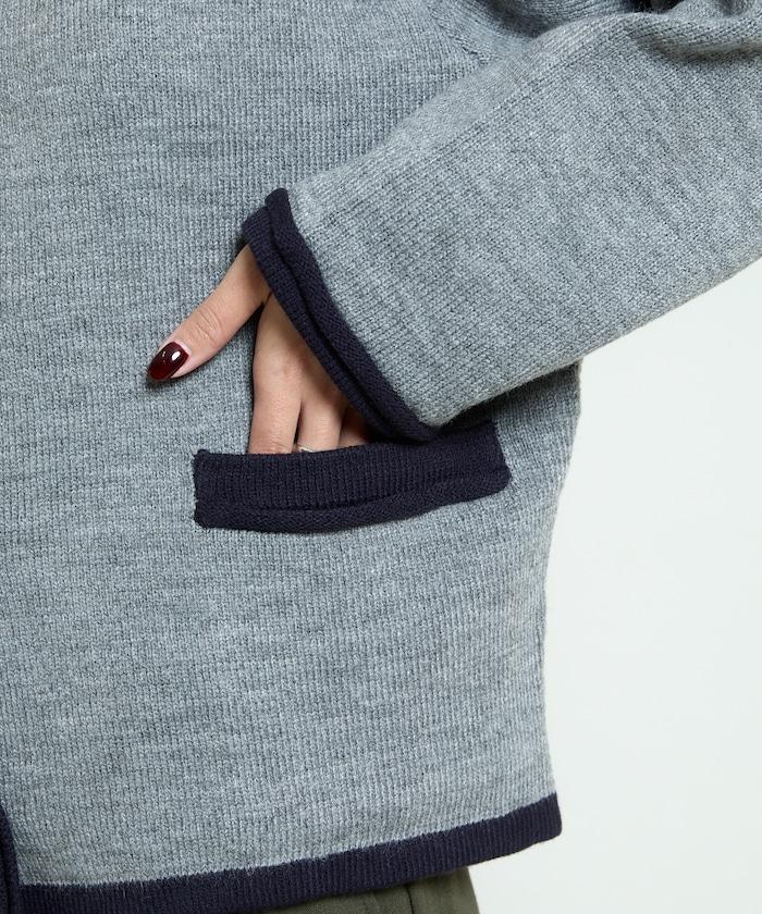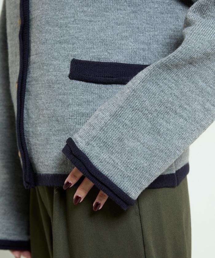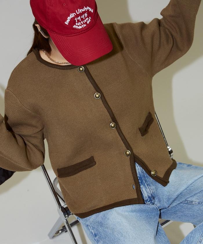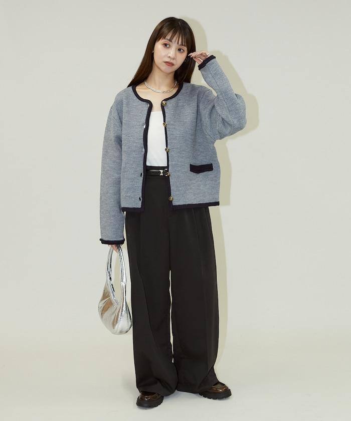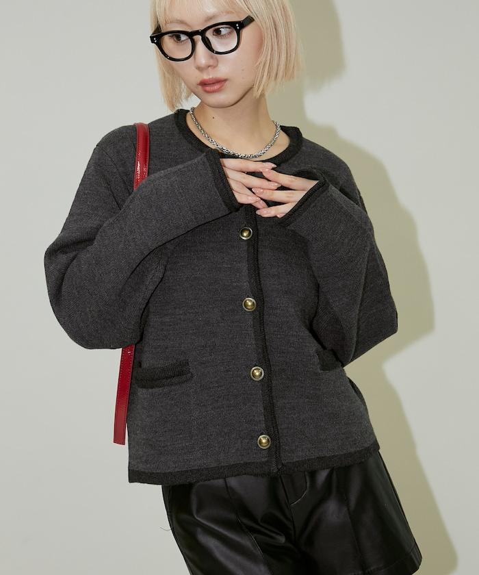 無領針織開衫,既有夾克的整潔,又有開衫的輕鬆。