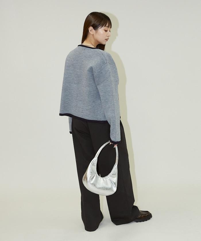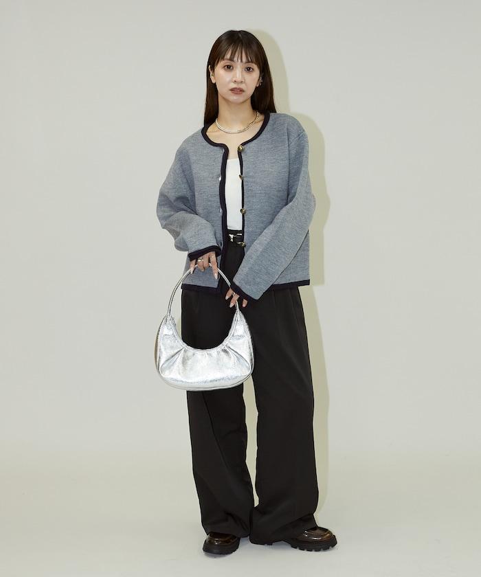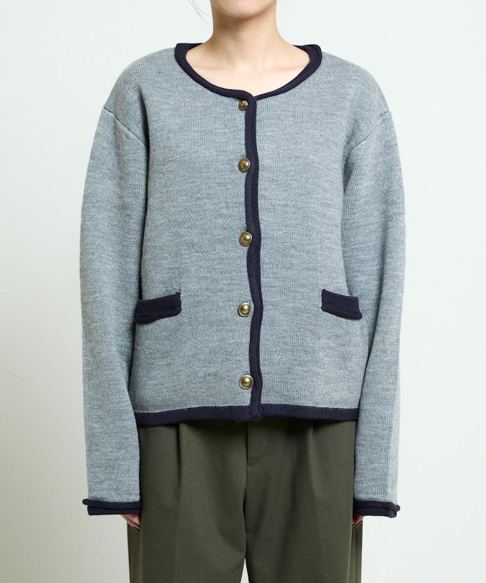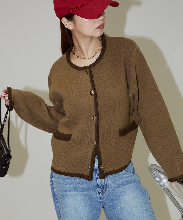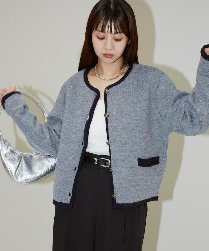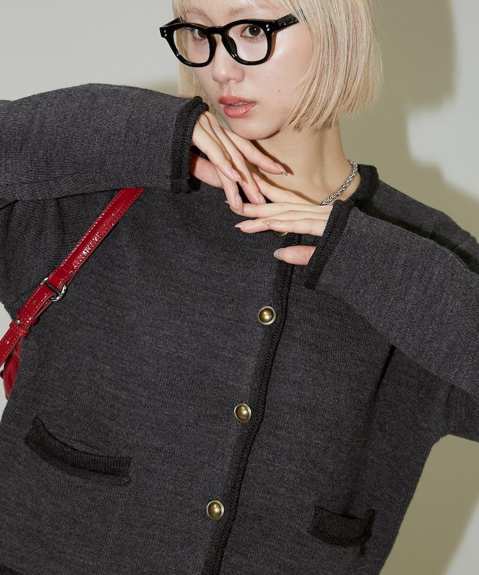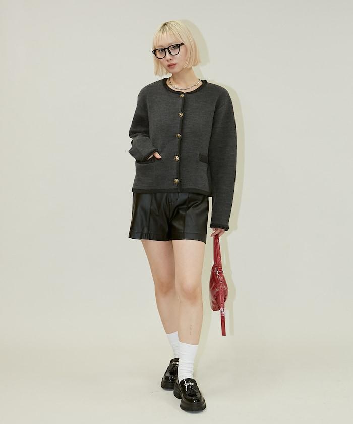 無領針織開衫,既有夾克的整潔,又有開衫的輕鬆。