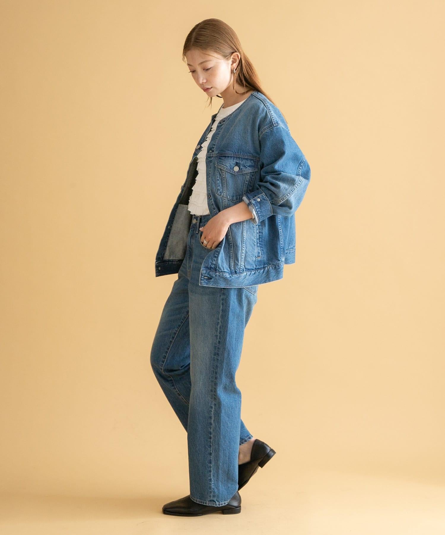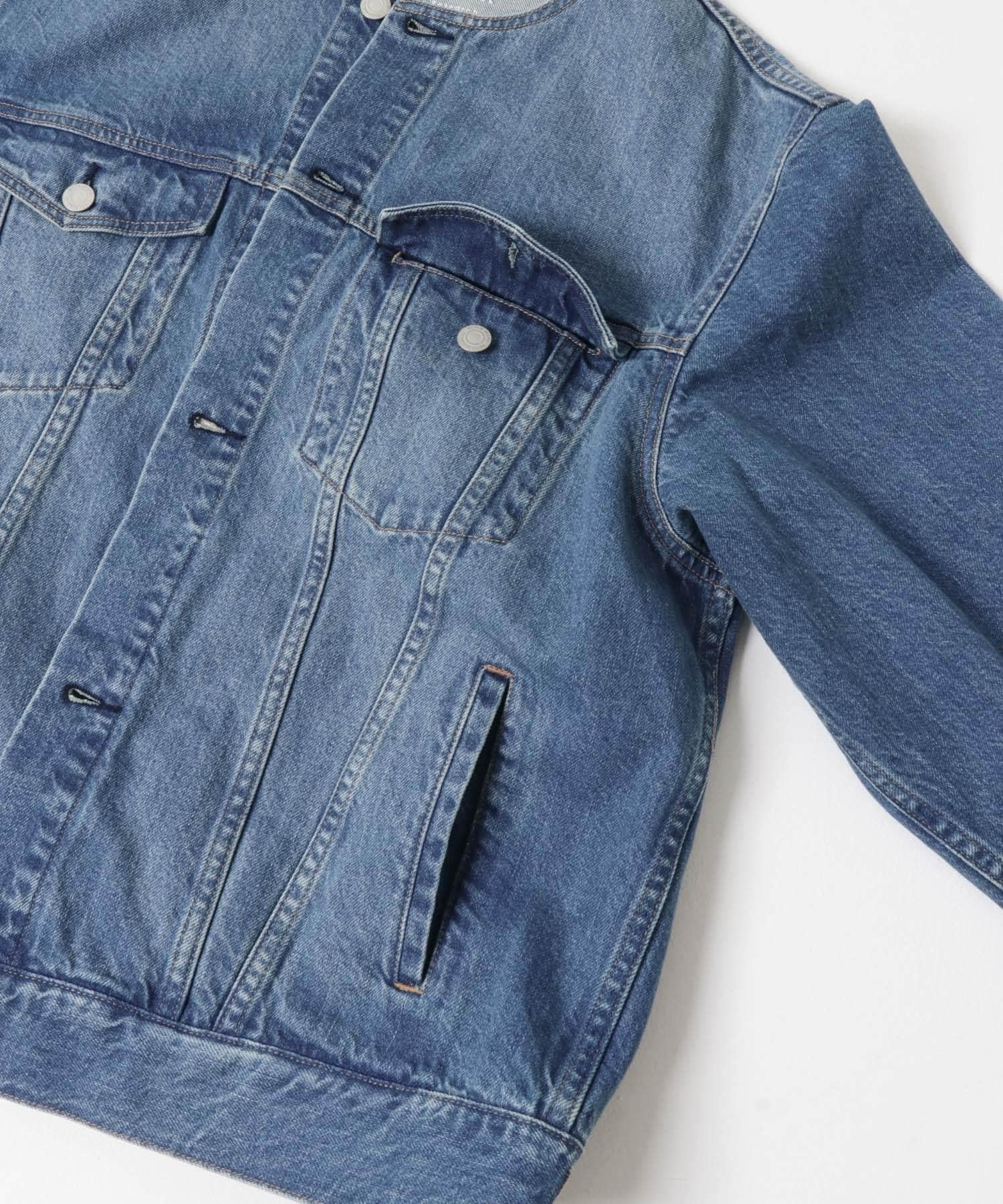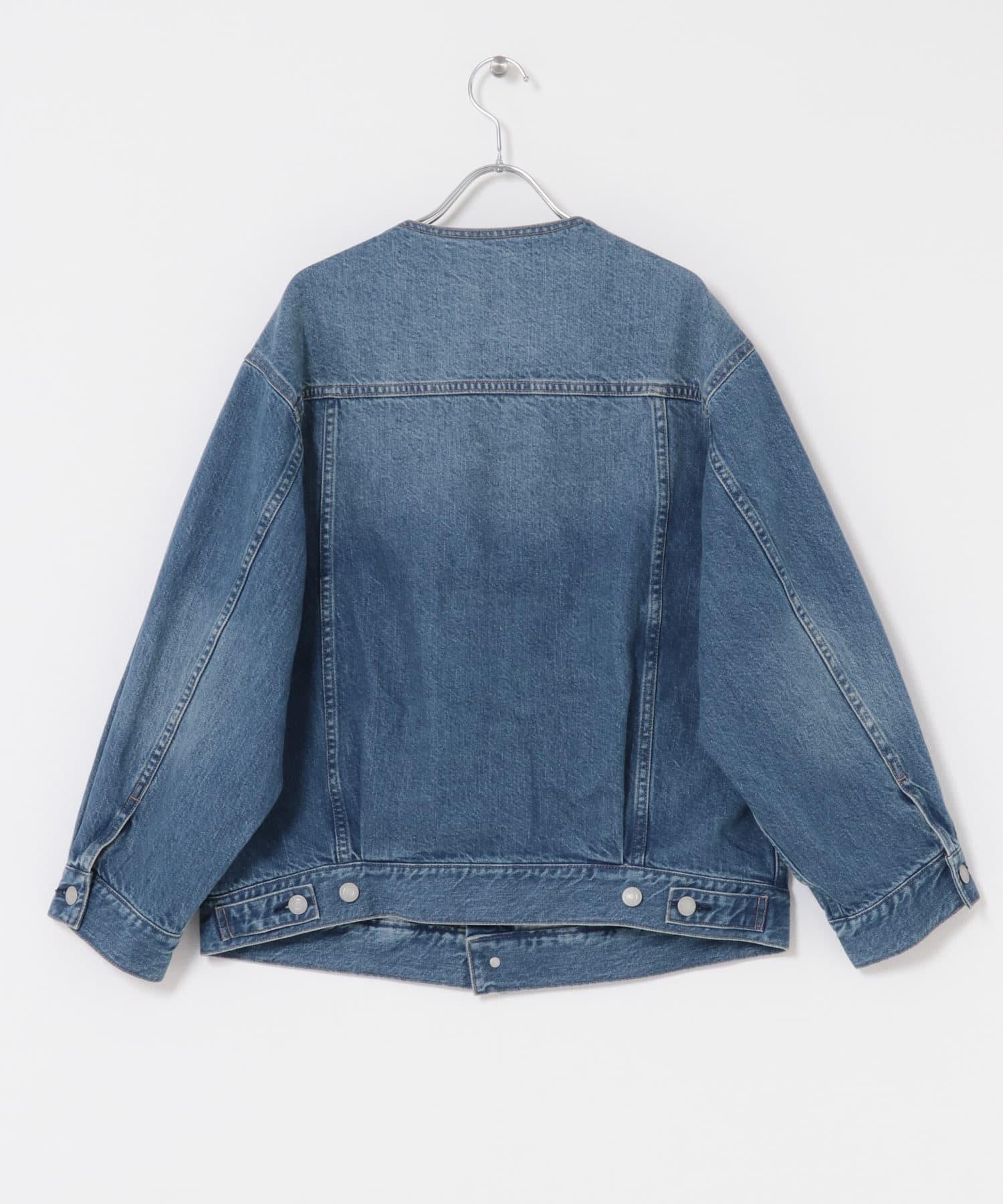 無領寬鬆牛仔夾克