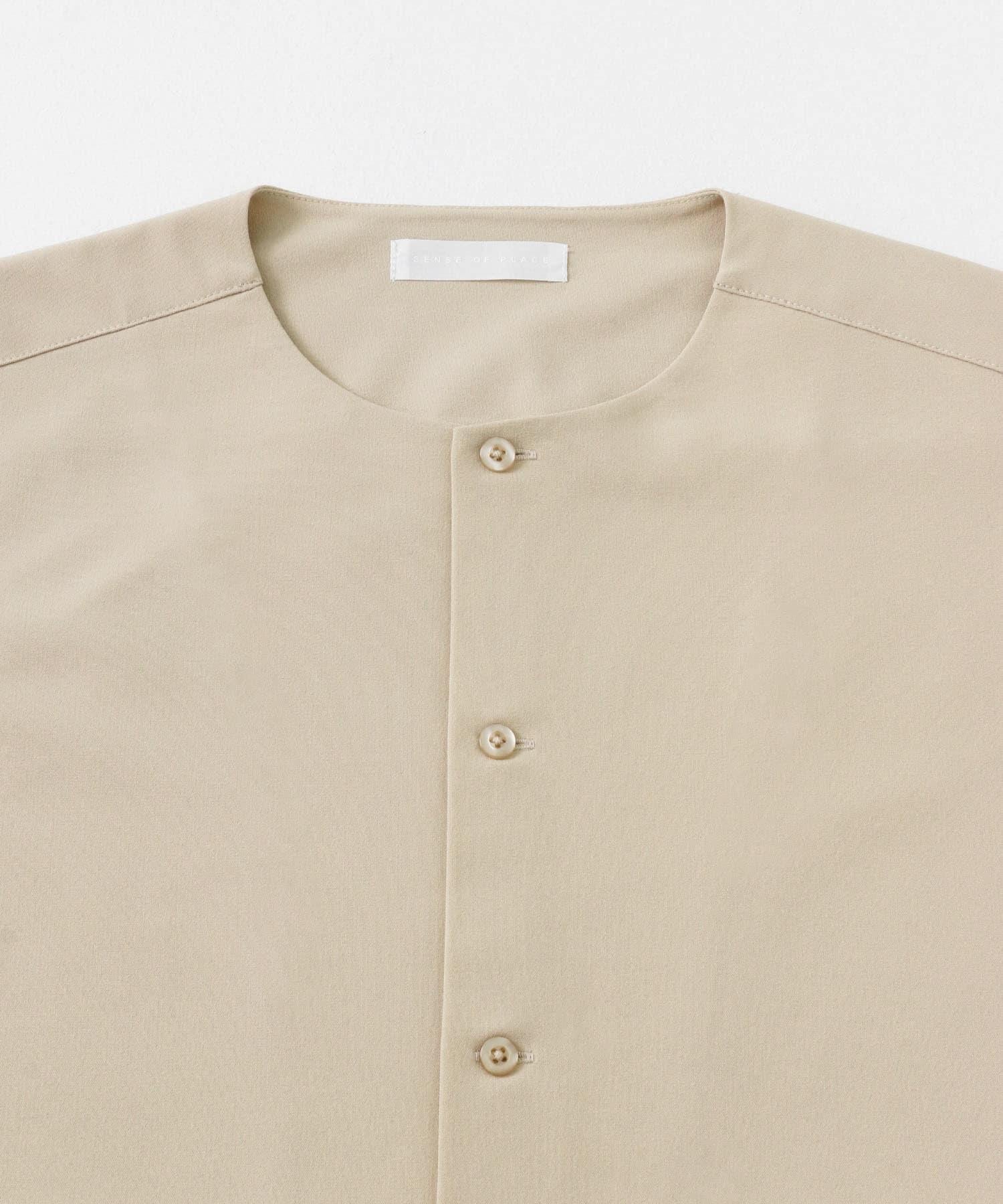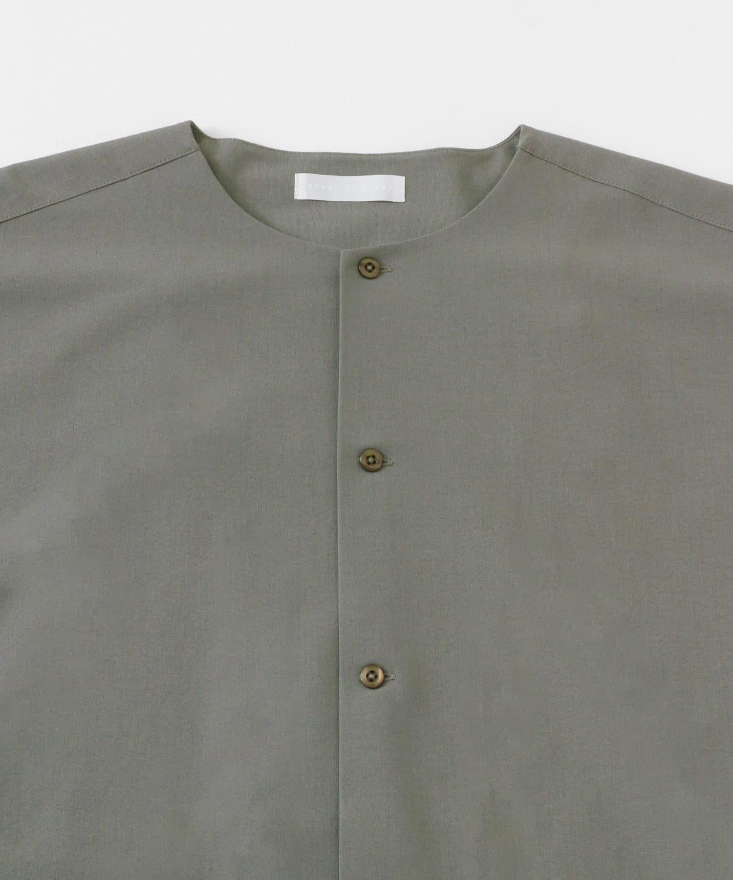 寬鬆的廓形和頸部的細節設計,使這款襯衫成為一款非常適合休閒穿著的無領襯衫。可搭配運動褲、寬褲等時尚單品,也可搭配牛仔褲和長褲等標準單品。