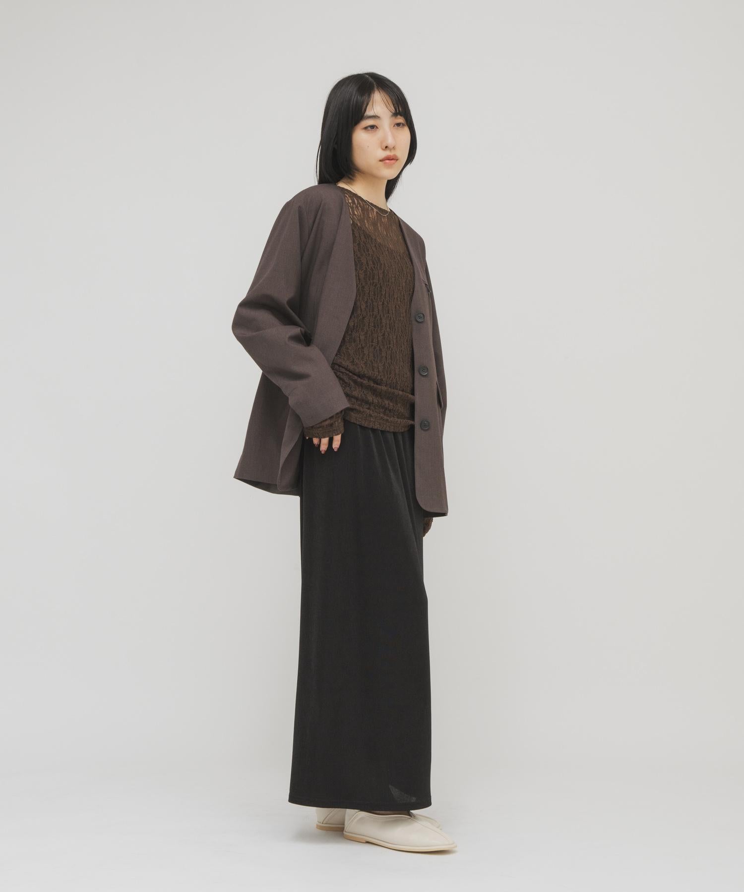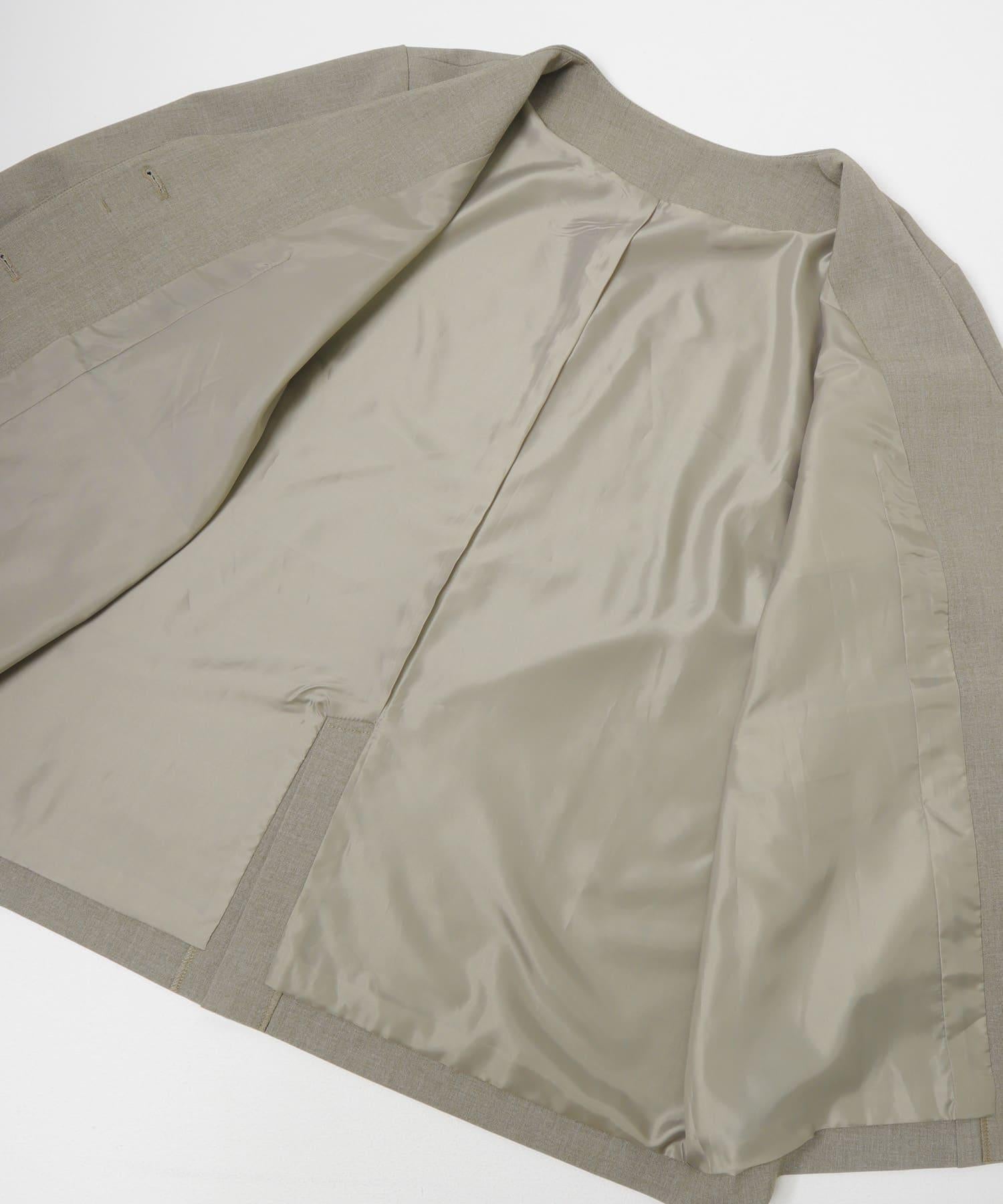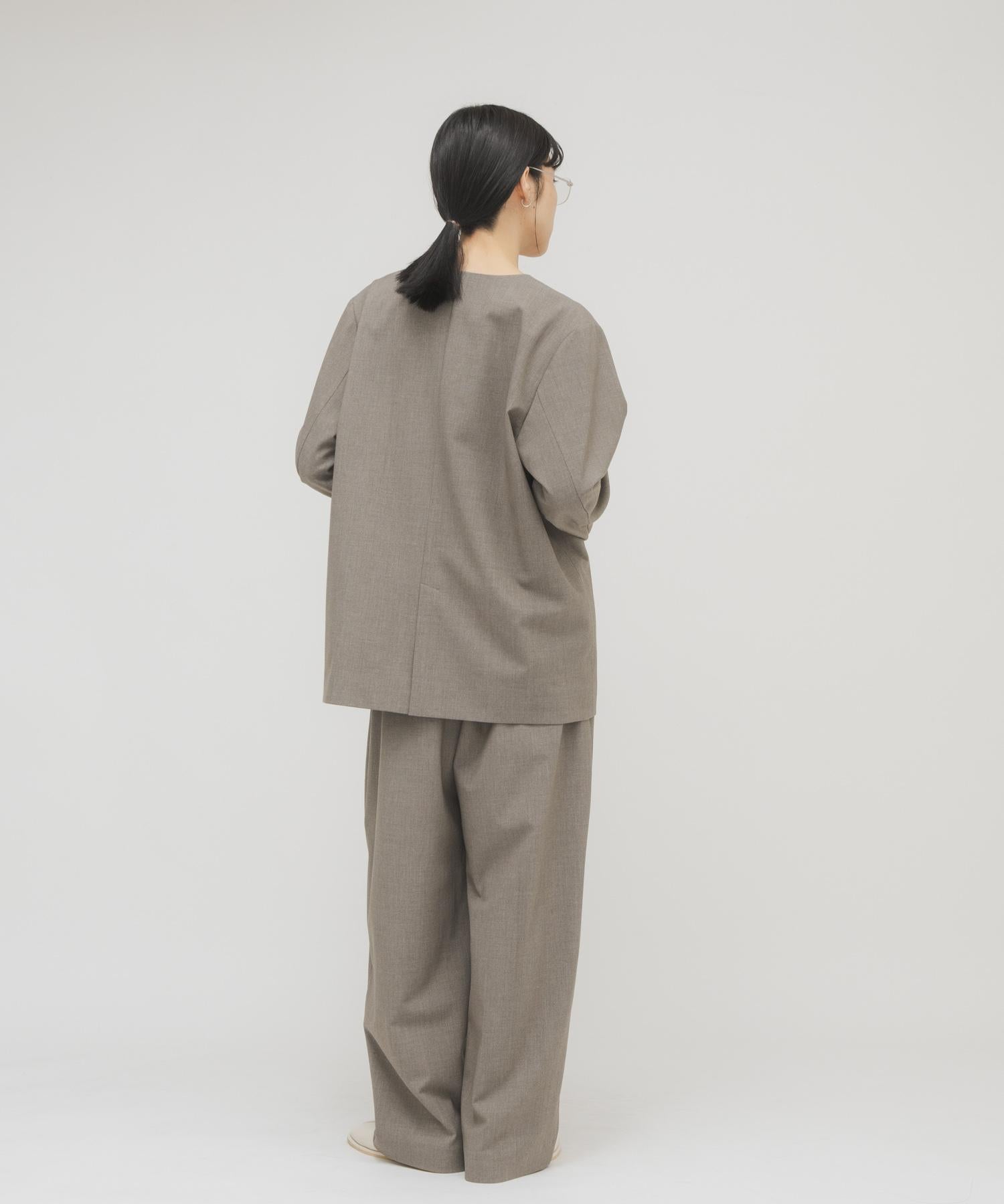 這是一款無領夾克,以細膩的木質花紋為重點,將整潔感與端莊感融為一體。這款夾克看似簡單,但在細節上卻做了精心設計,例如翼形設計、前胸口袋和V字領口,使頸部看起來更加整潔。可與同材質的腰帶 SET 休閒褲(KB26130-2045030)搭配作為套裝穿著。