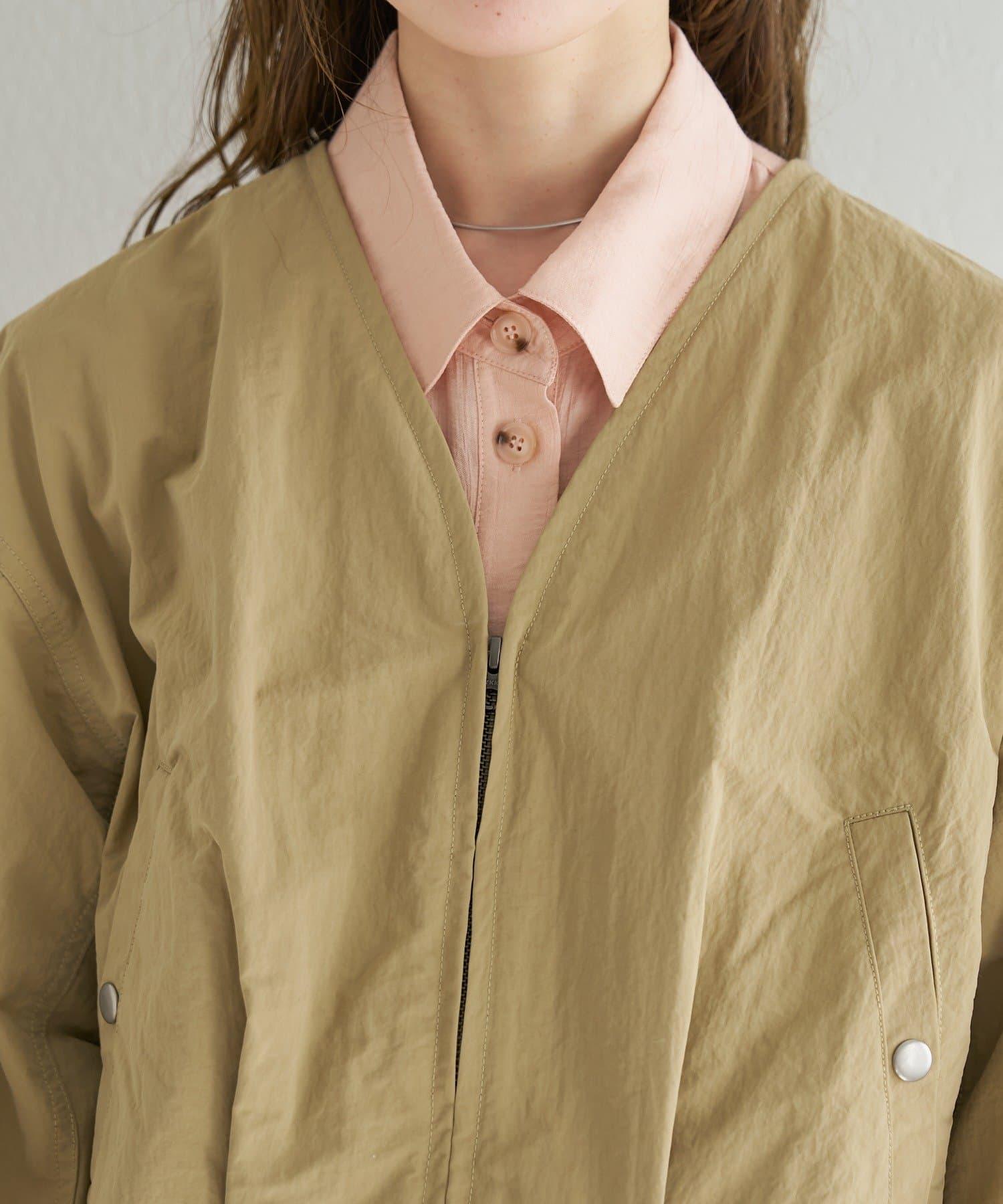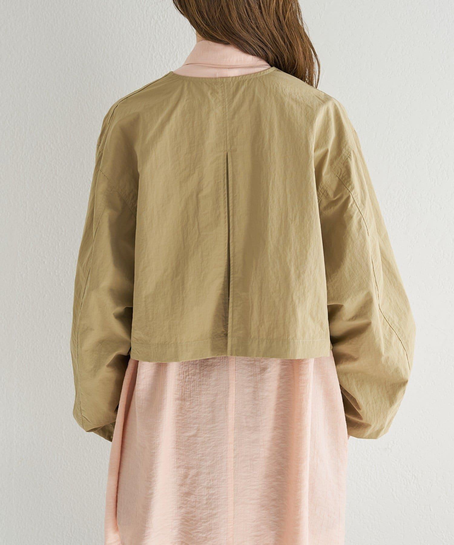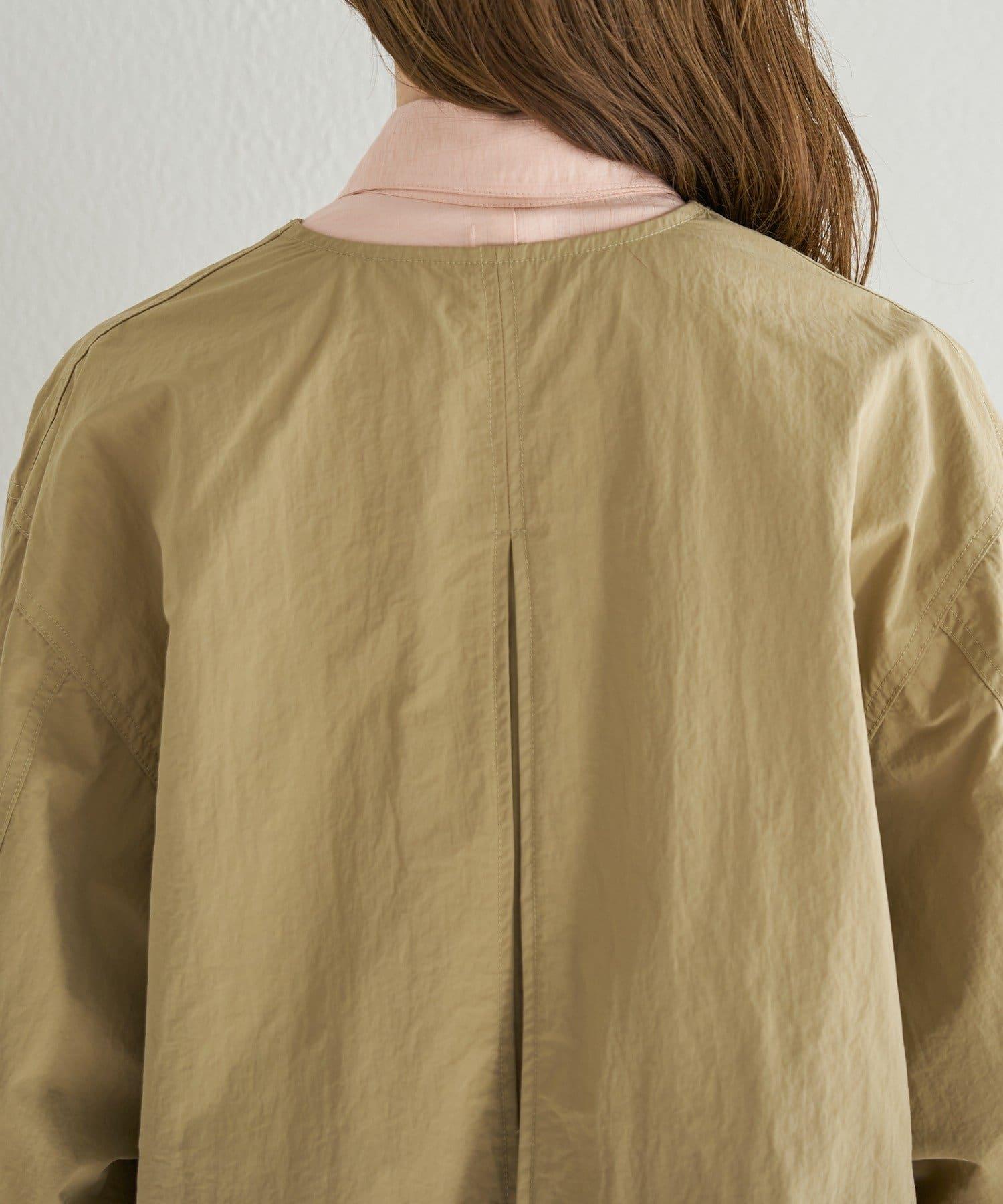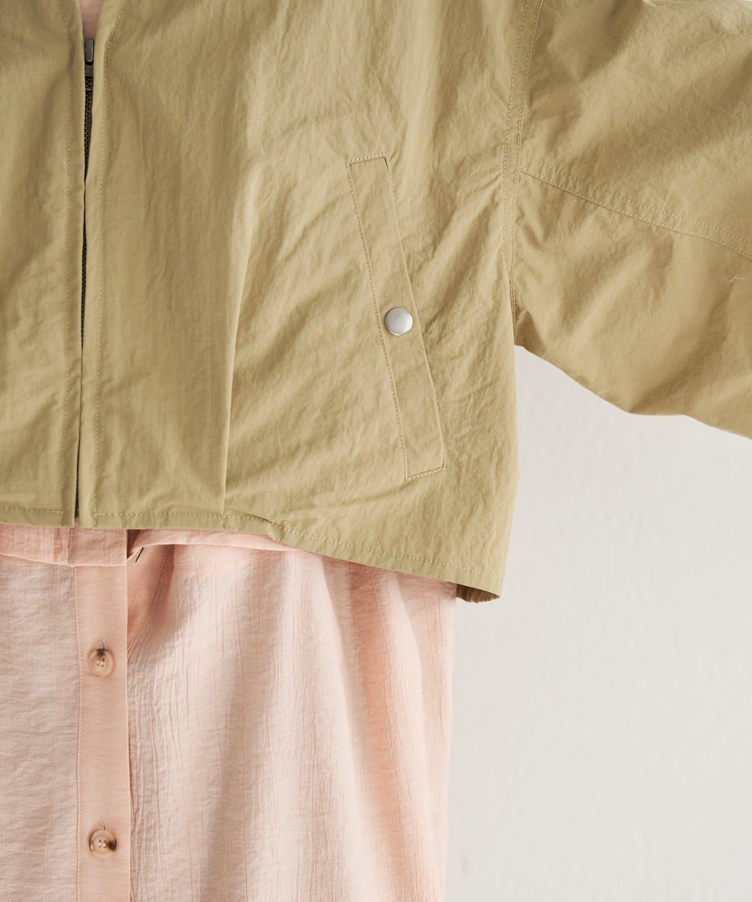 輕盈的尼龍長衫,無領設計,乾淨利落。