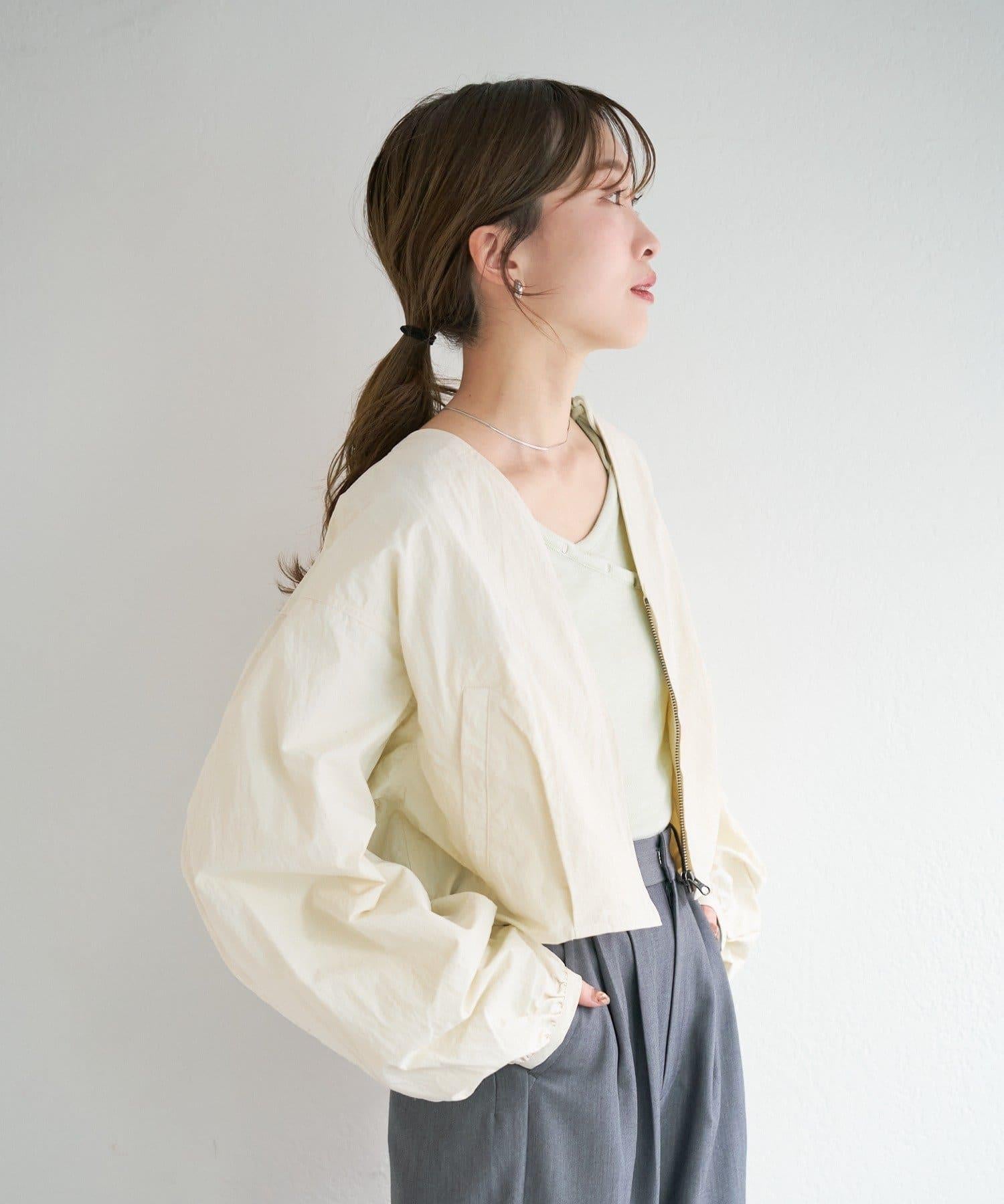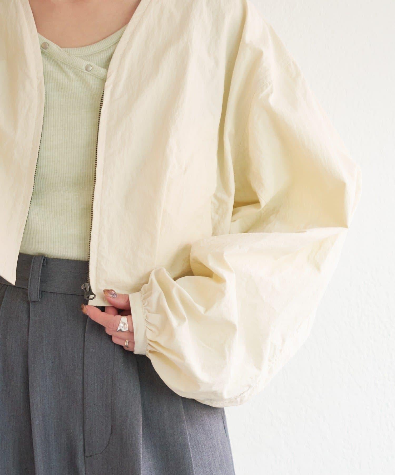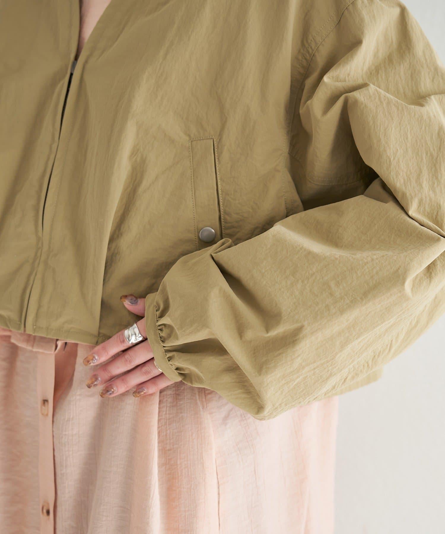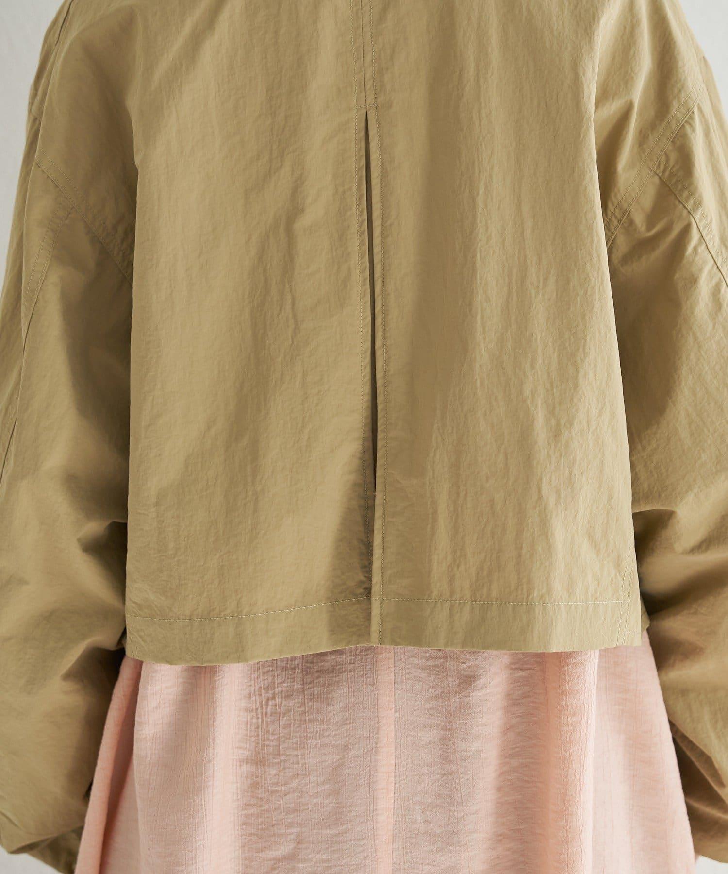 輕盈的尼龍長衫,無領設計,乾淨利落。