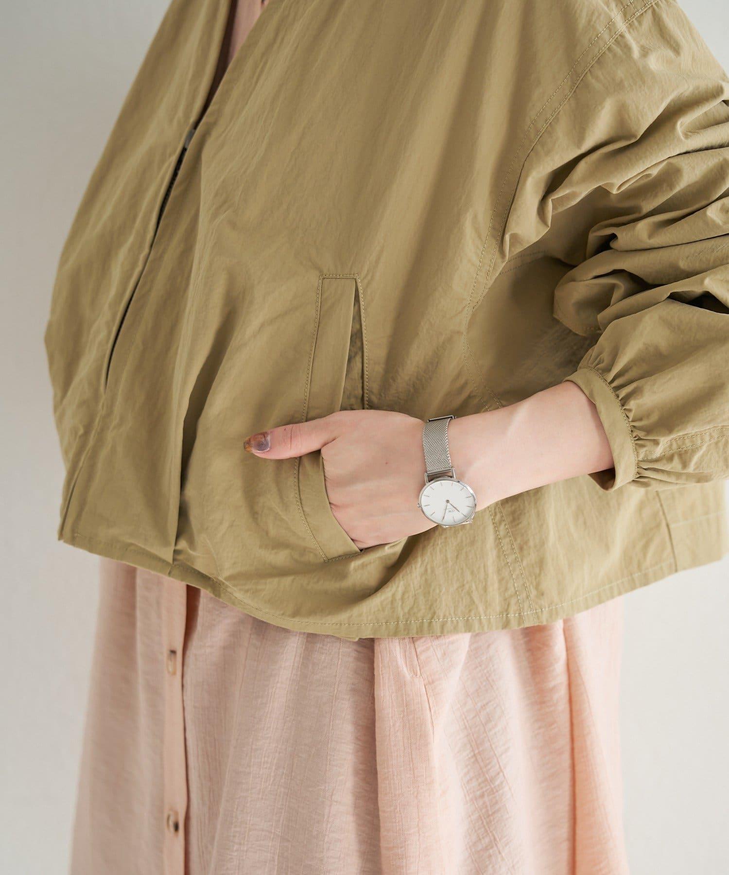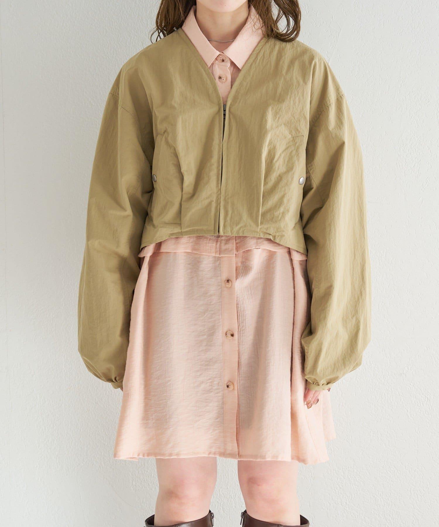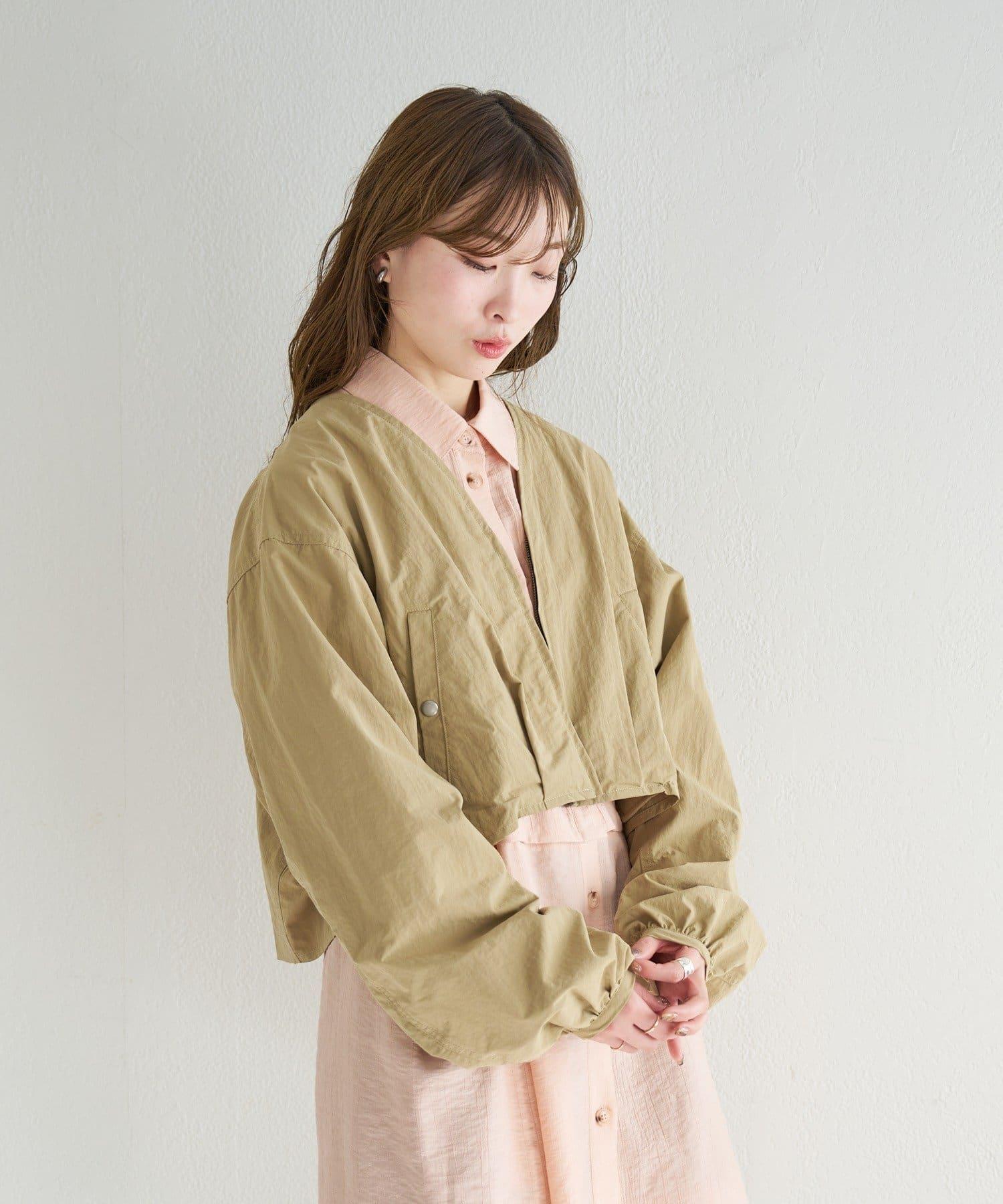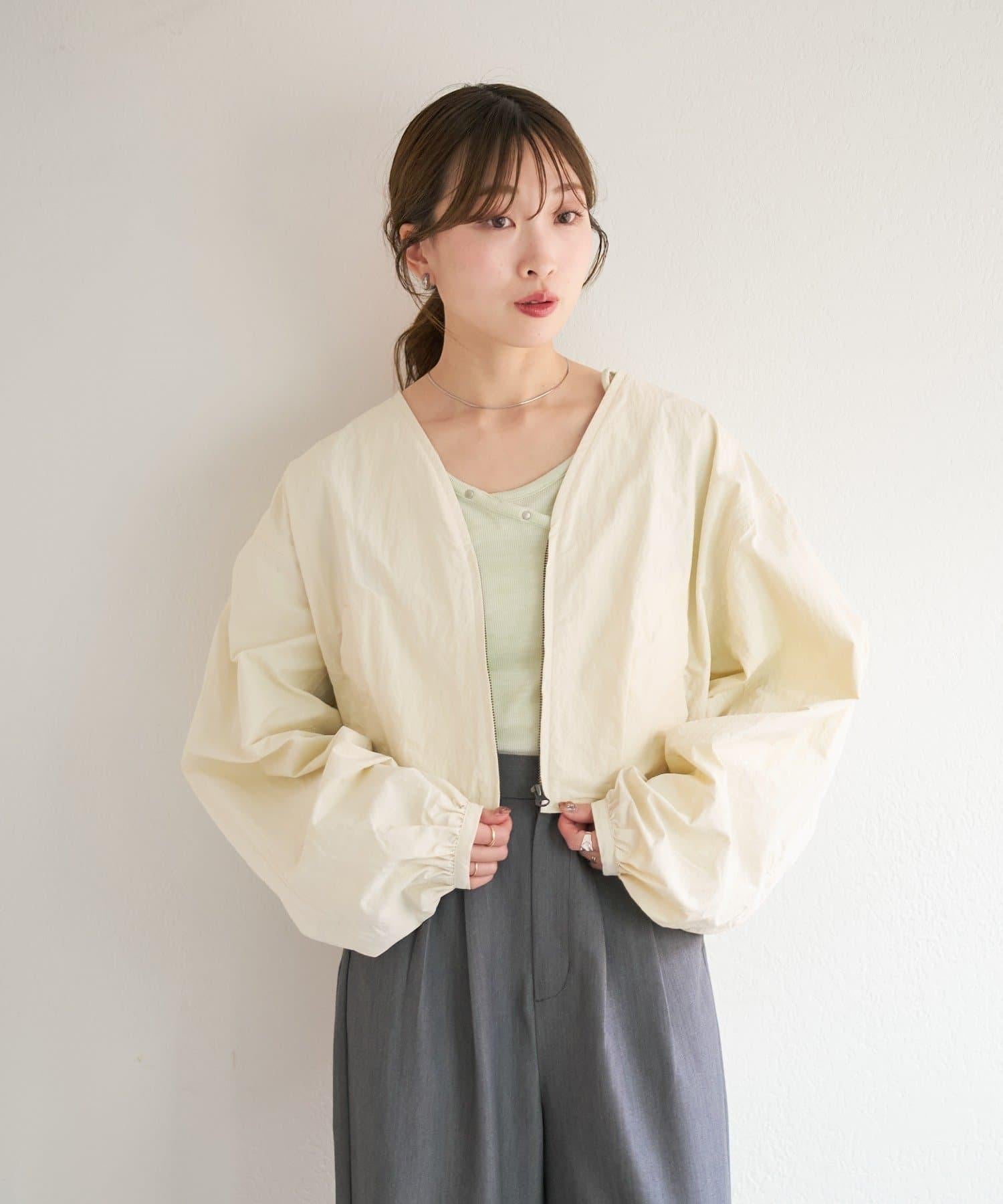 輕盈的尼龍長衫,無領設計,乾淨利落。