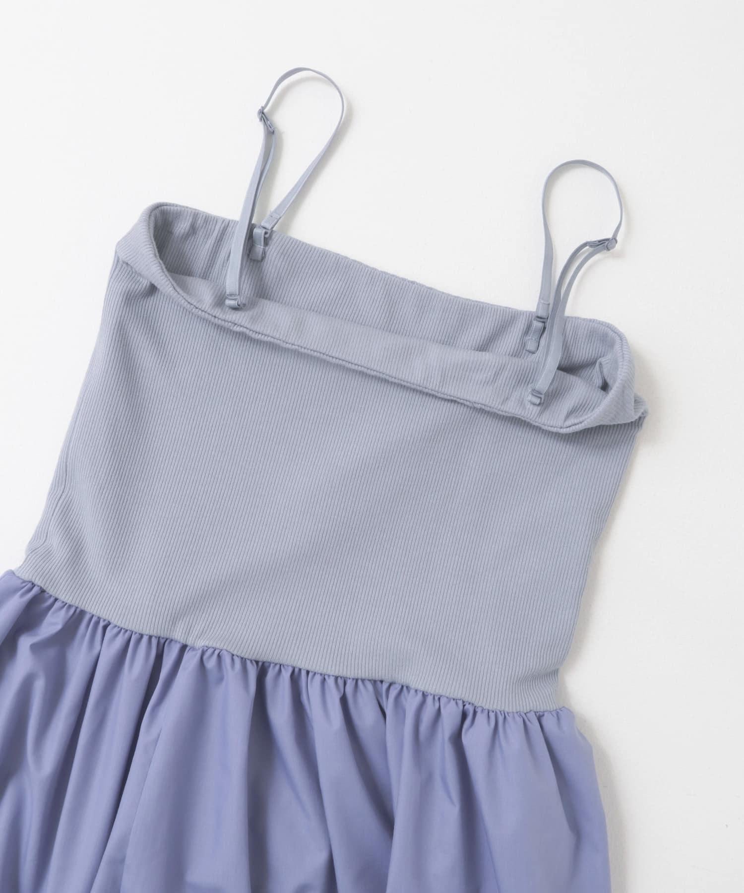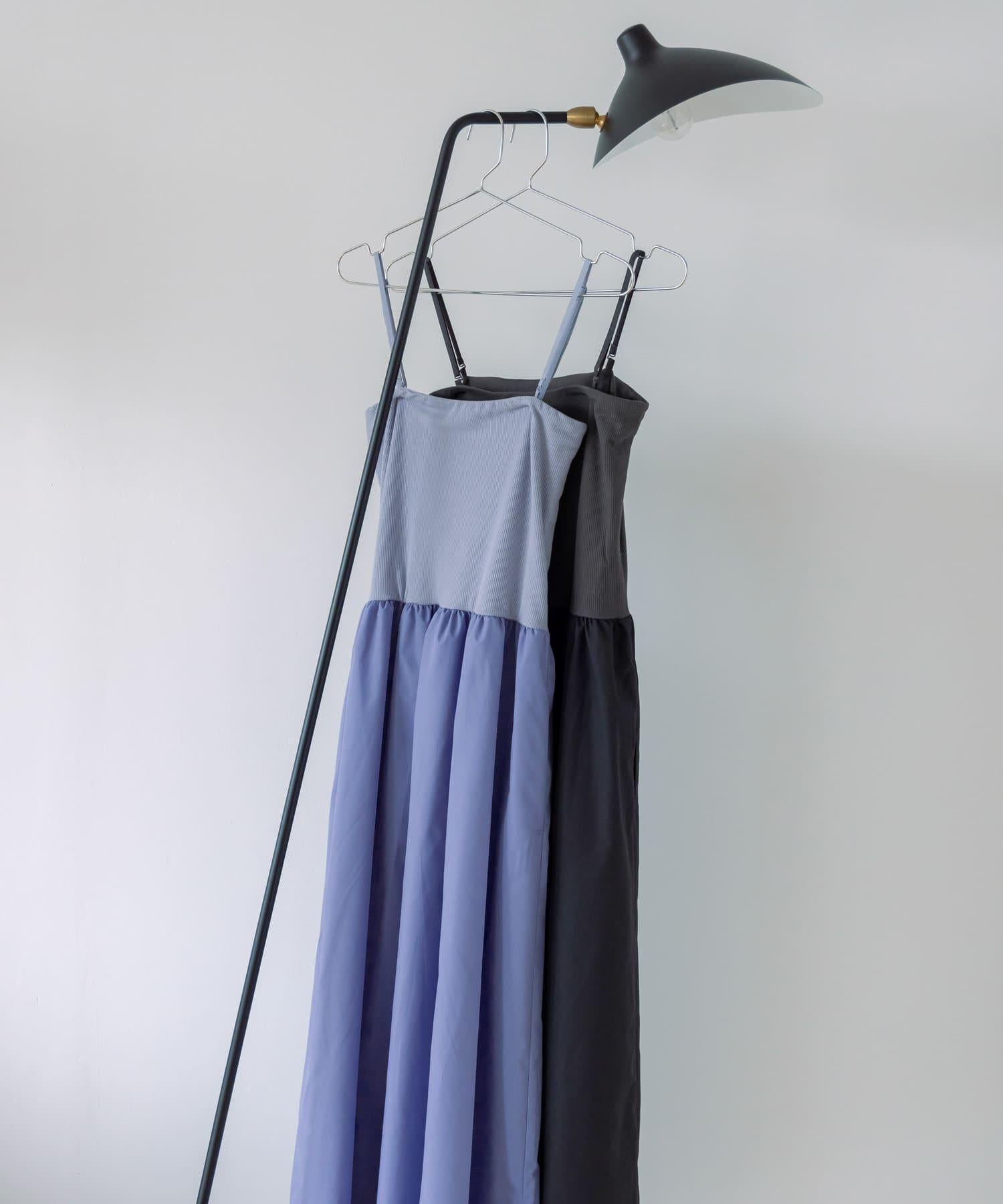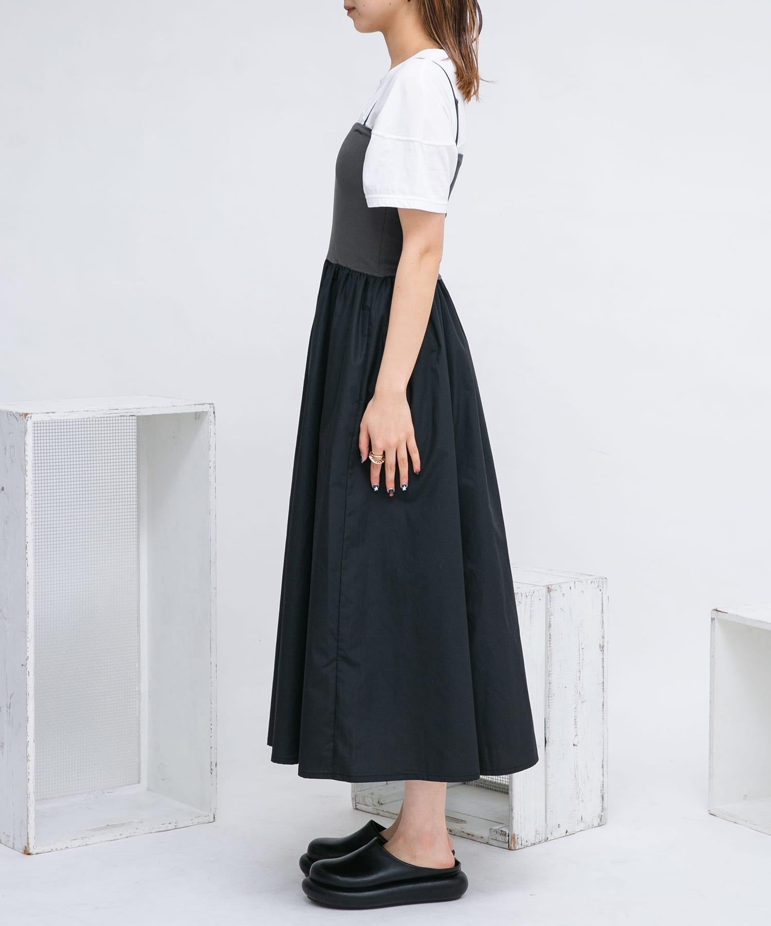 由不同材質製成的連身裙,結合了具有合身感的羅紋材質和抗皺彈性材質。肩帶可以拆卸,因此您既可以將其作為裸露連體褲穿,也可以將其作為吊帶連體褲穿。兩種不同高度的尺寸也是一個吸引人的特點。您可以根據搭配的內搭和單品改變連衣裙的氛圍。