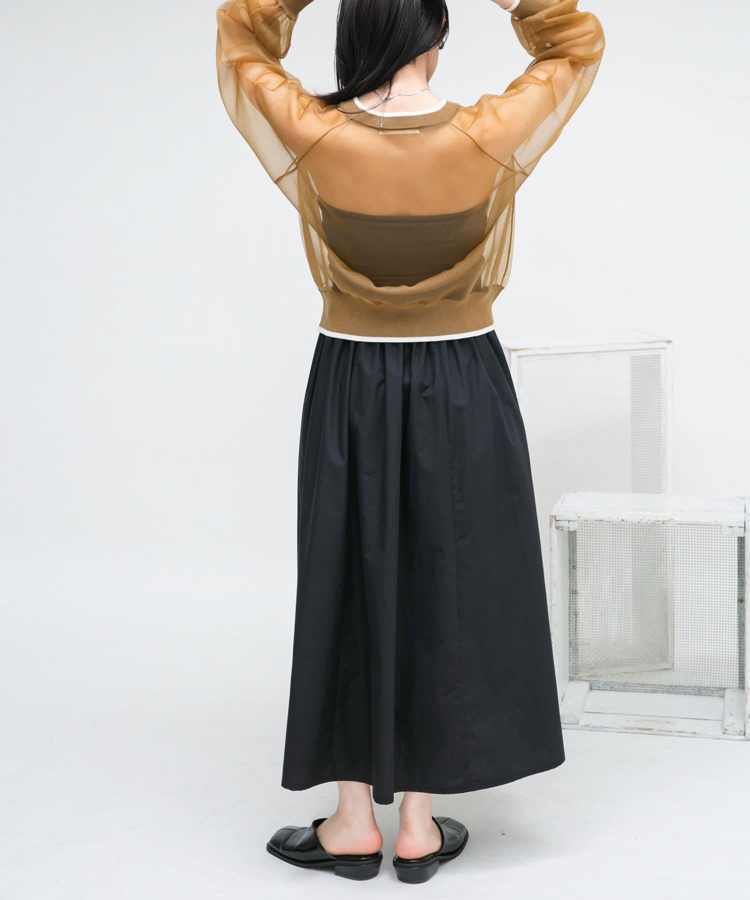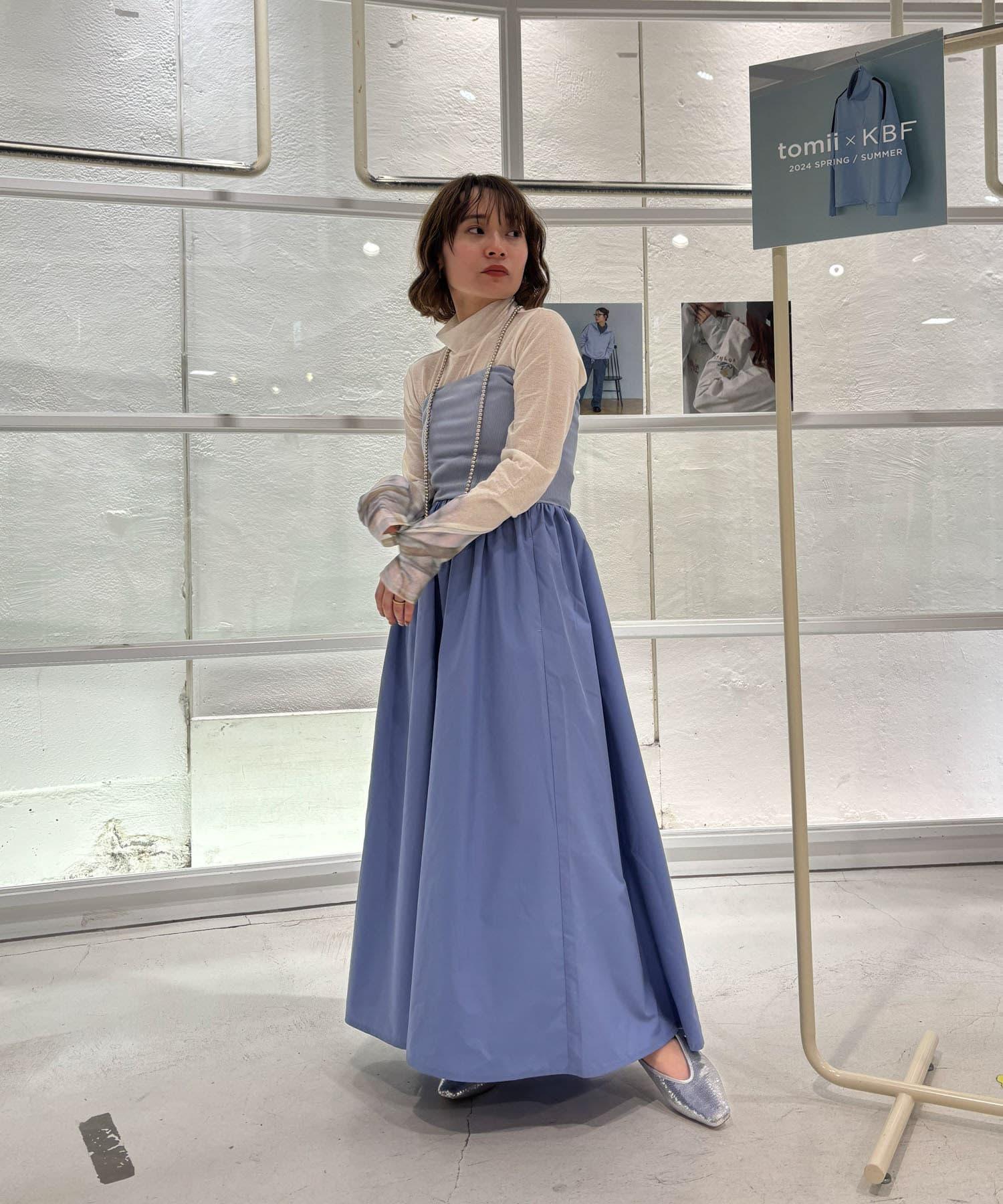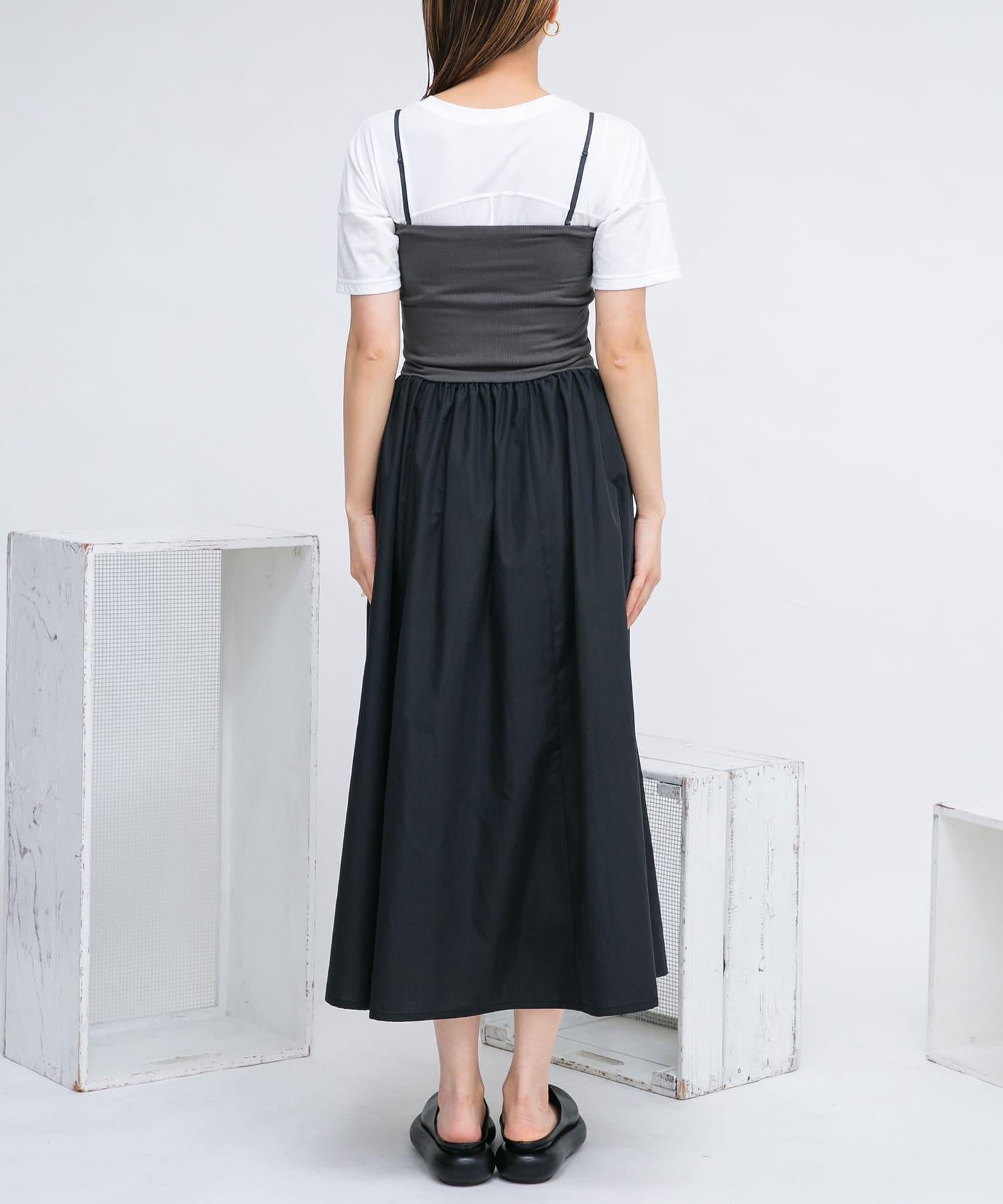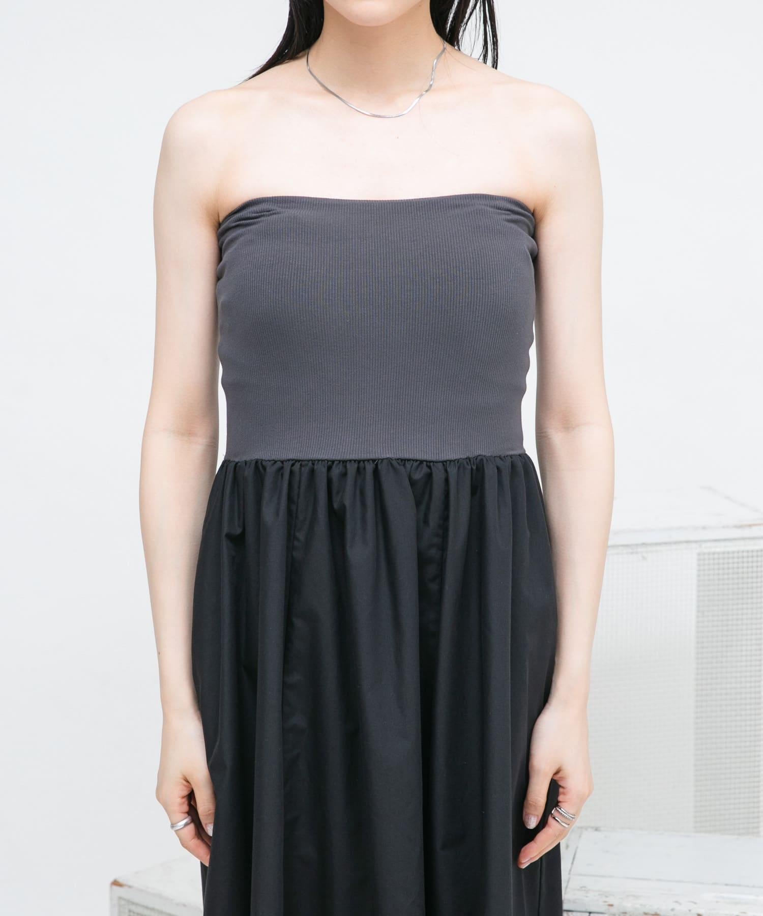 由不同材質製成的連身裙,結合了具有合身感的羅紋材質和抗皺彈性材質。肩帶可以拆卸,因此您既可以將其作為裸露連體褲穿,也可以將其作為吊帶連體褲穿。兩種不同高度的尺寸也是一個吸引人的特點。您可以根據搭配的內搭和單品改變連衣裙的氛圍。