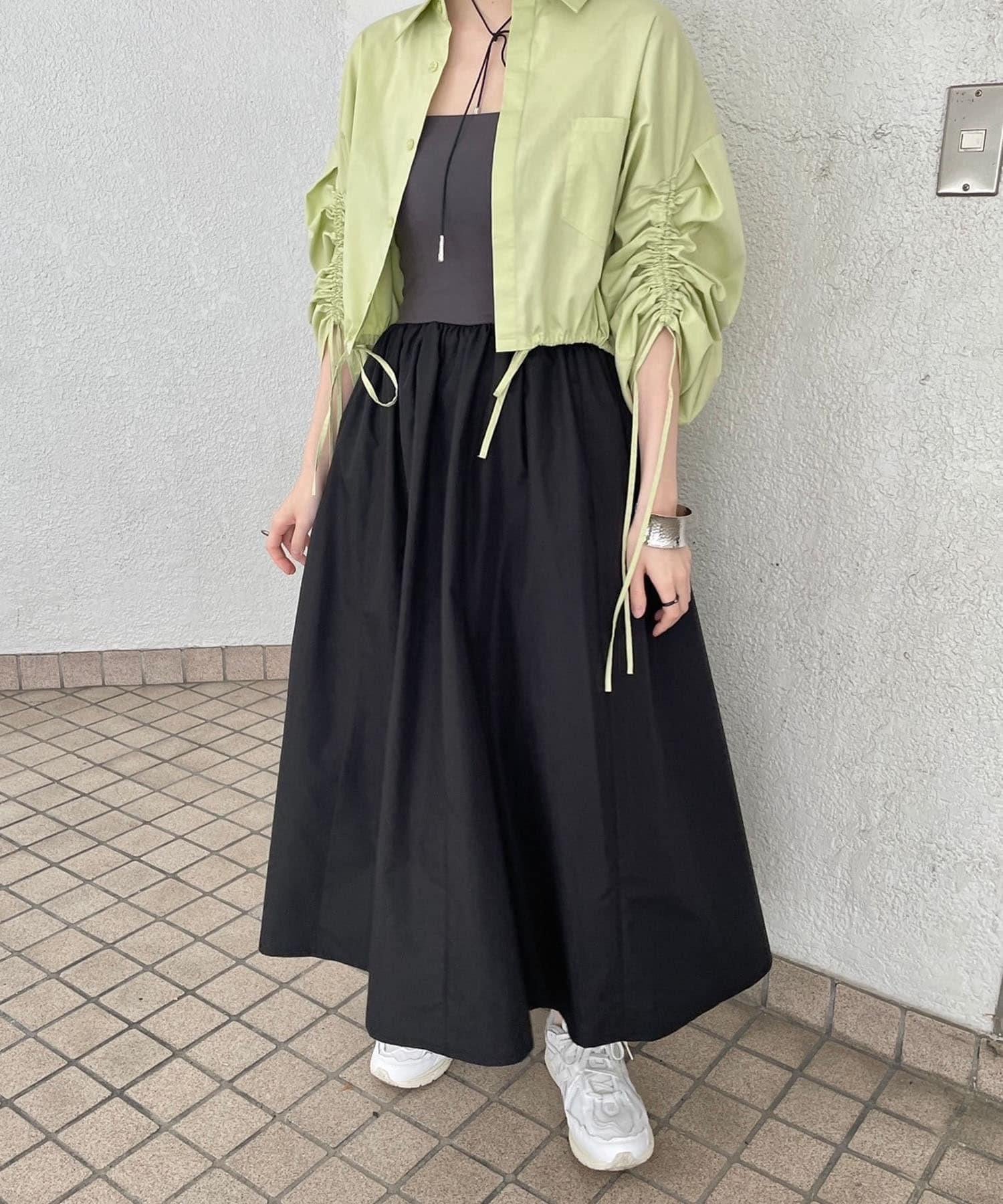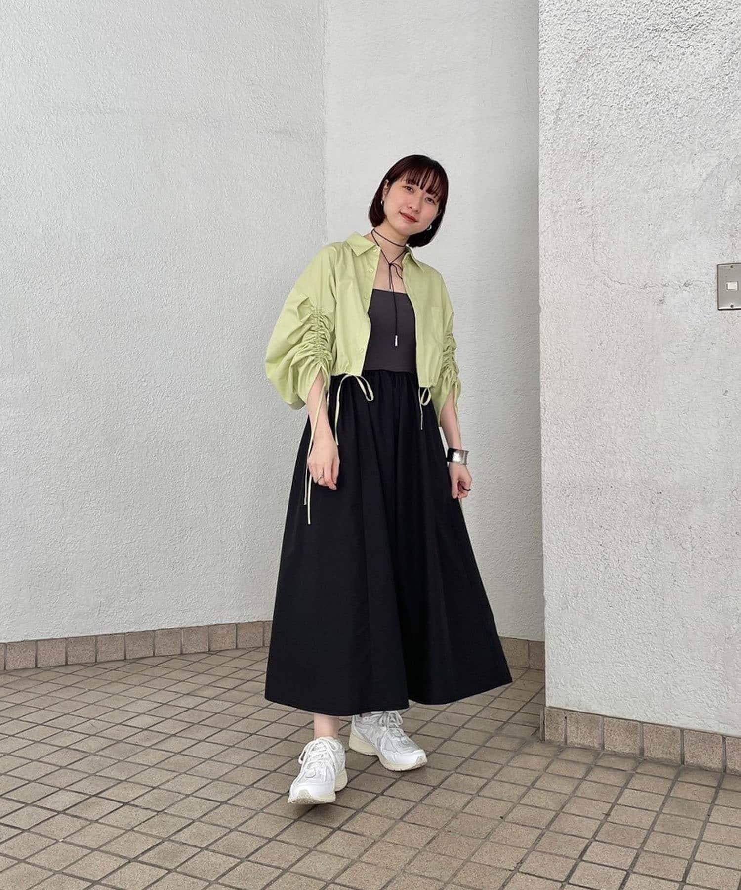 建議搭配一件薄上衣或長 T 恤作為內搭!也可以在裸露的吊帶裙外穿一件夾克或襯衫,打造時尚效果。
