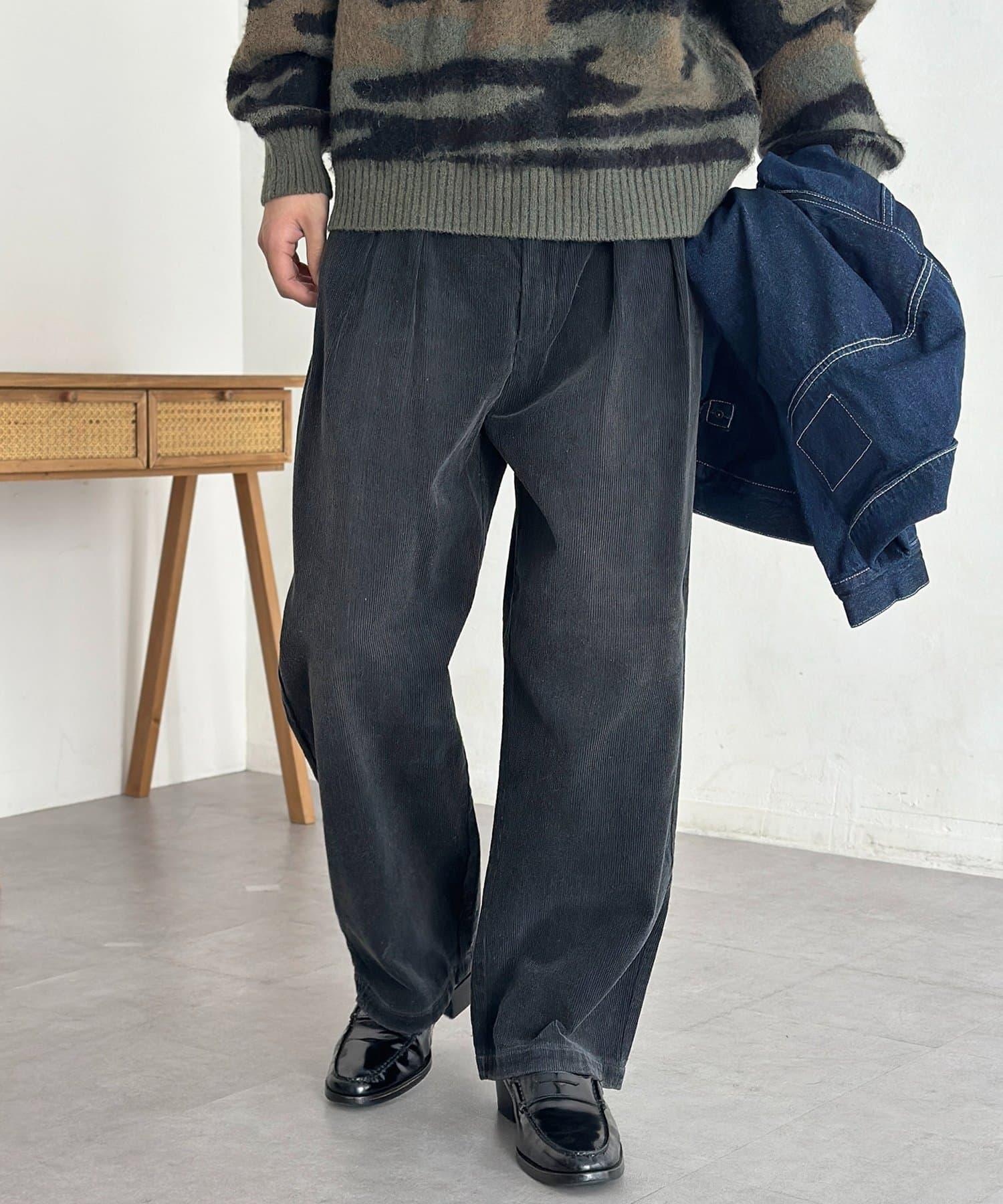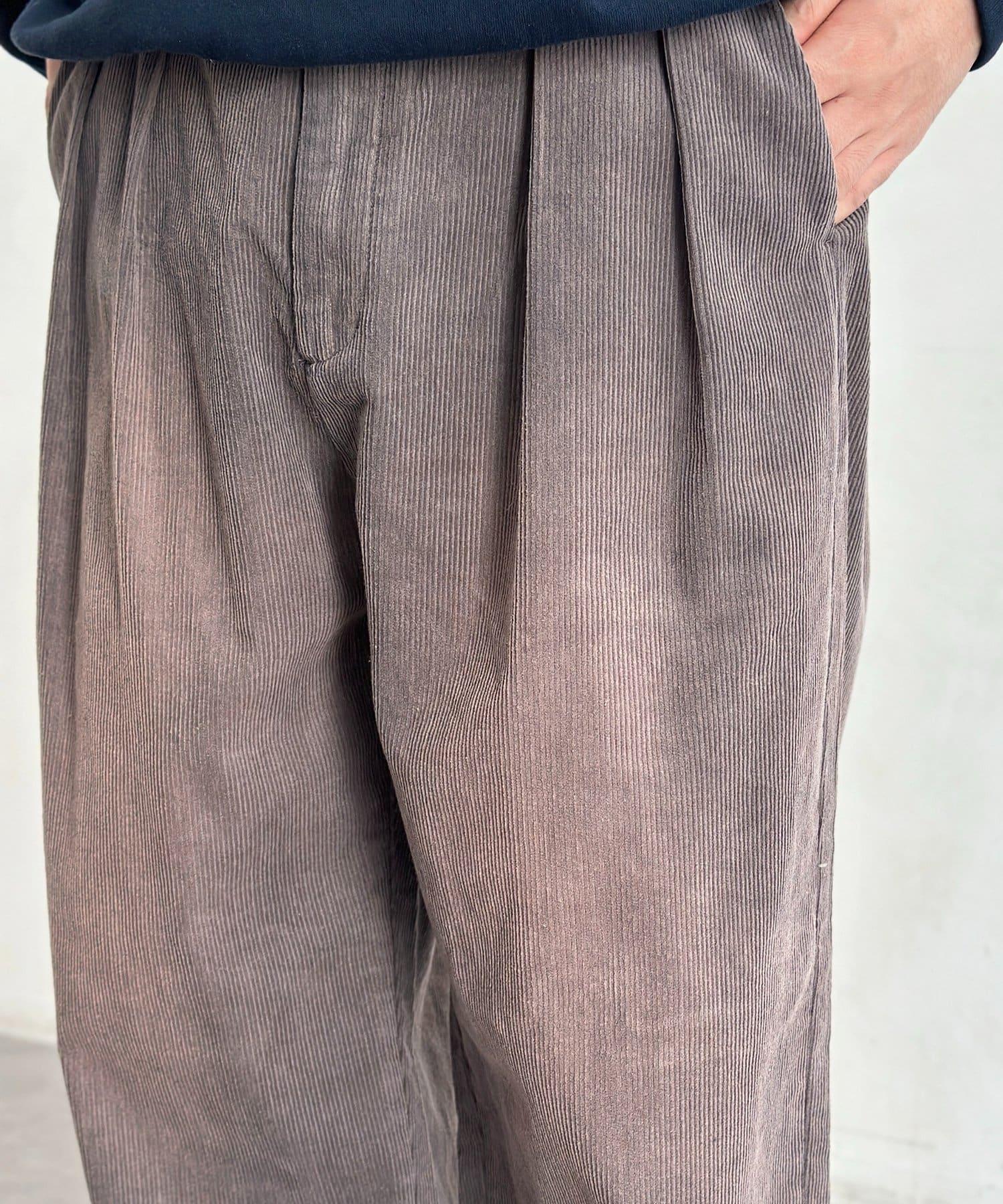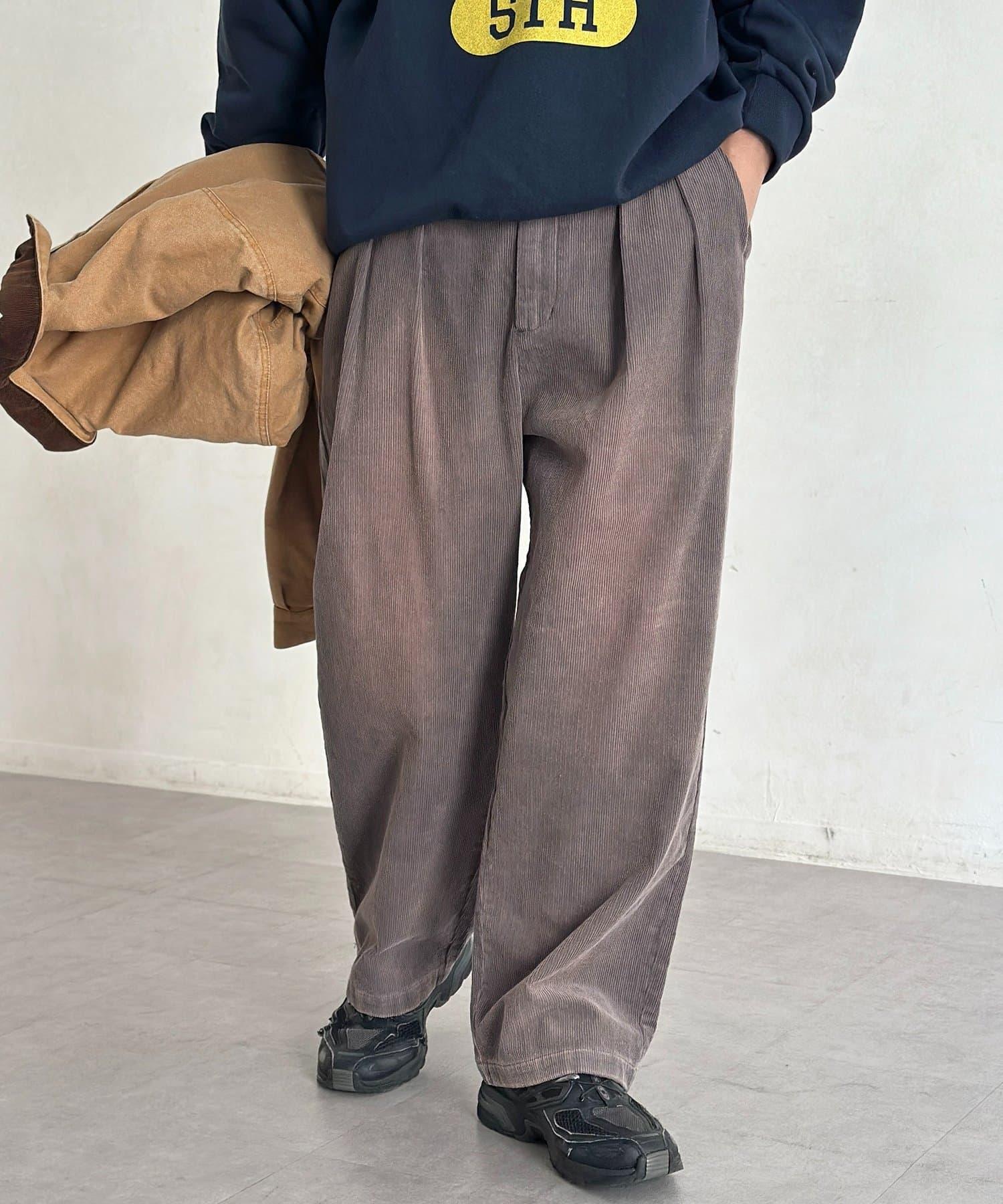 燈芯絨面料的簡易長褲,褪色後的豐富紋理讓人倍感舒適!