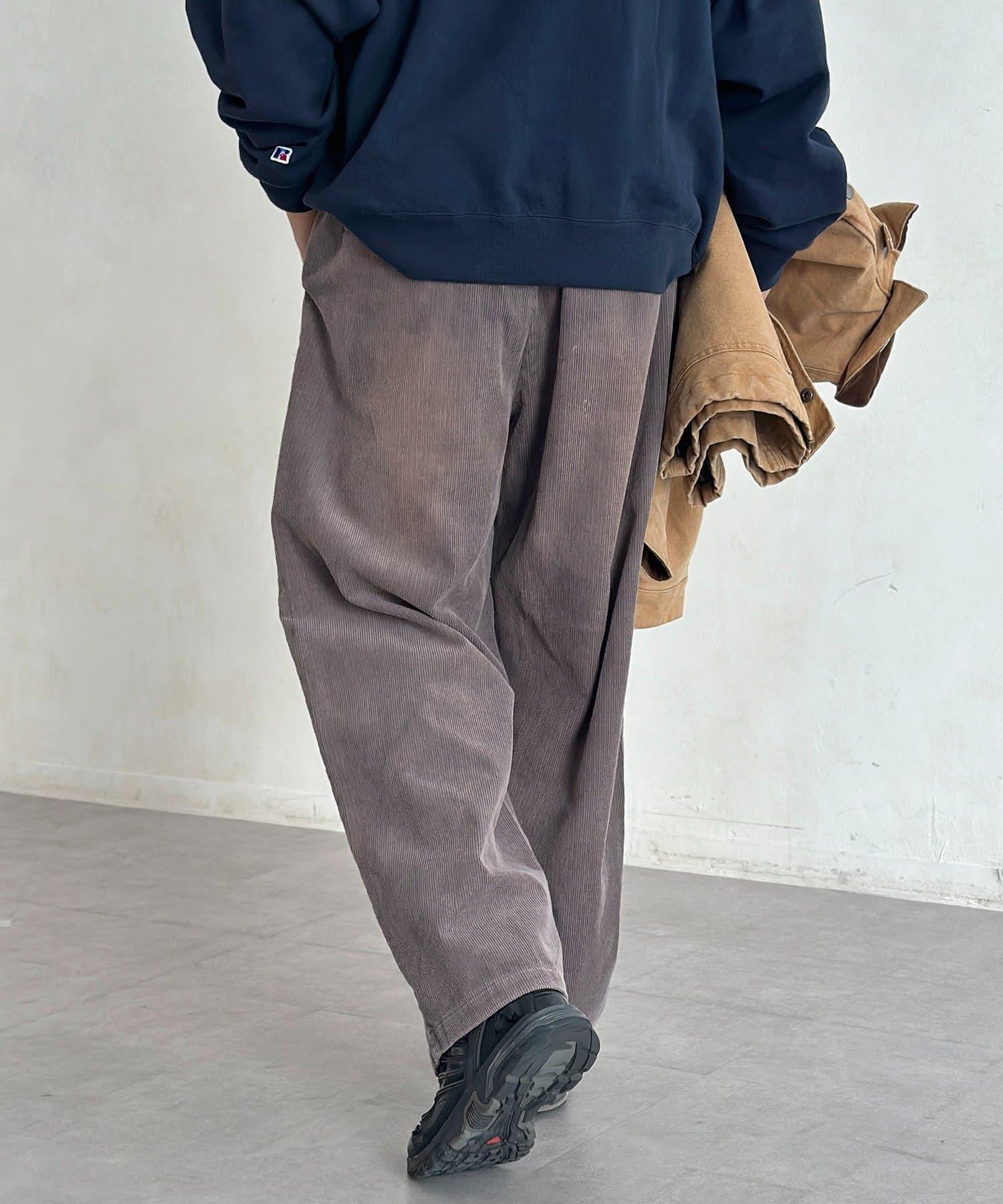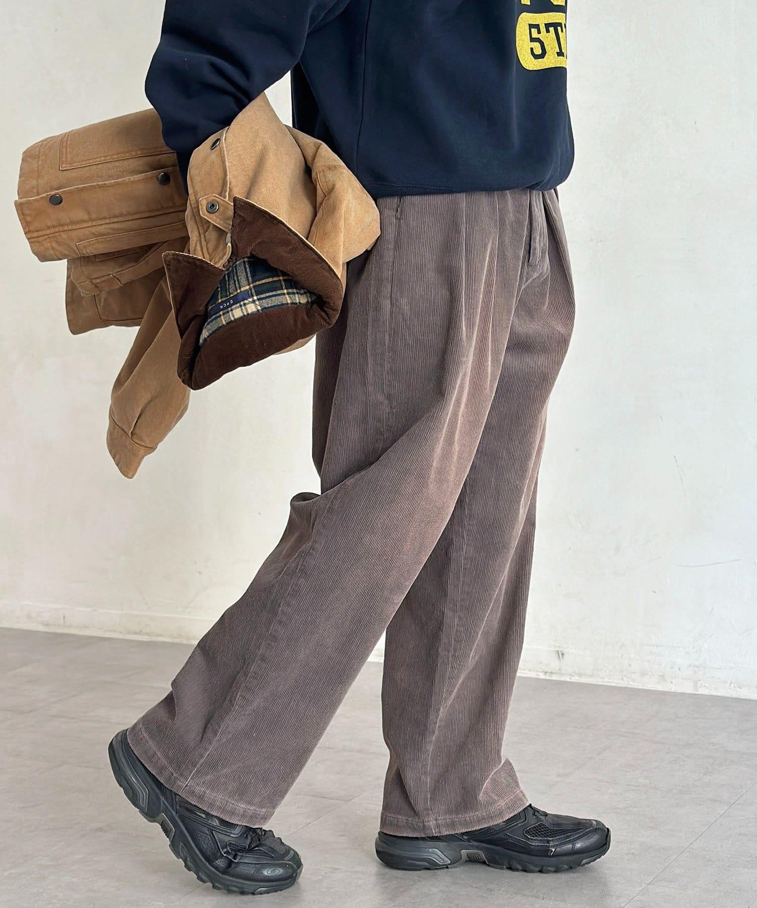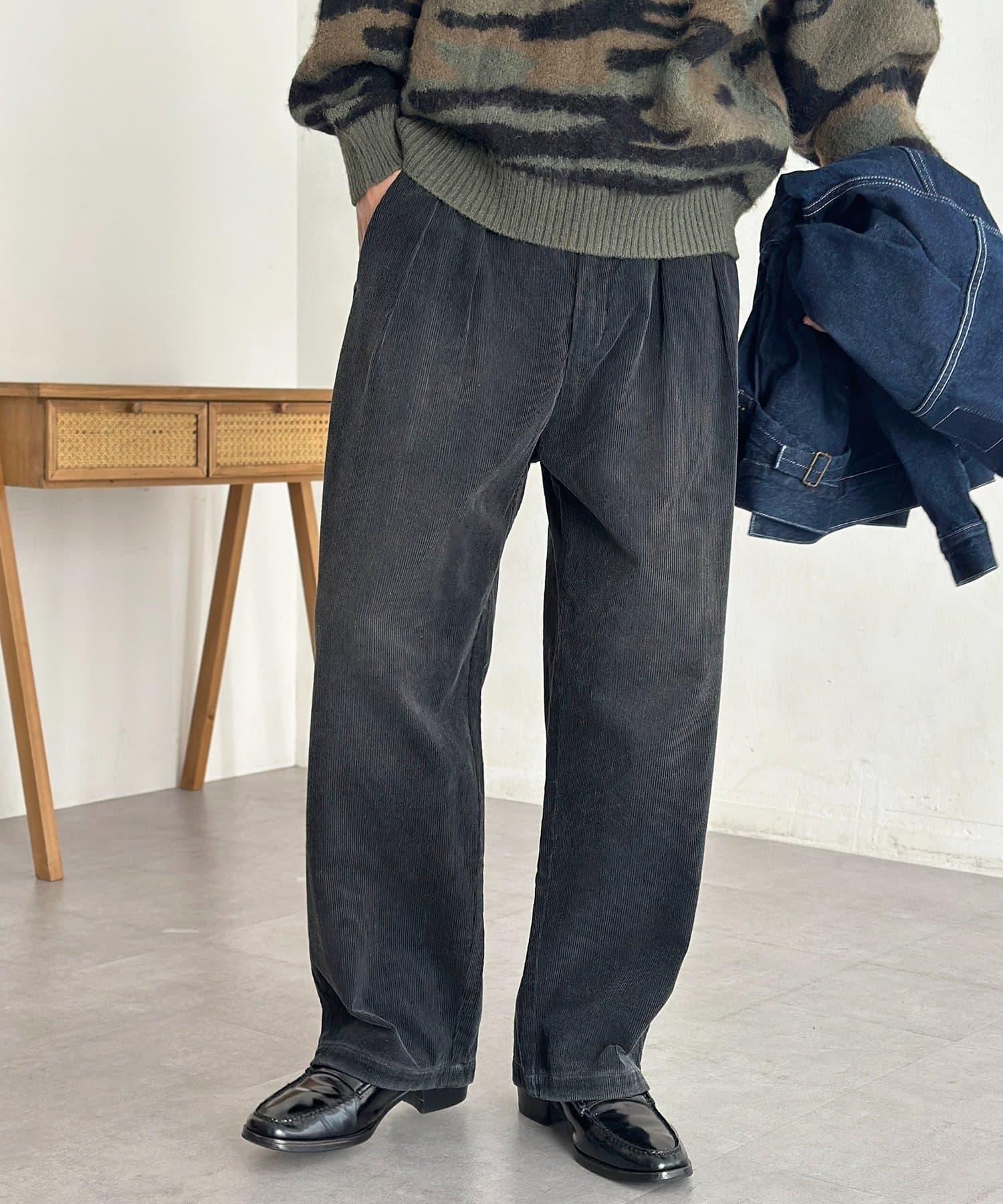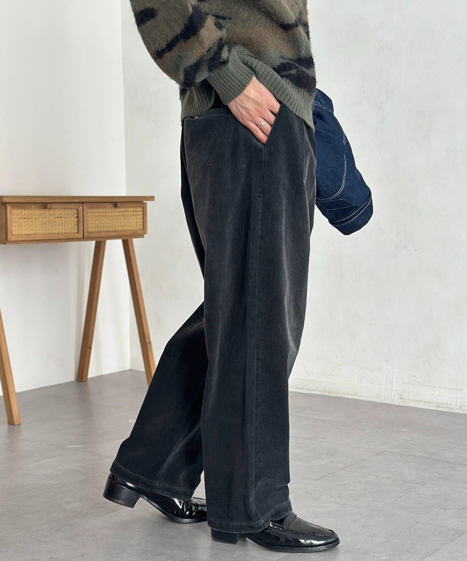 燈芯絨面料的簡易長褲,褪色後的豐富紋理讓人倍感舒適!