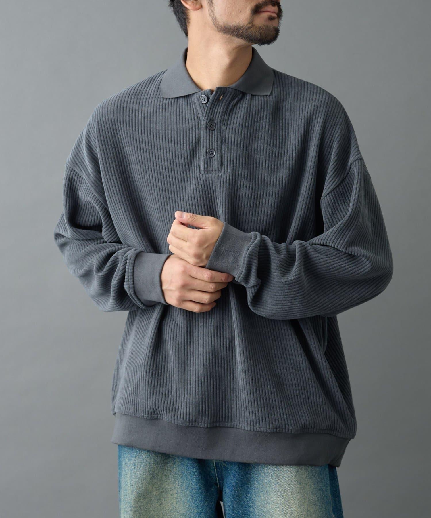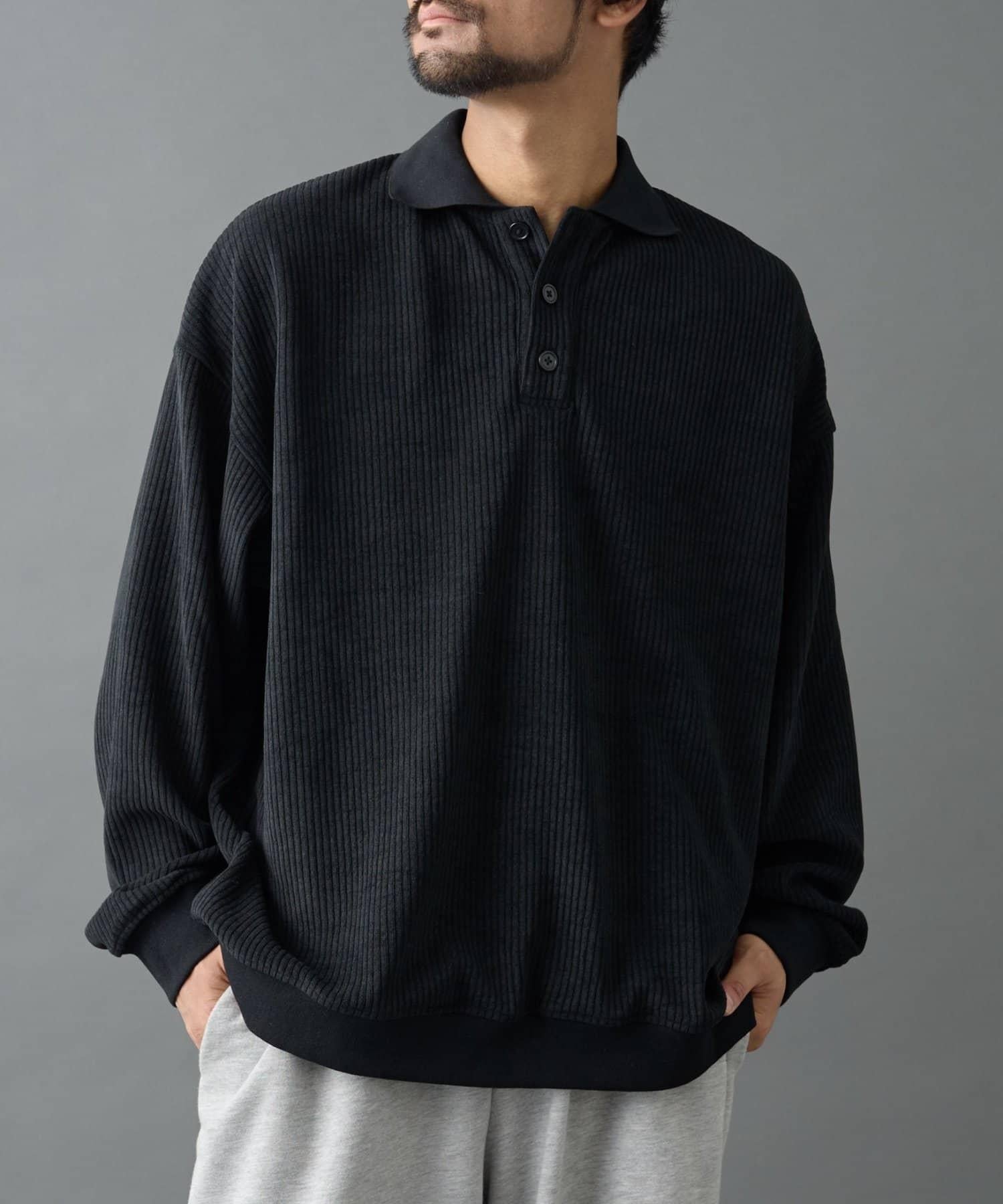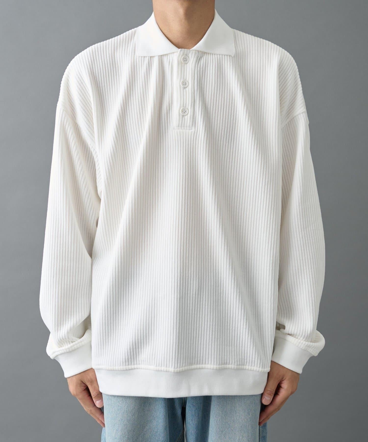 這款馬球衫採用燈芯絨面料,帶有獨特的豎脊。