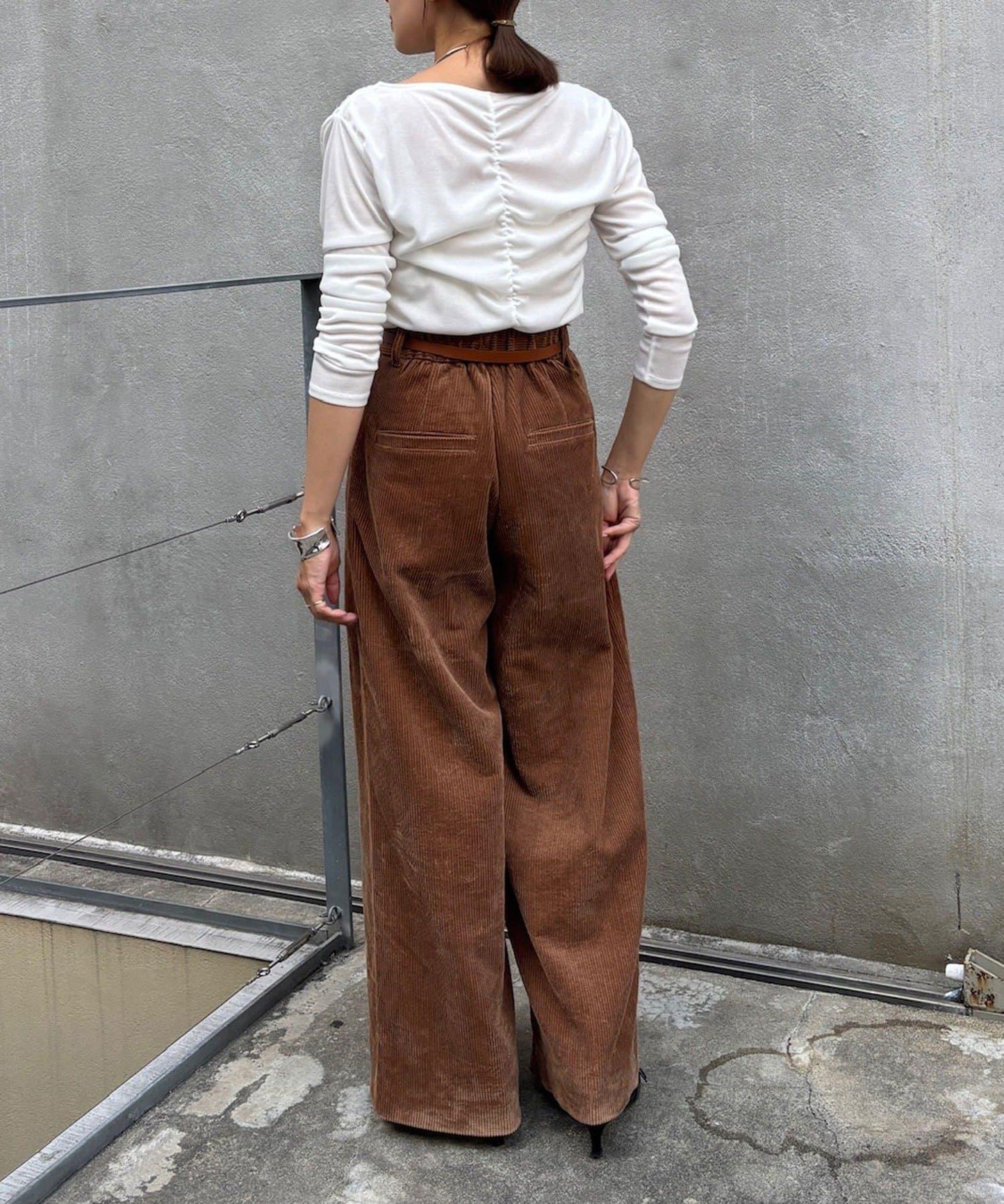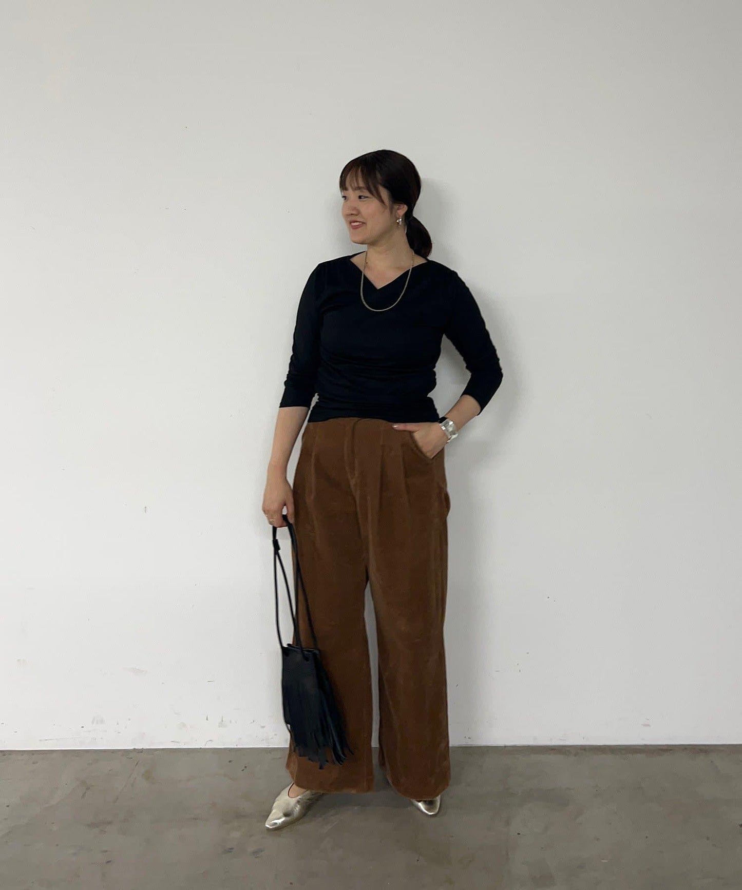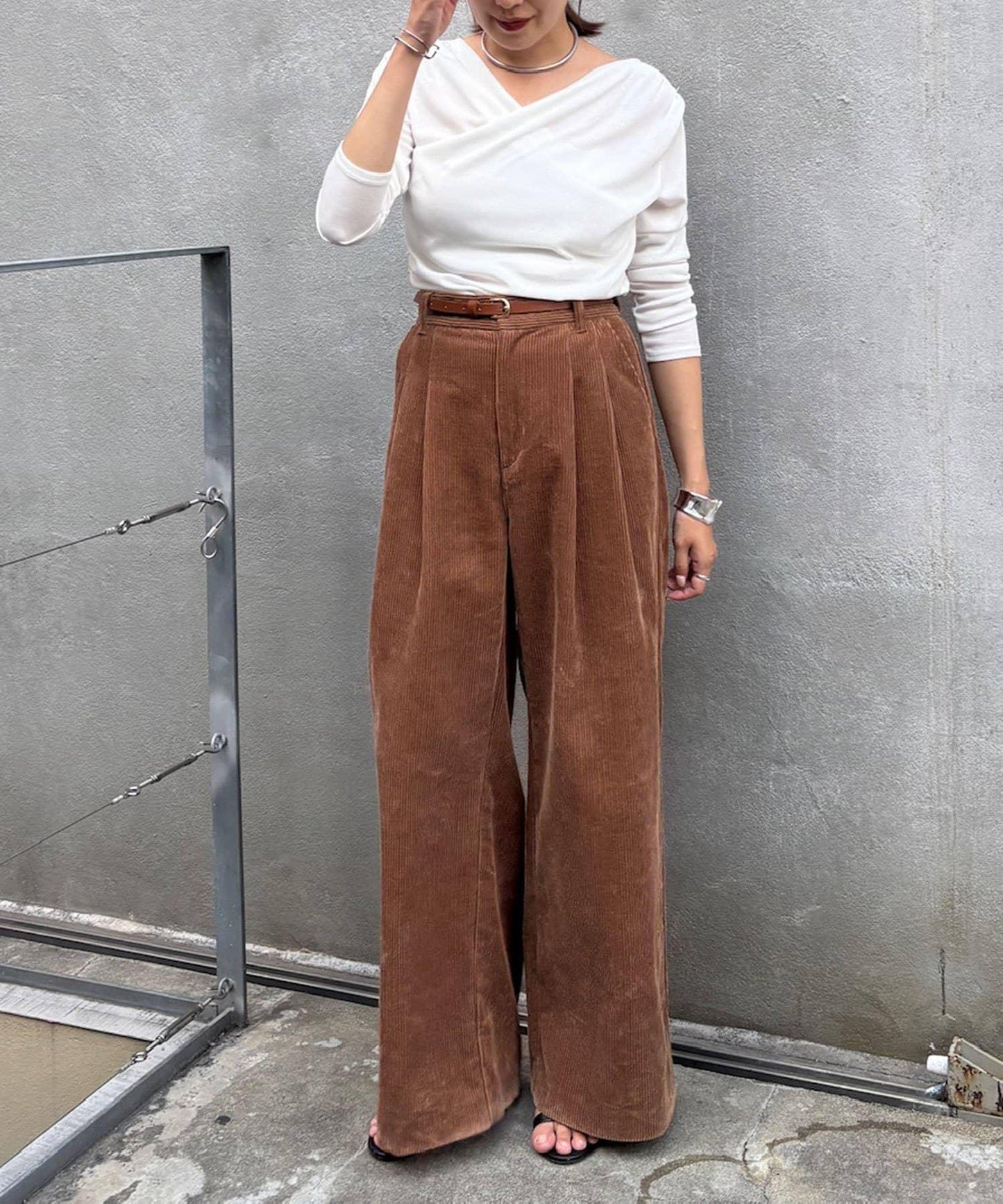 適度寬大的廓形和防止褲子傾斜的長度,使褲子也具有良好的輕盈感。