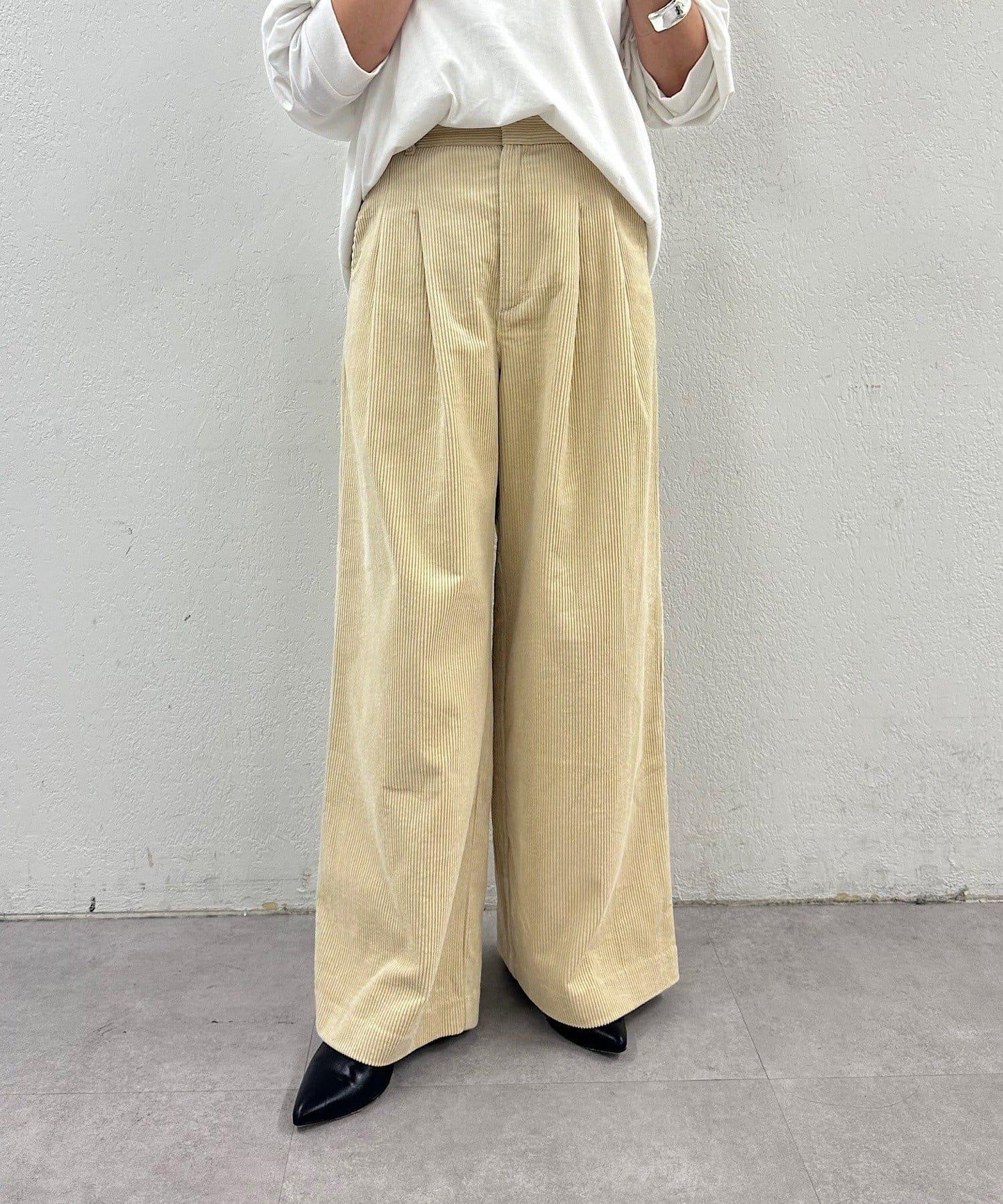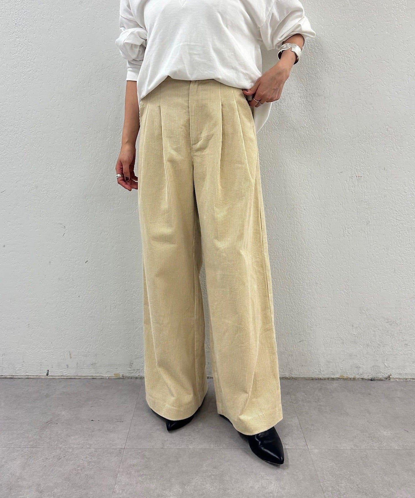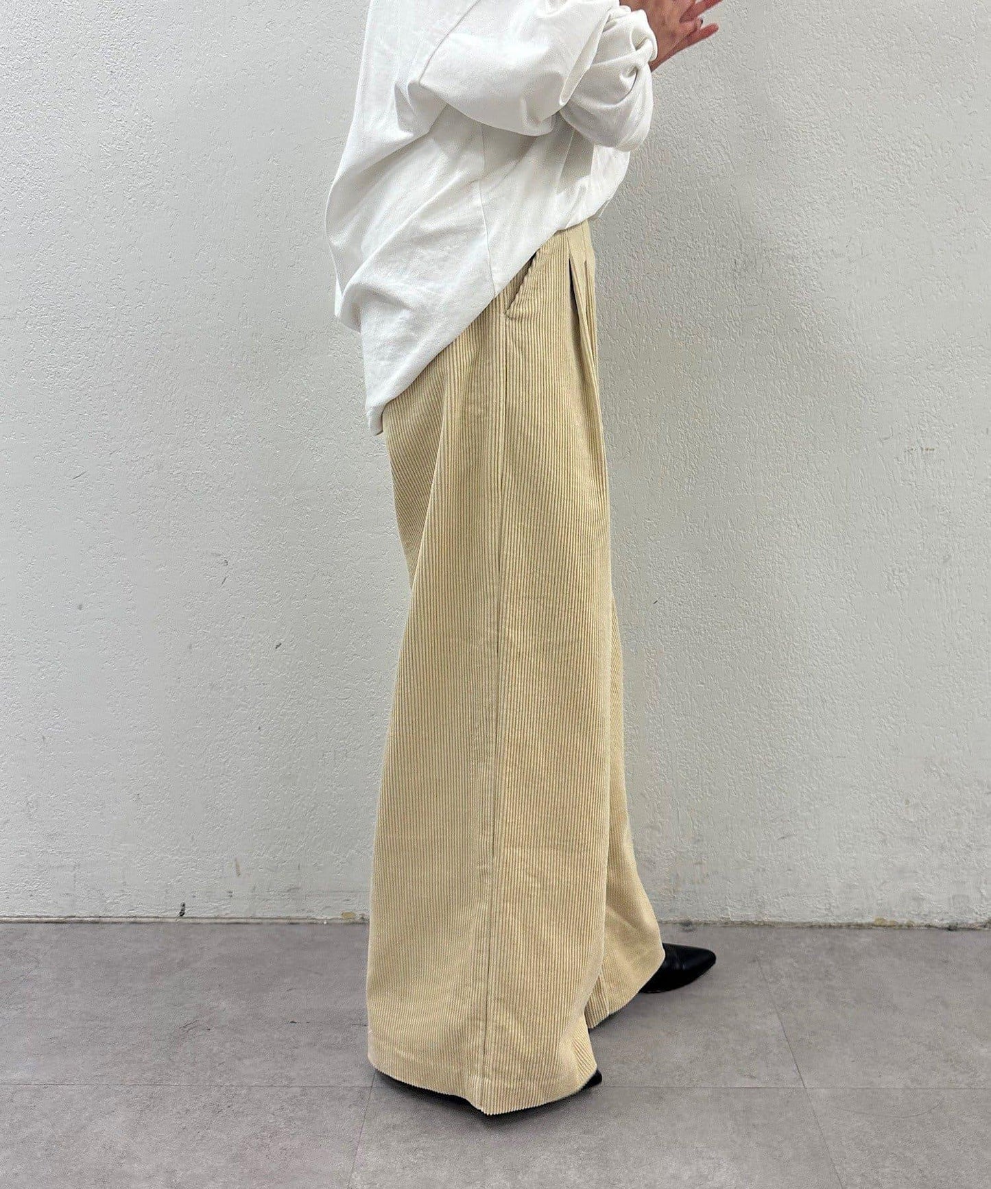 適度寬大的廓形和防止褲子傾斜的長度,使褲子也具有良好的輕盈感。