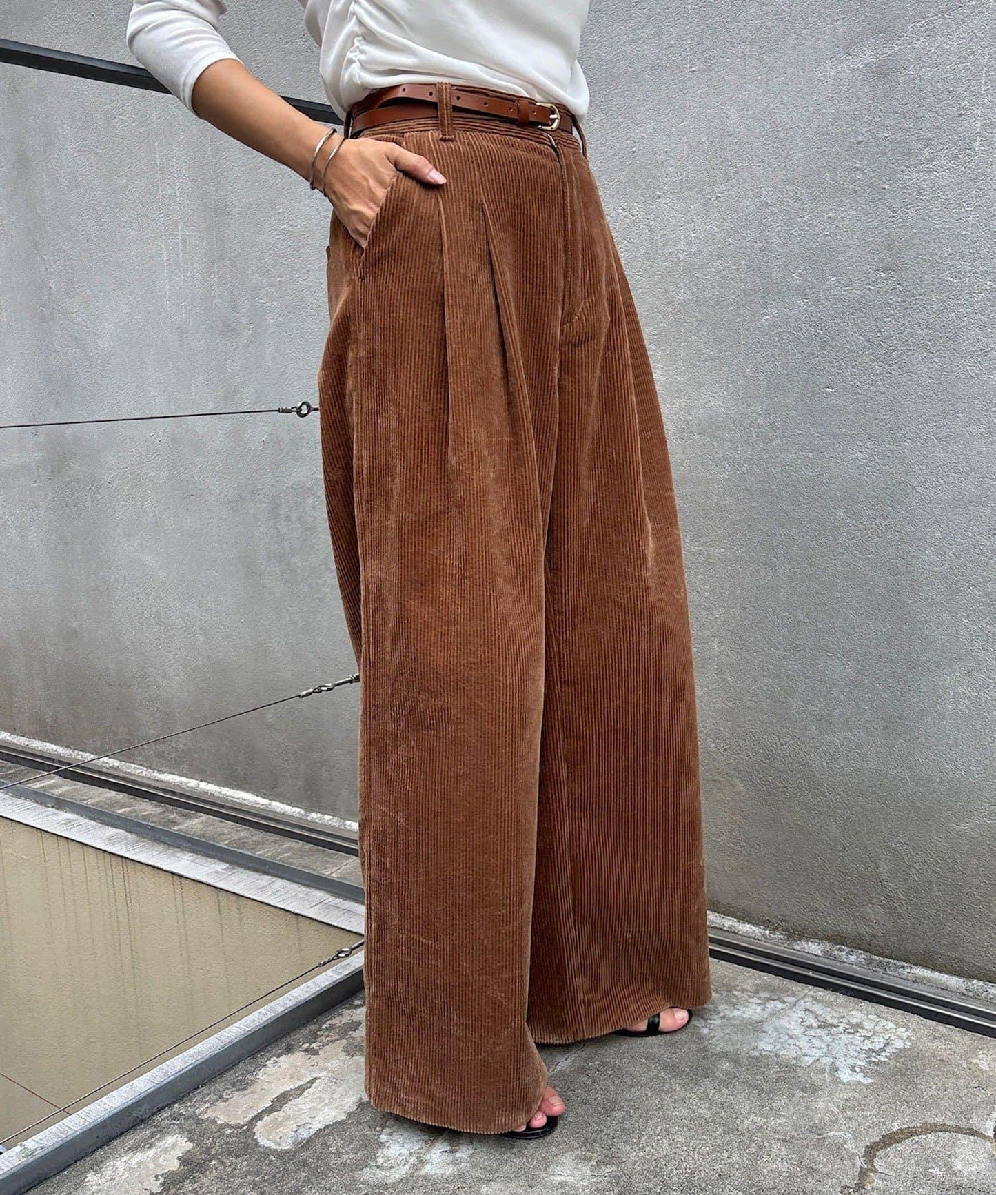 燈芯絨長褲是秋季休閒風格的必備單品。