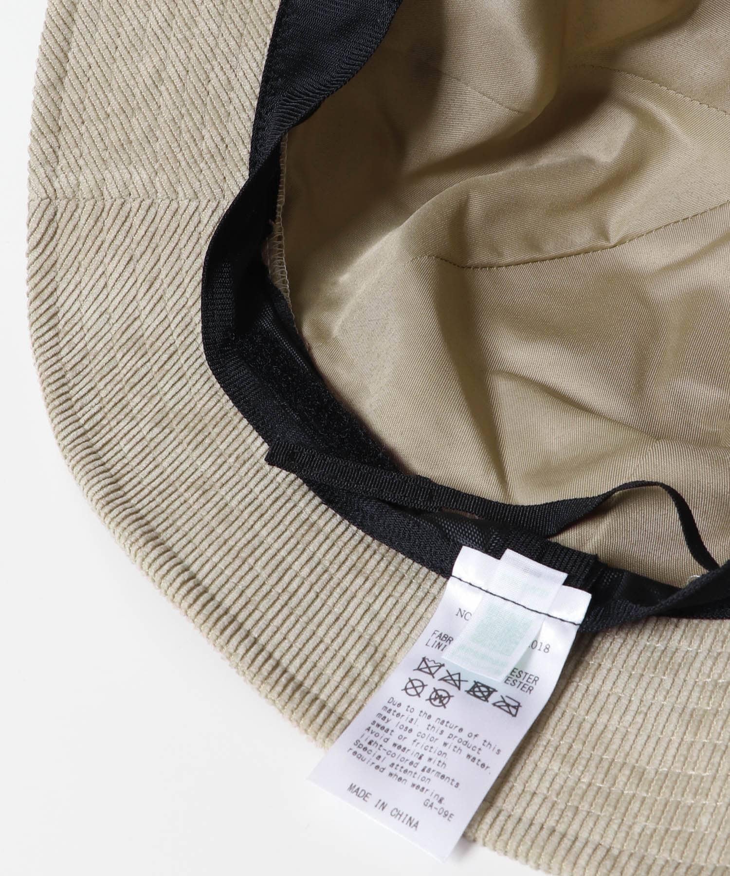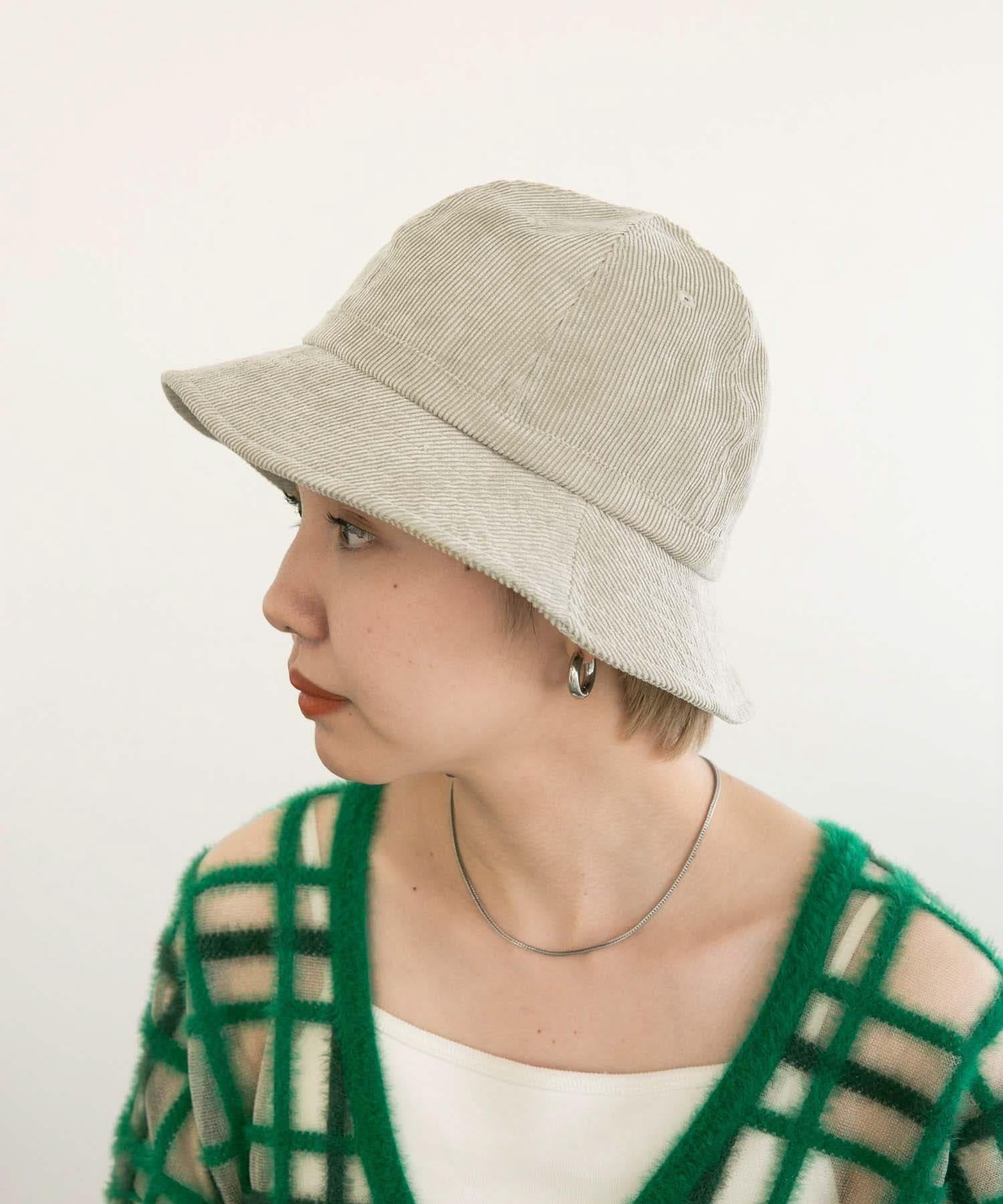 燈芯絨製成的水桶帽。帽冠(戴在頭上)的形狀像地鐵,帽簷較長,不會給人太多的戶外感。