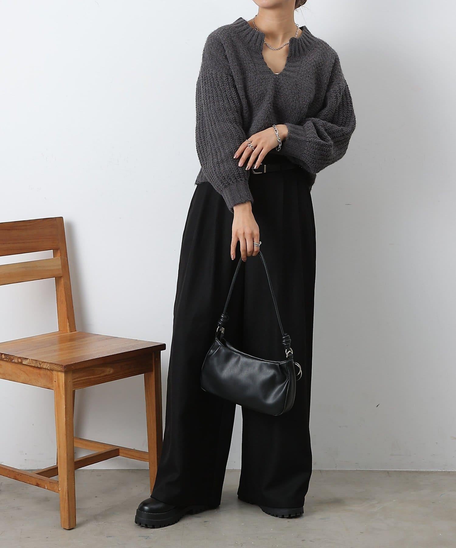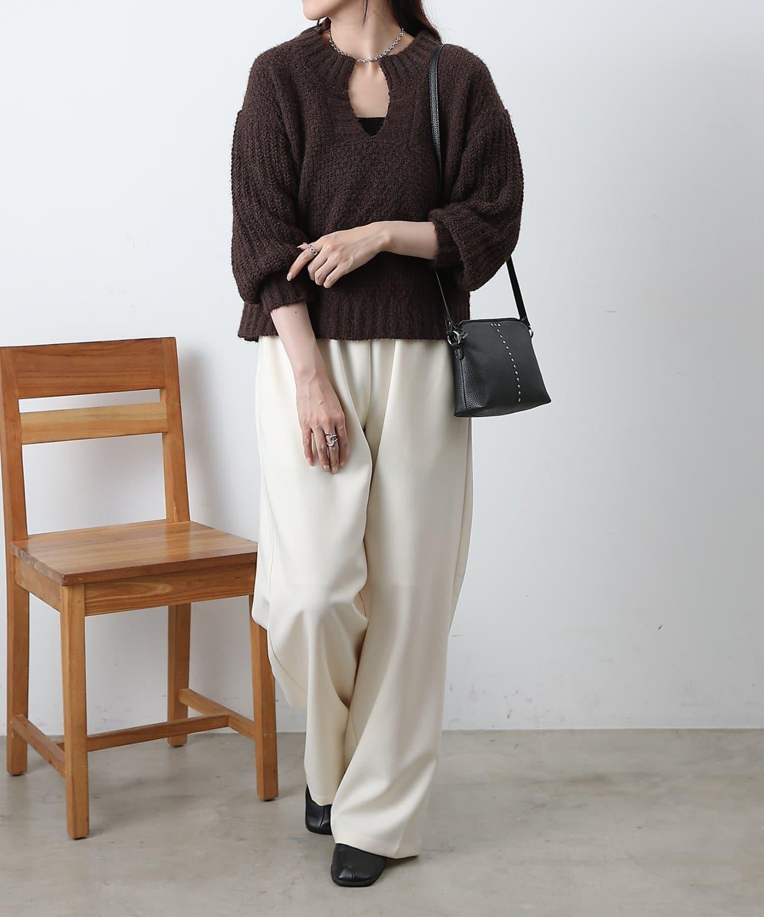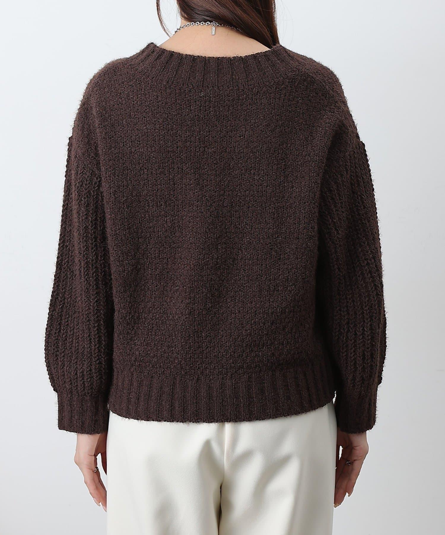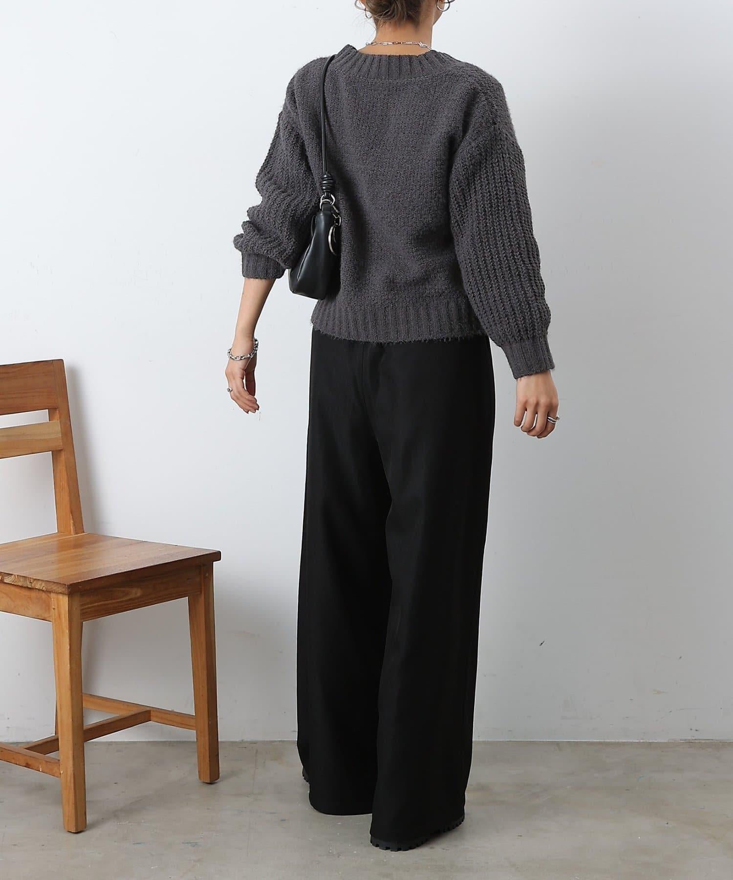 針織花紋的立體感和羽毛的光澤感為簡單的搭配增添了優雅的魅力。