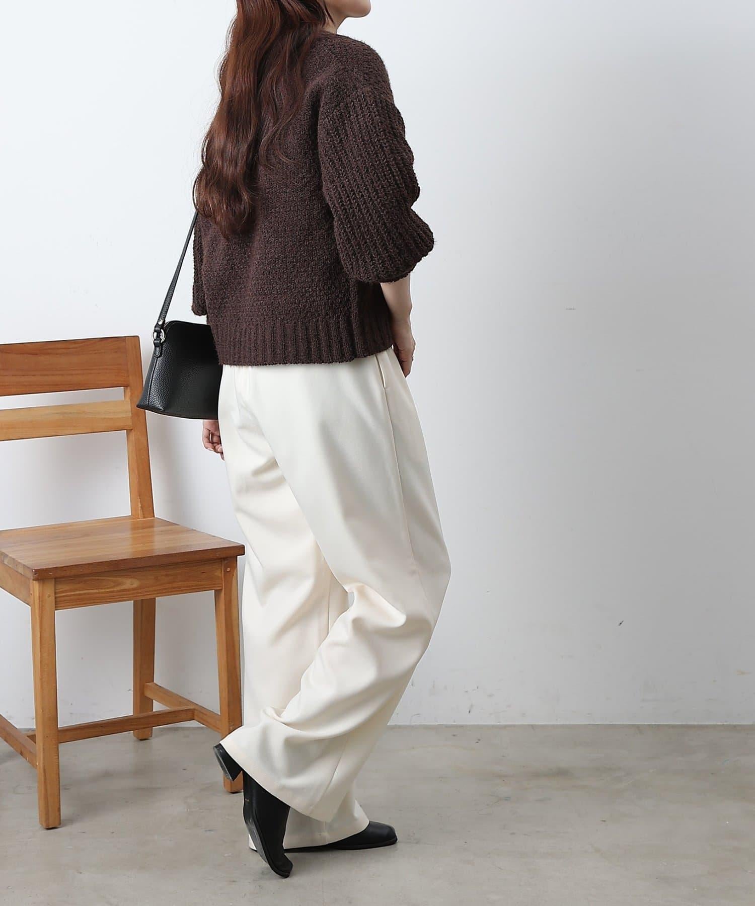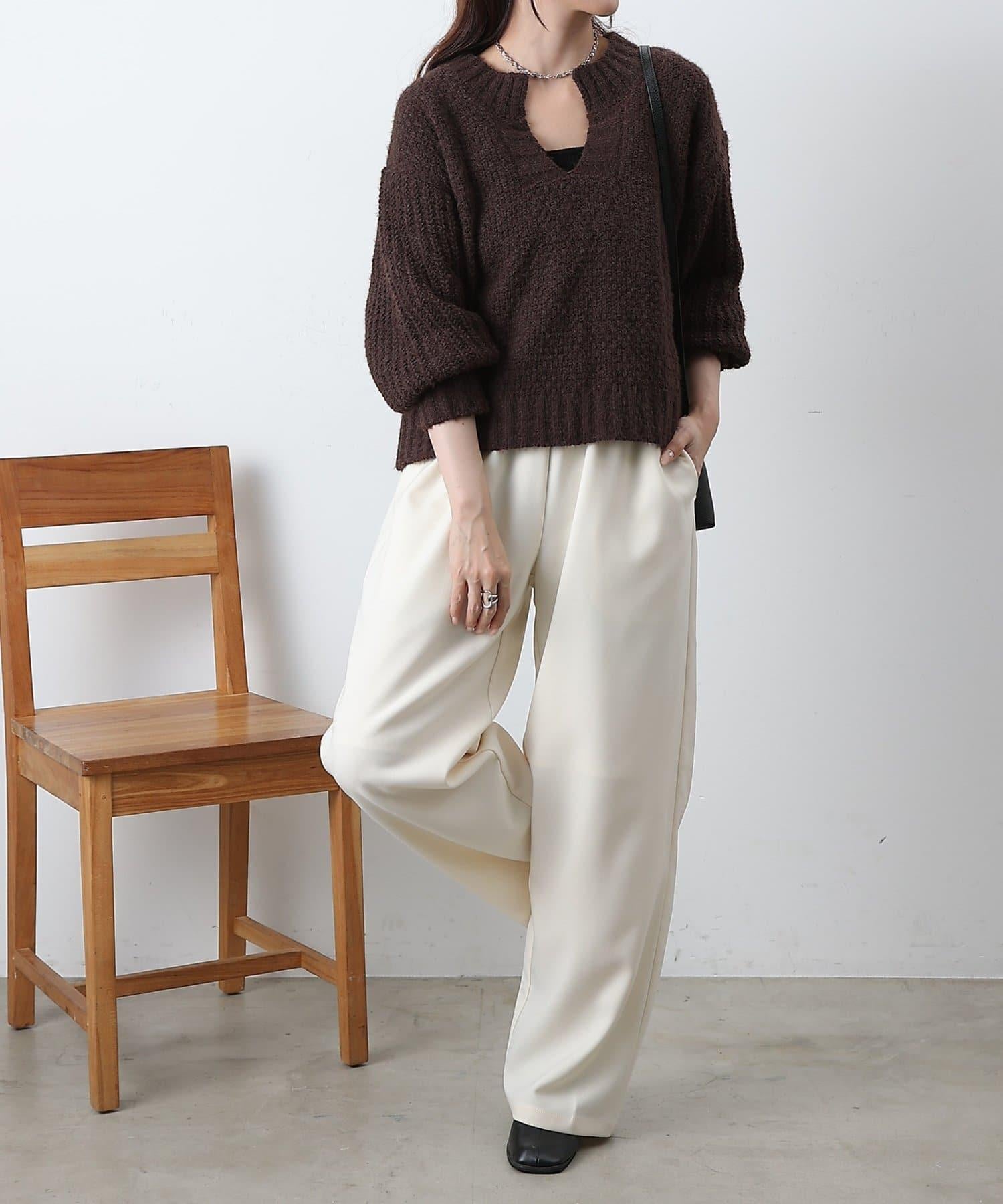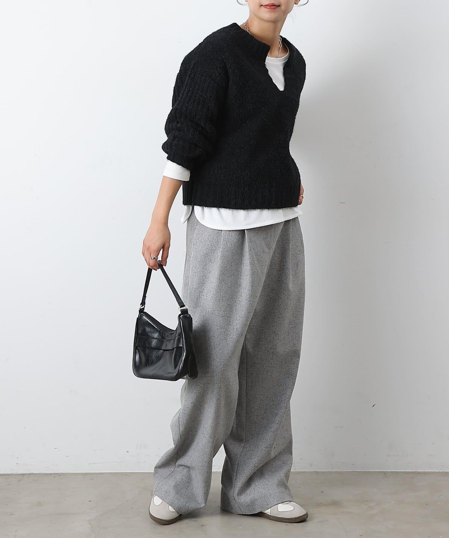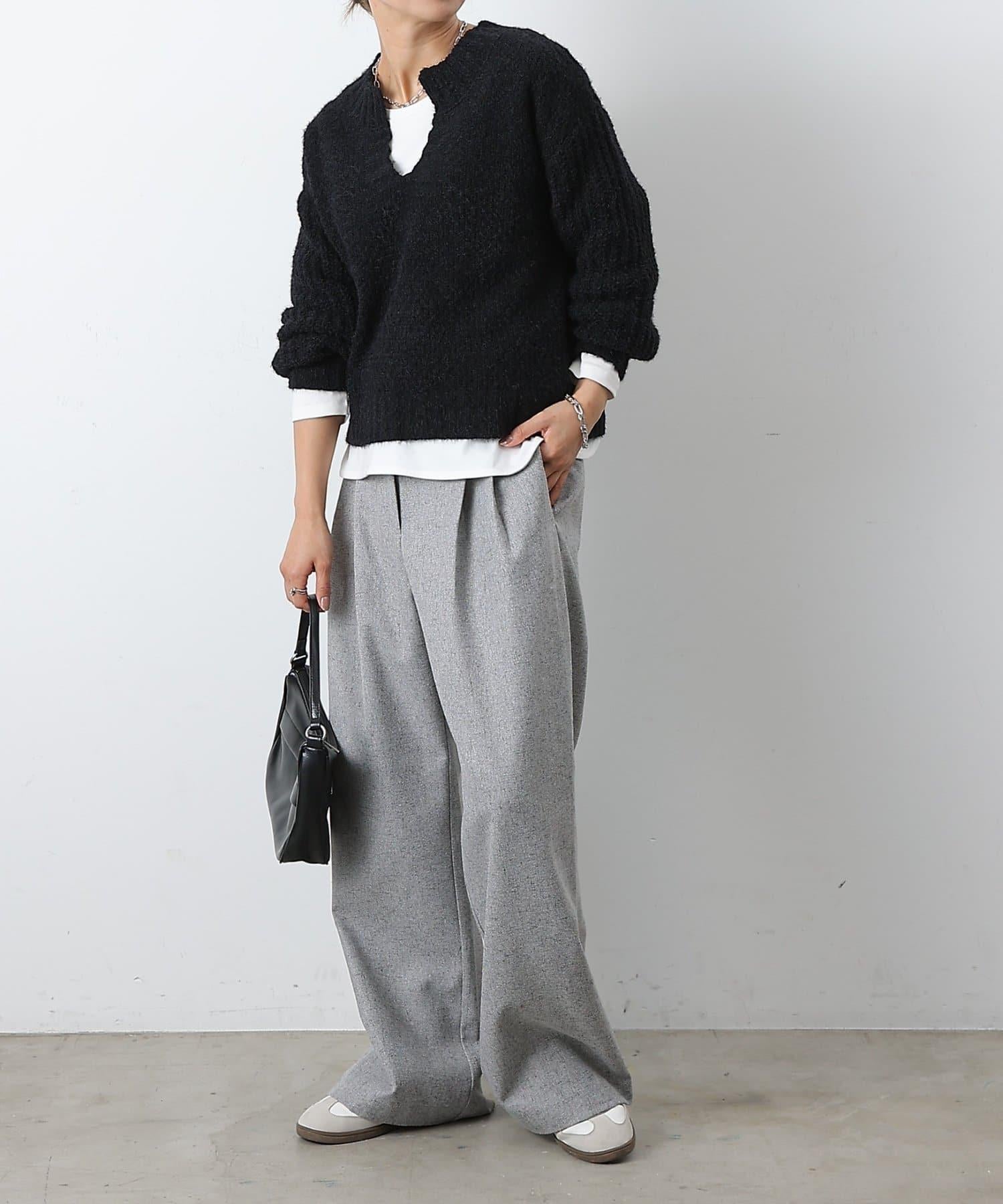 針織花紋的立體感和羽毛的光澤感為簡單的搭配增添了優雅的魅力。