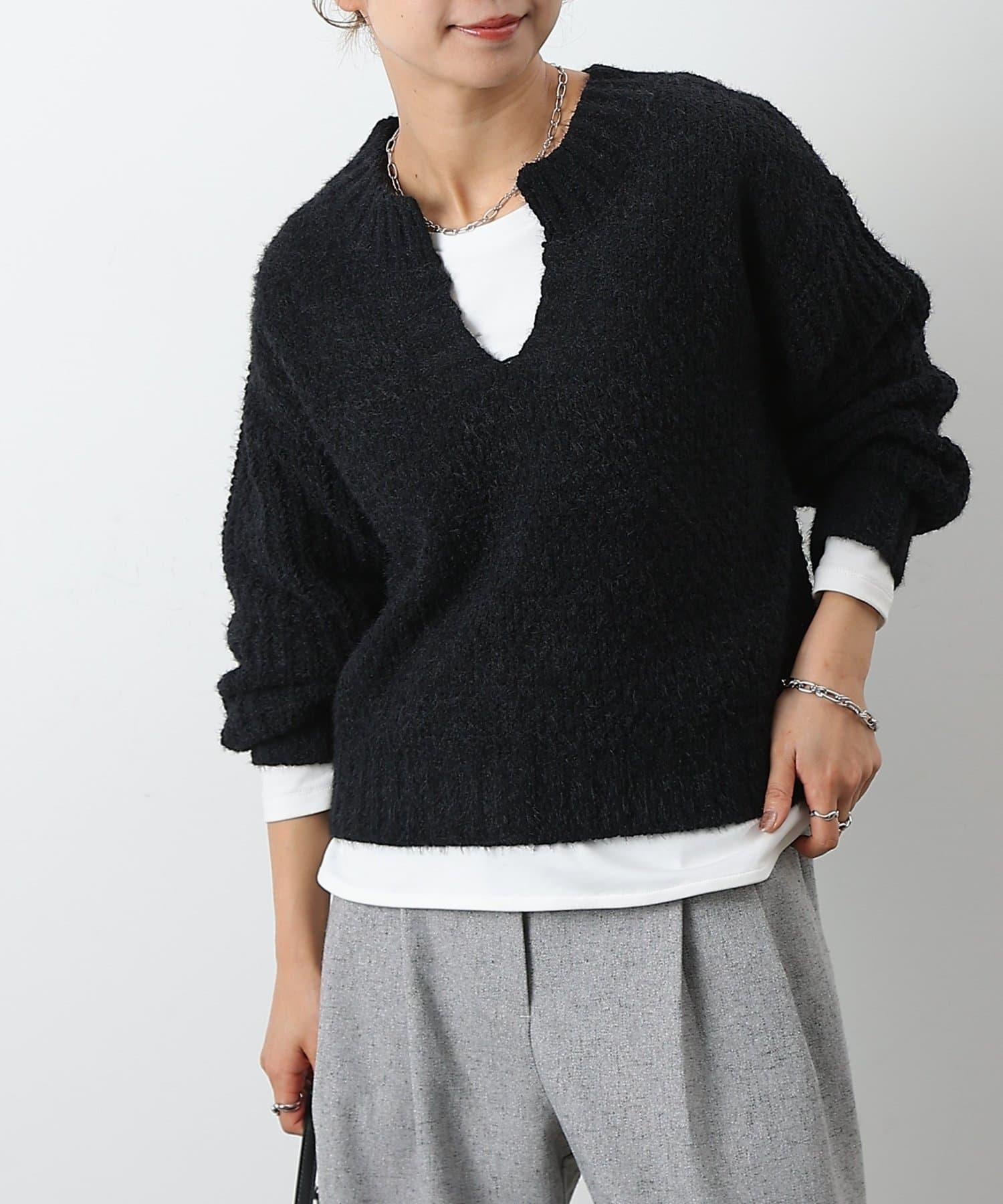 這款富有表現力的船長針織衫採用蓬鬆的羽毛紗編織而成。