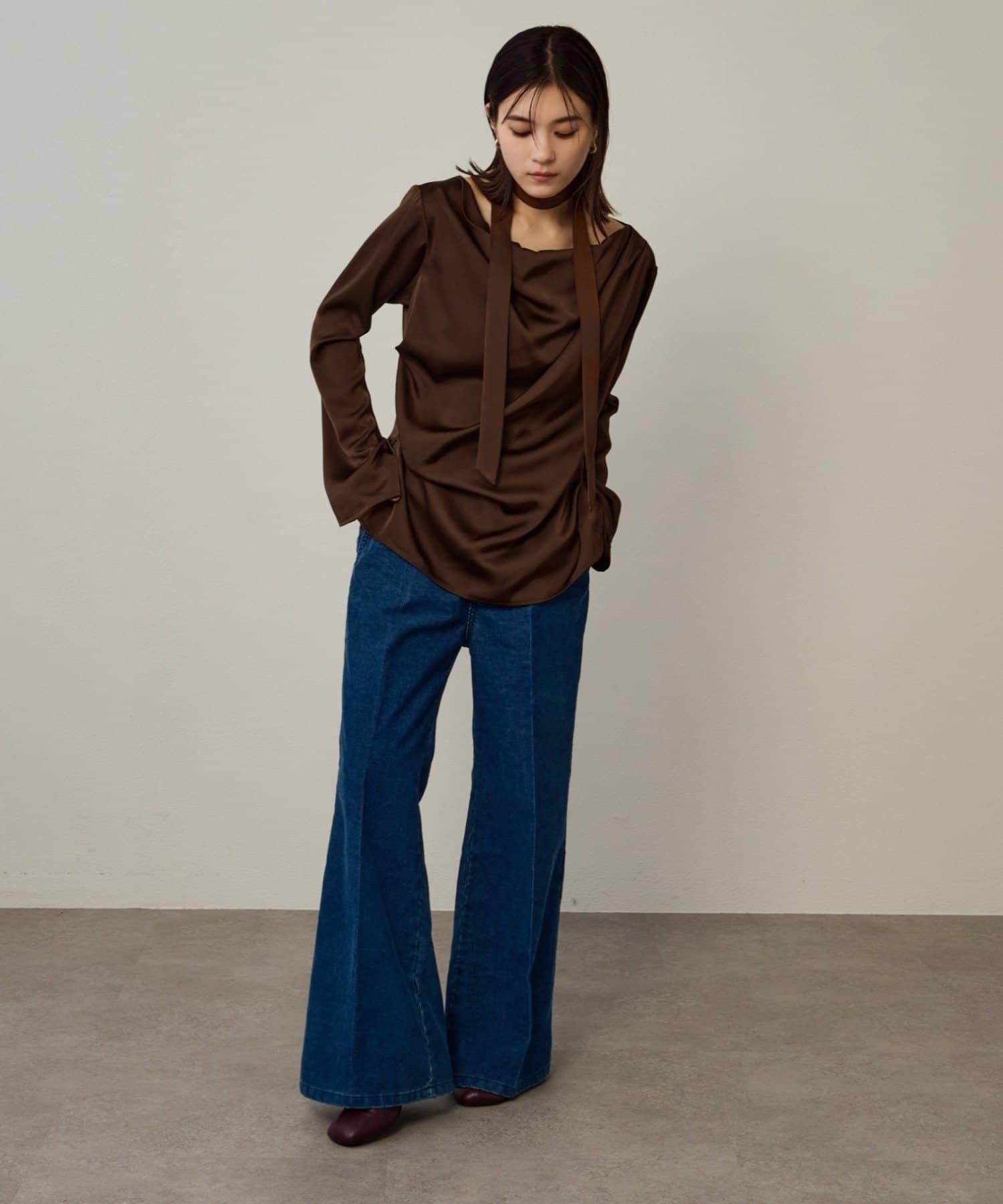 即使搭配簡單的上衣,長褲的材質也會給人一種精緻的感覺。