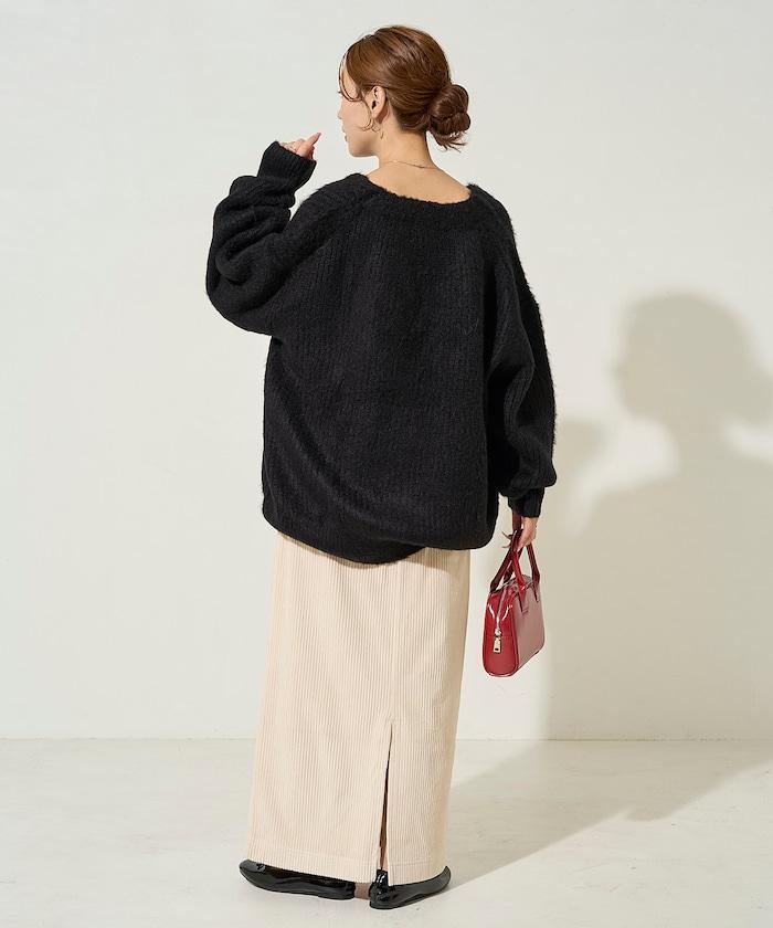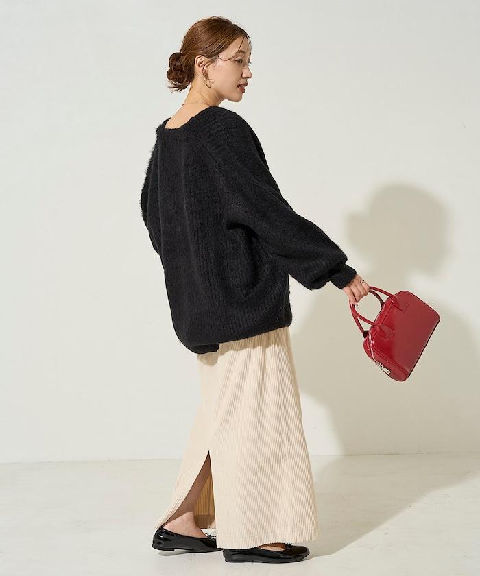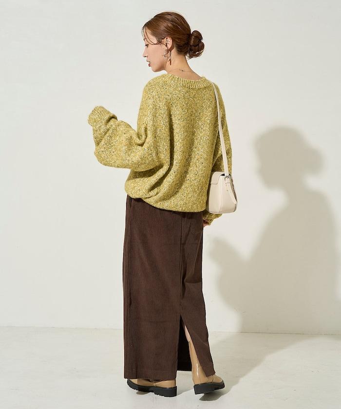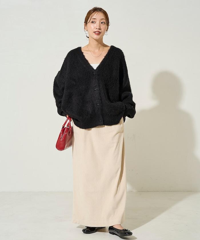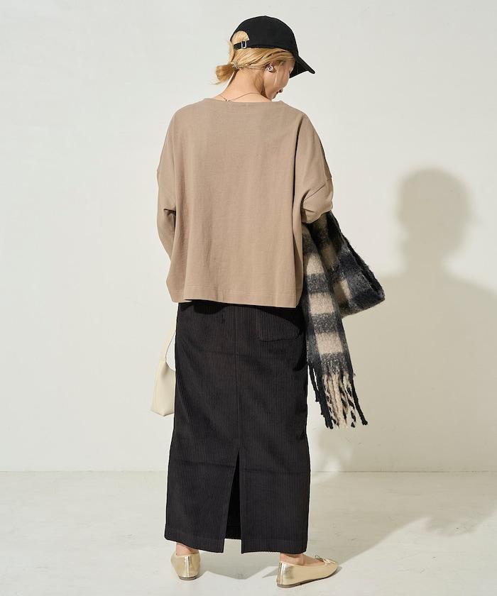 內搭寬鬆的線針織衫,配上長靴,打造更具季節感的輕鬆成人造型。