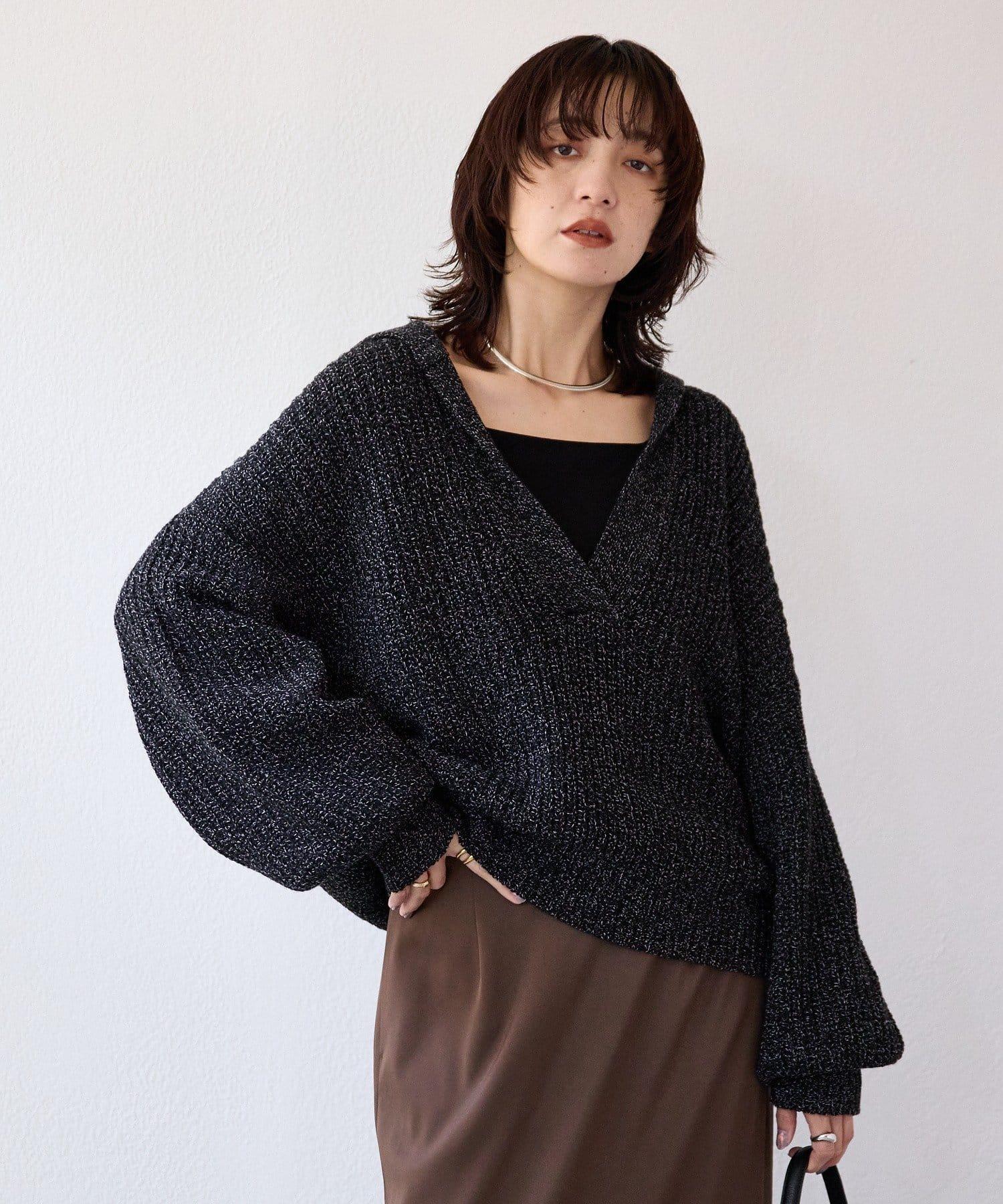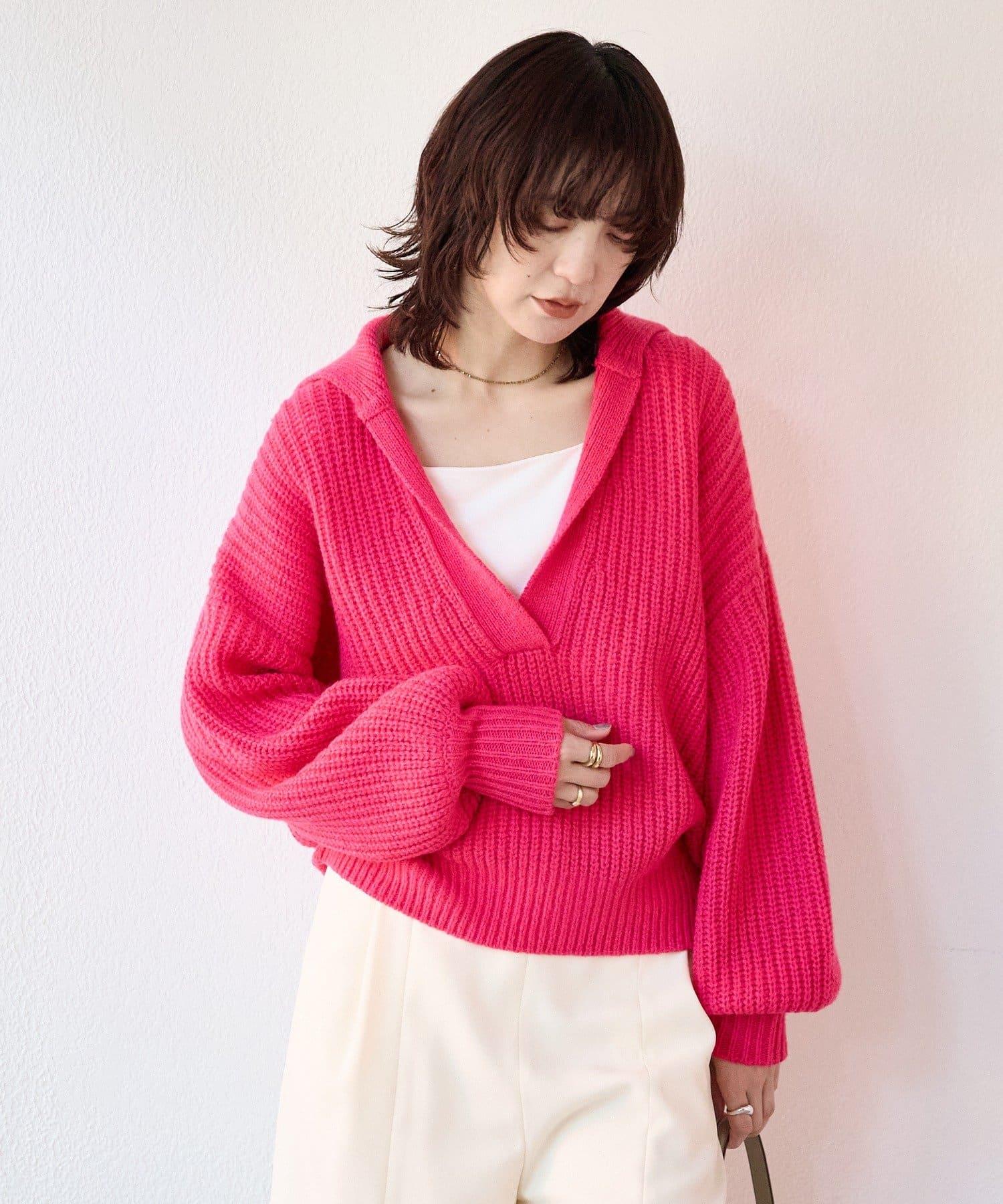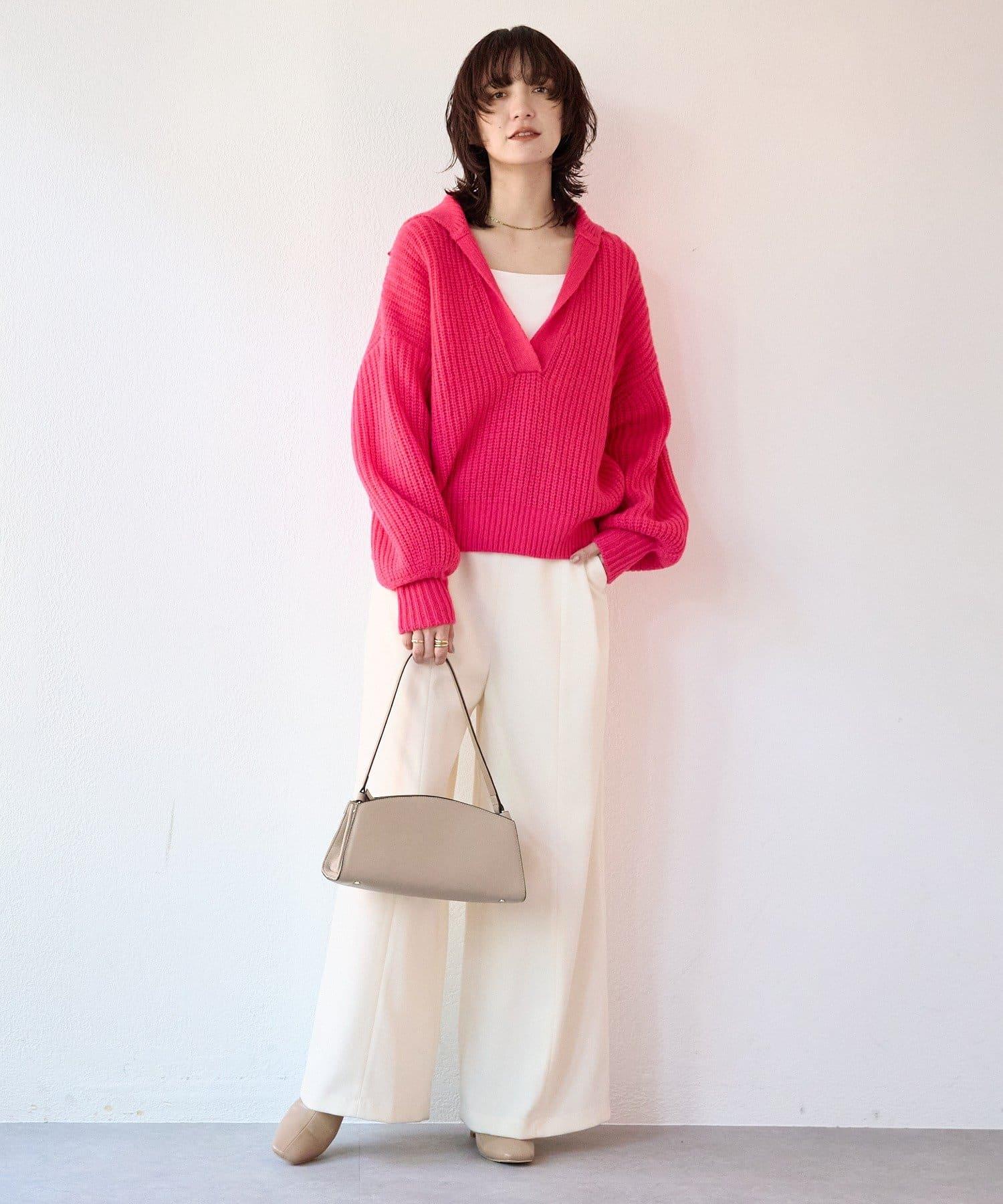 針織面料蓬鬆感十足,圓潤的版型也營造出女性的柔美情調。
