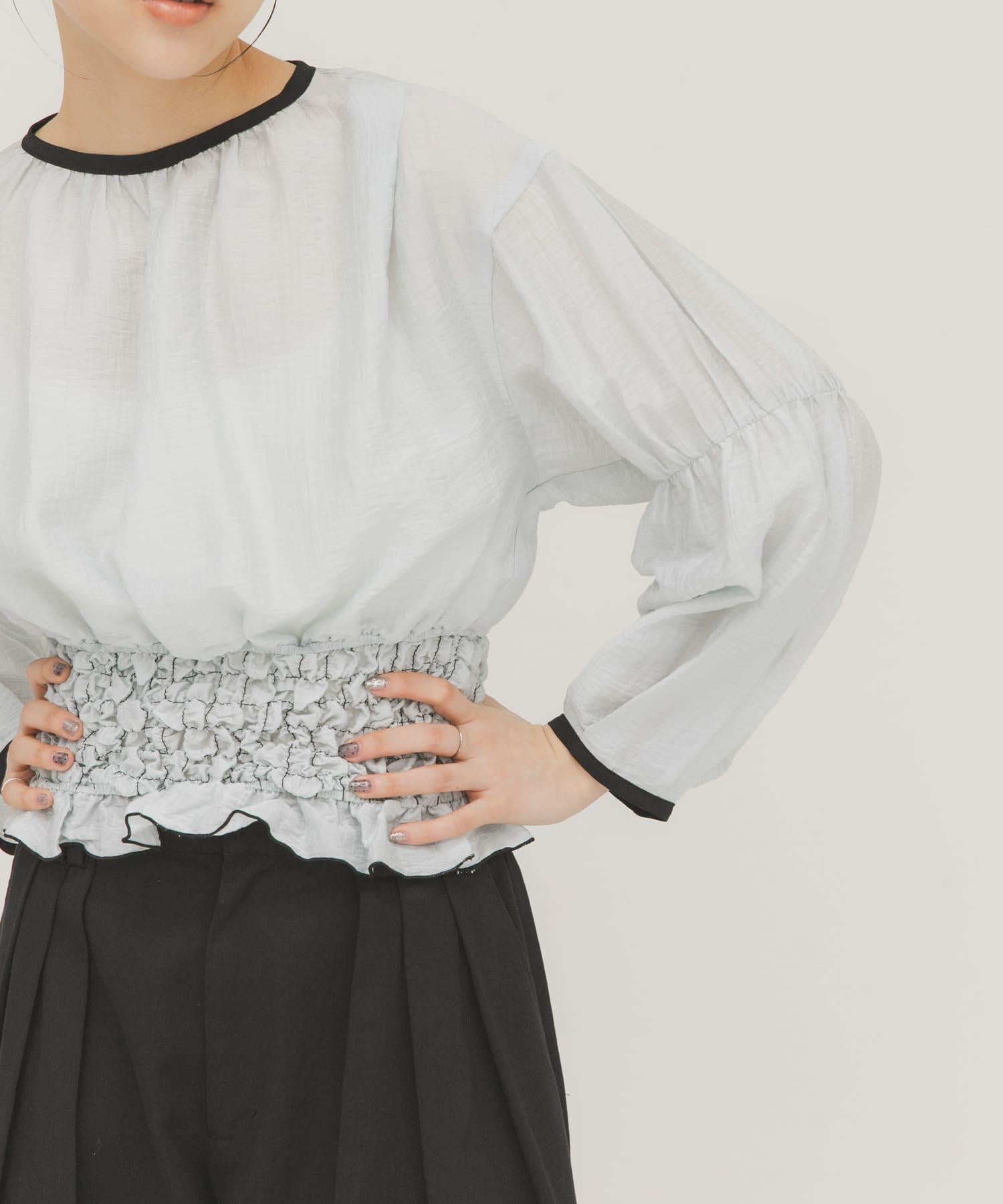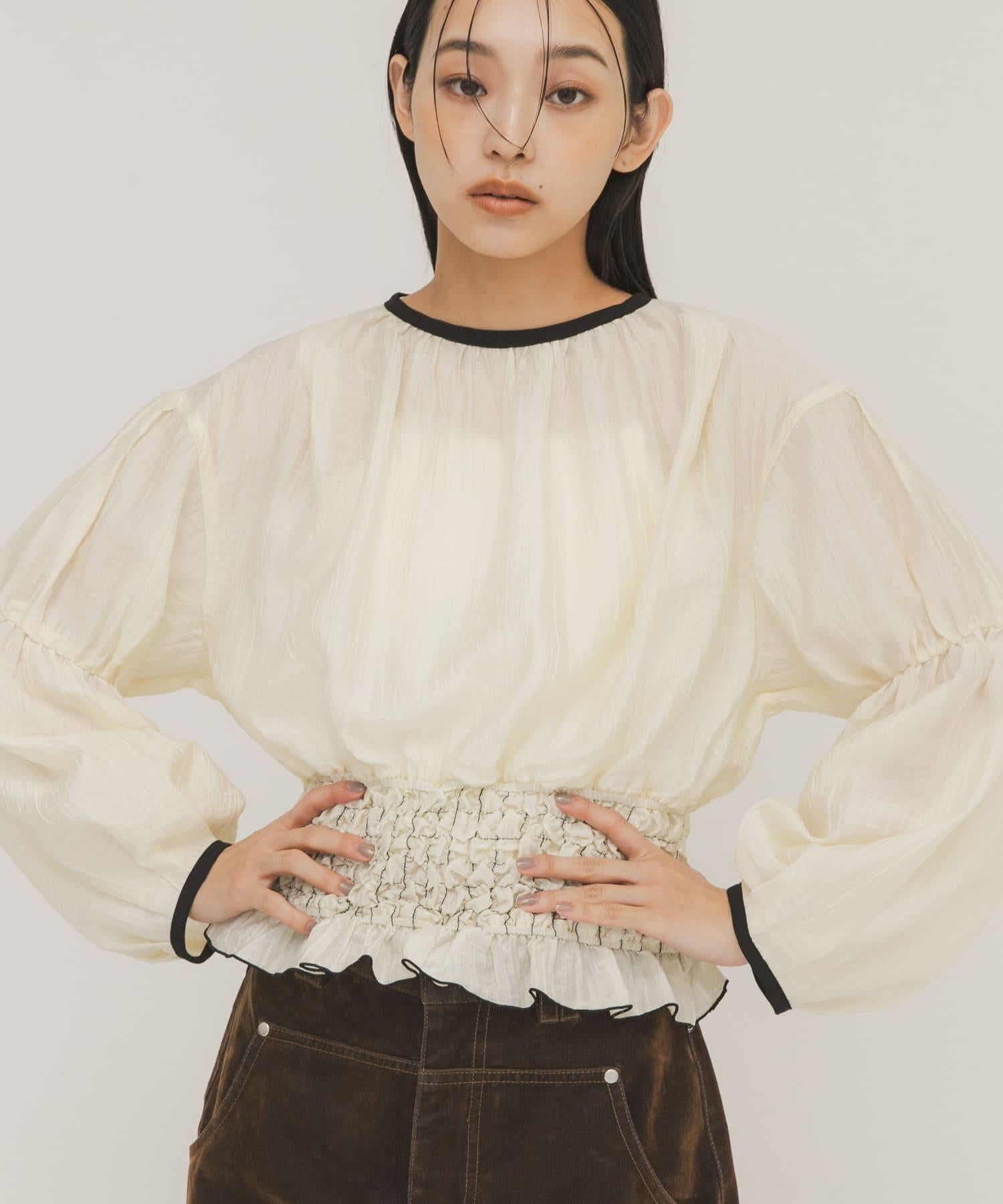 這件上衣腰部的爆米花裝飾設計讓人眼前一亮。領口、袖口,甚至是襯衫的顏色都很協調,自然而然地提升了風格。適度透明的面料很有女人味,與休閒下裝搭配也很合適。