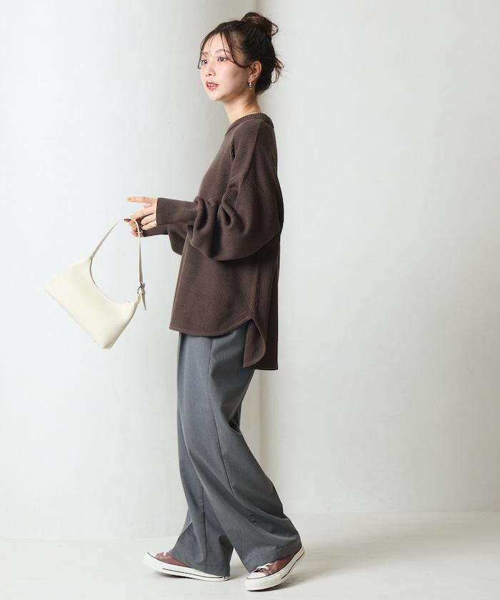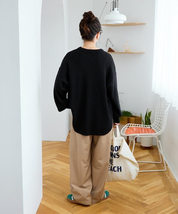 落肩和寬鬆的剪裁給人一種輕鬆的感覺。