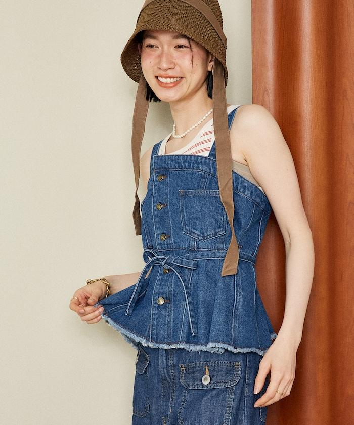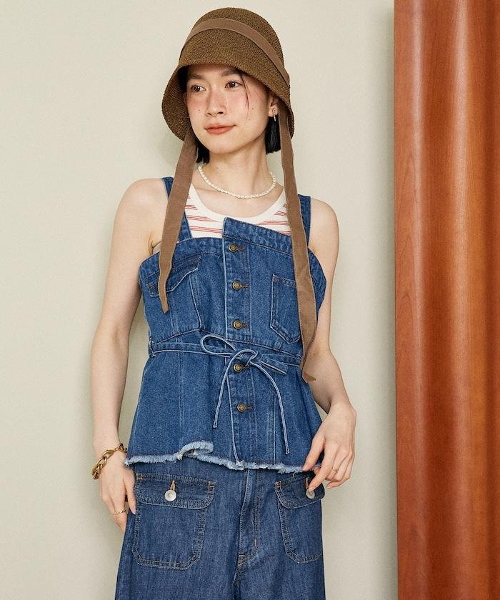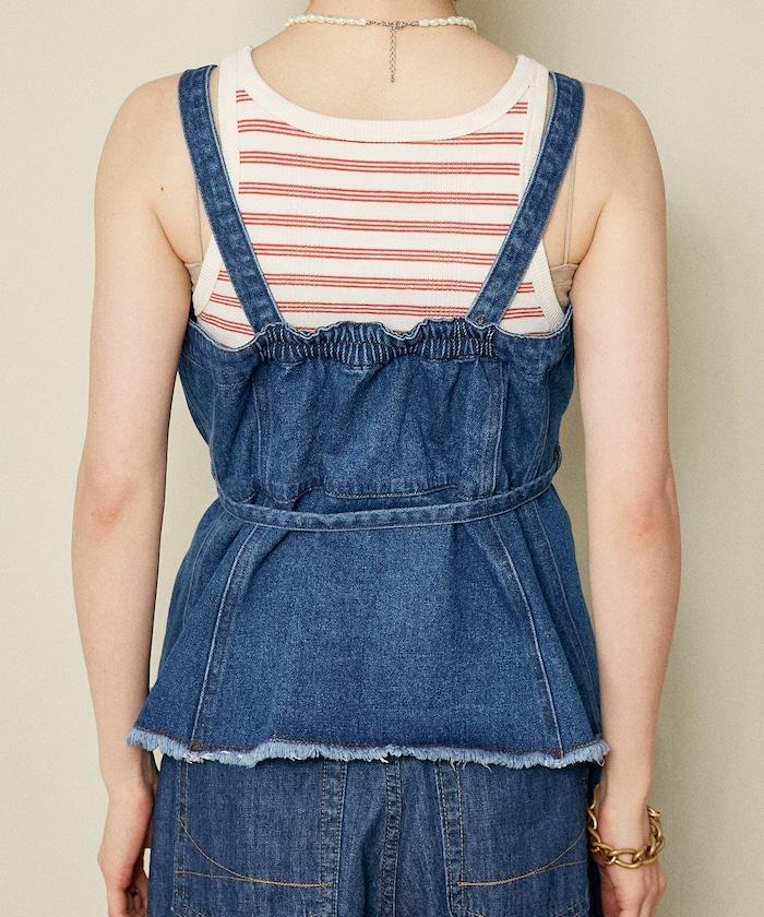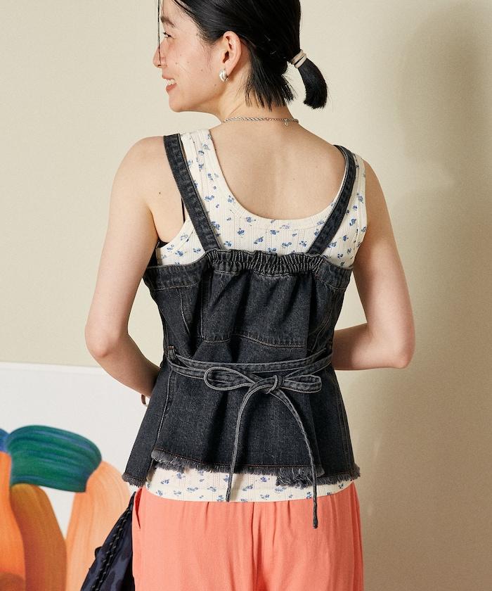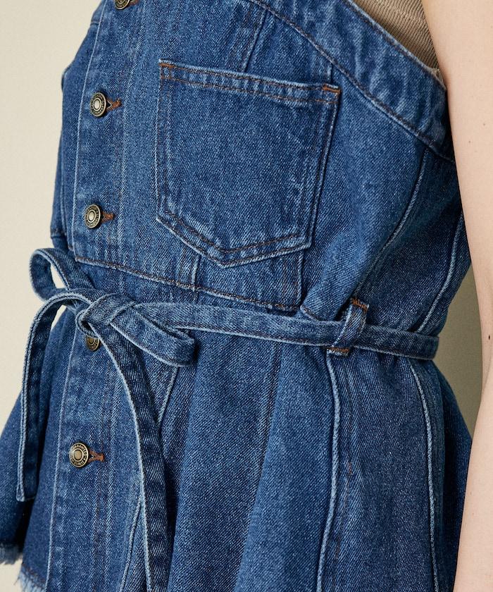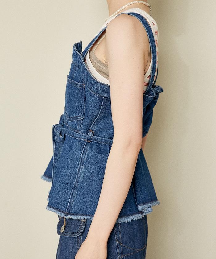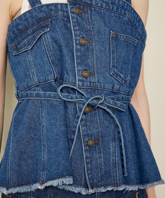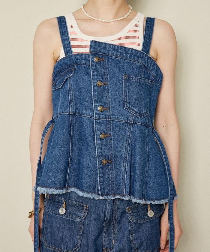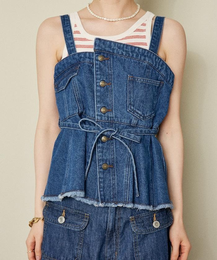 牛仔不對稱背心/帶蝴蝶結 牛仔背心