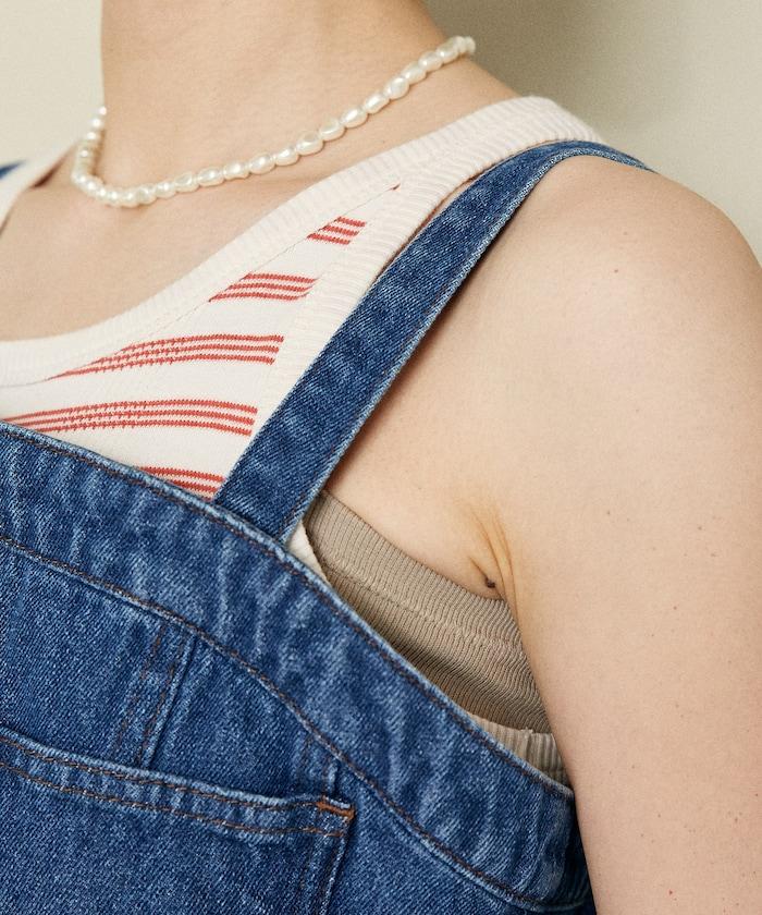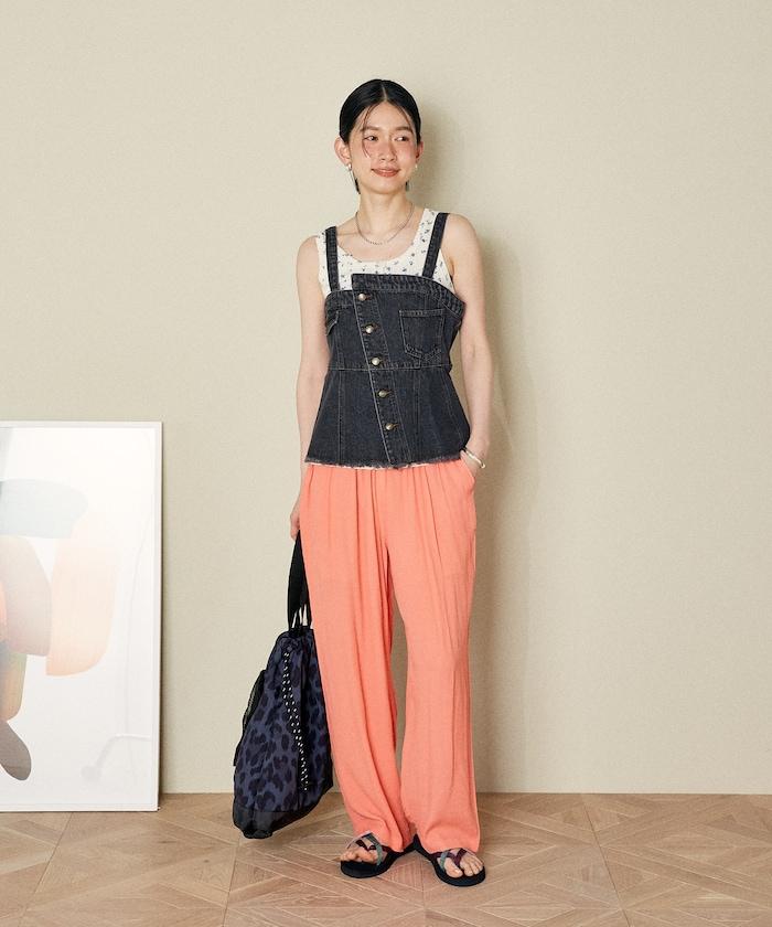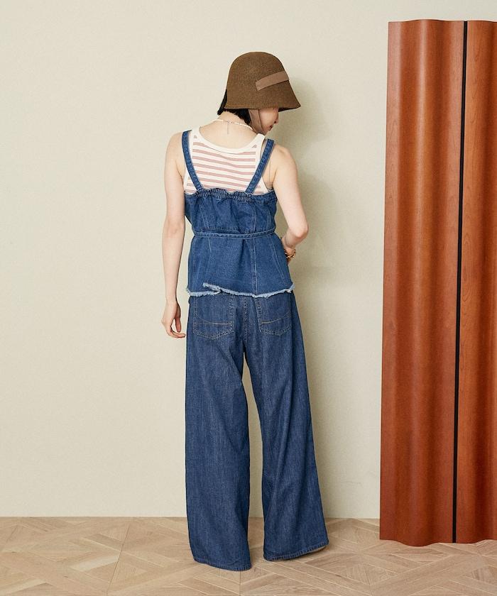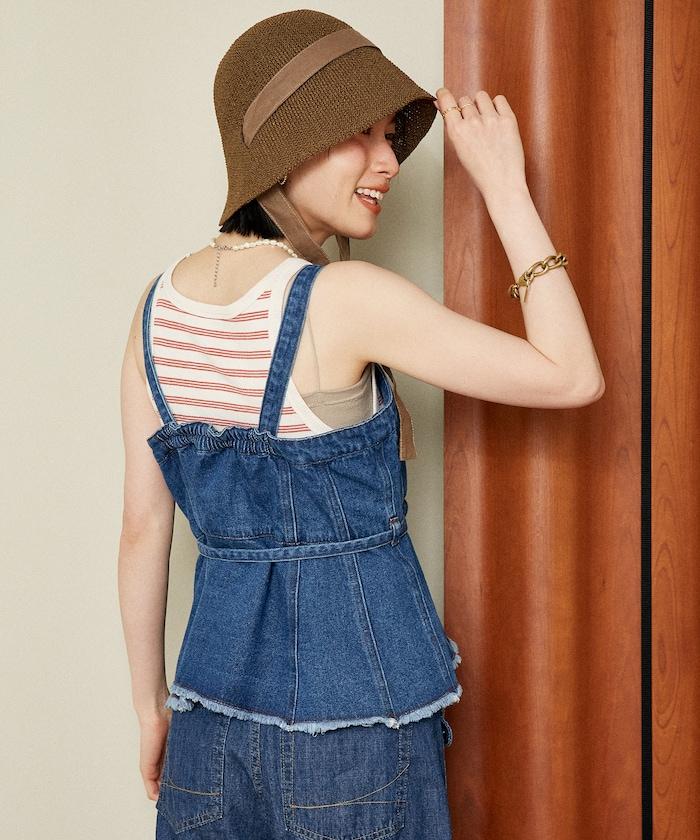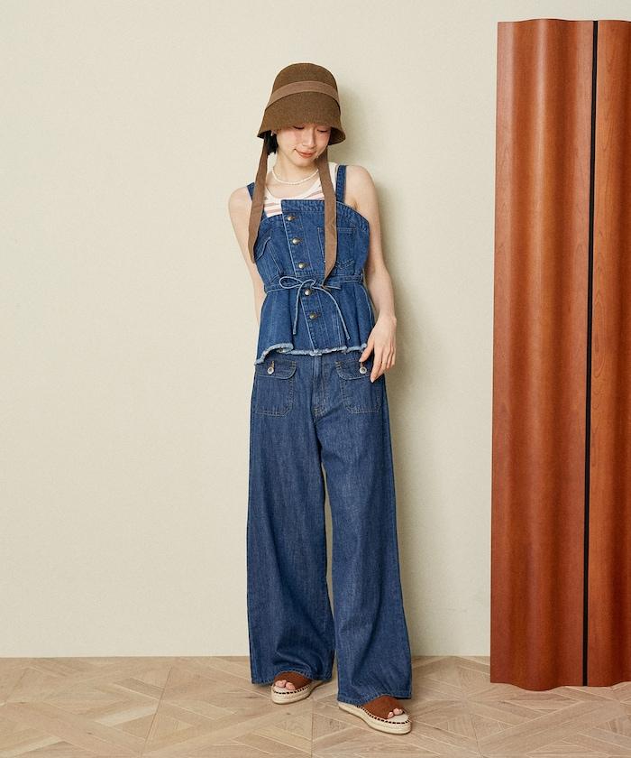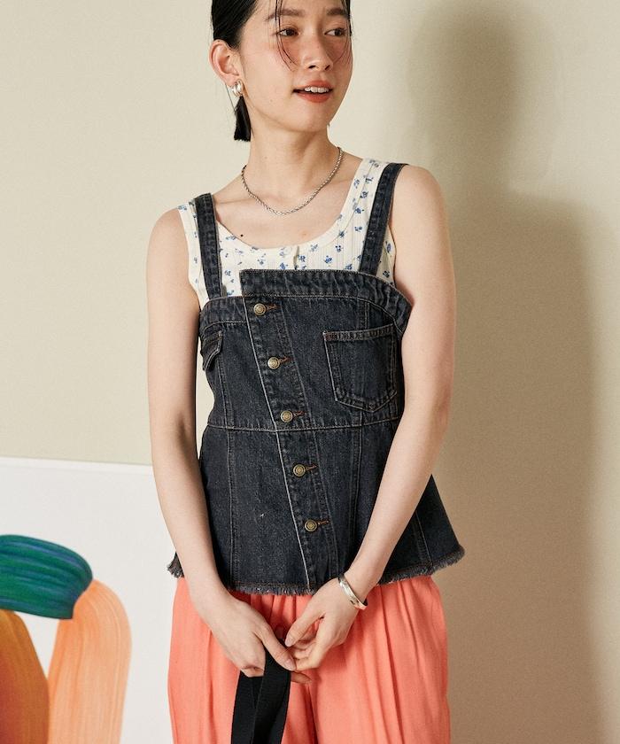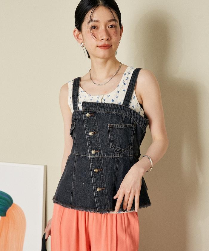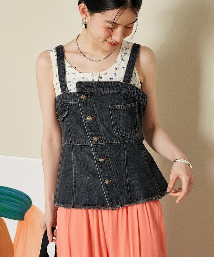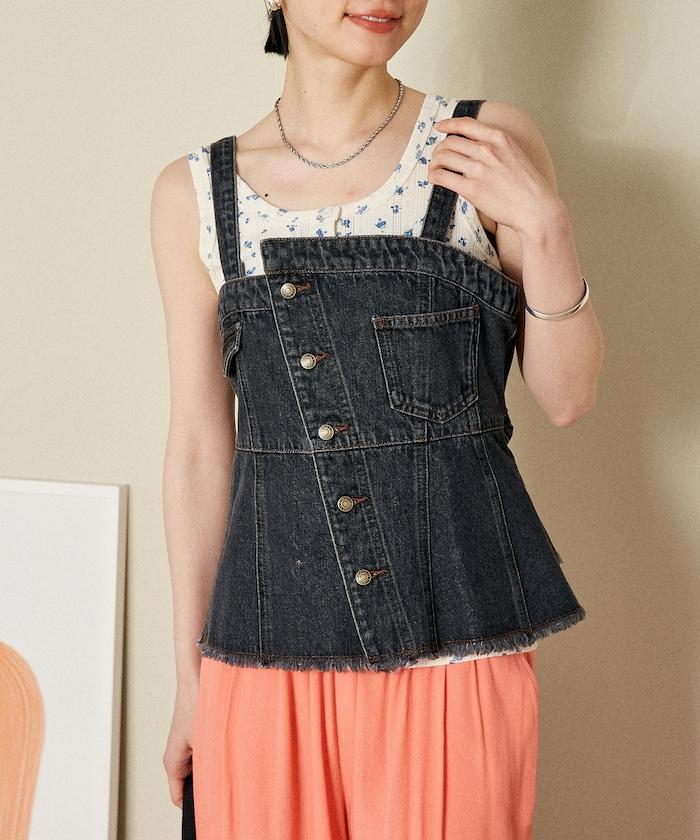 牛仔不對稱背心/帶蝴蝶結 牛仔背心