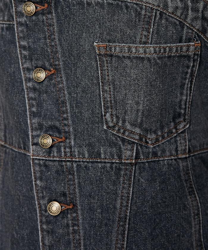 牛仔半身裙,前幅採用時尚的不對稱設計。