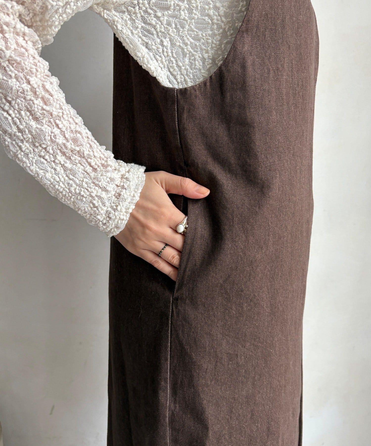 牛仔中縫吊帶連衣裙