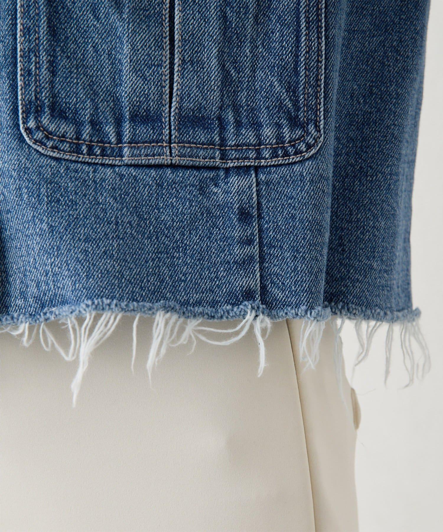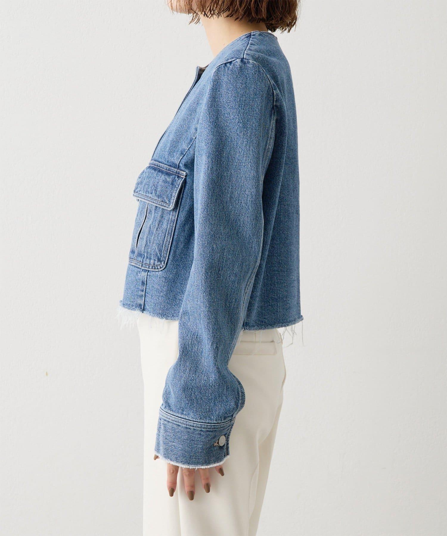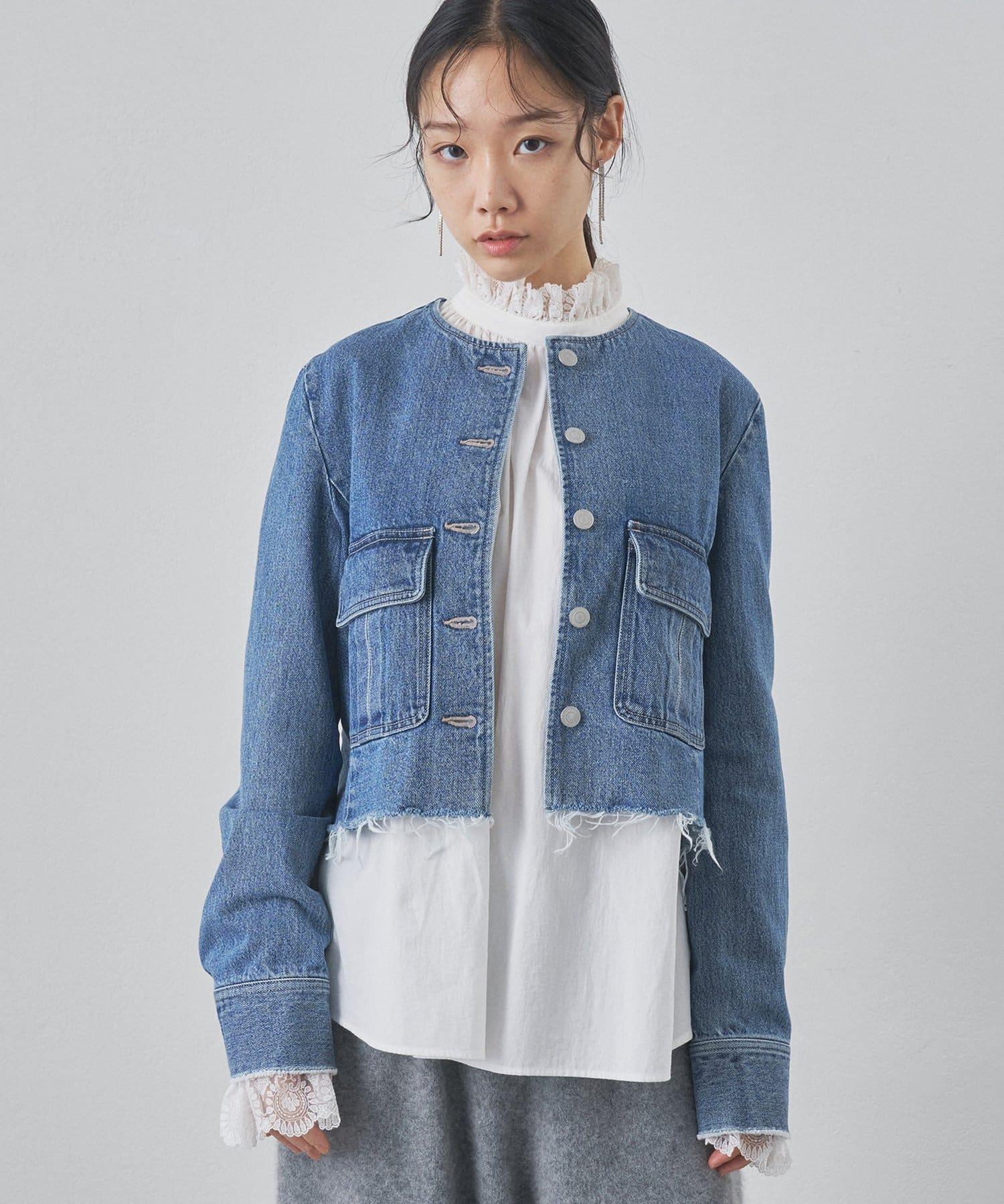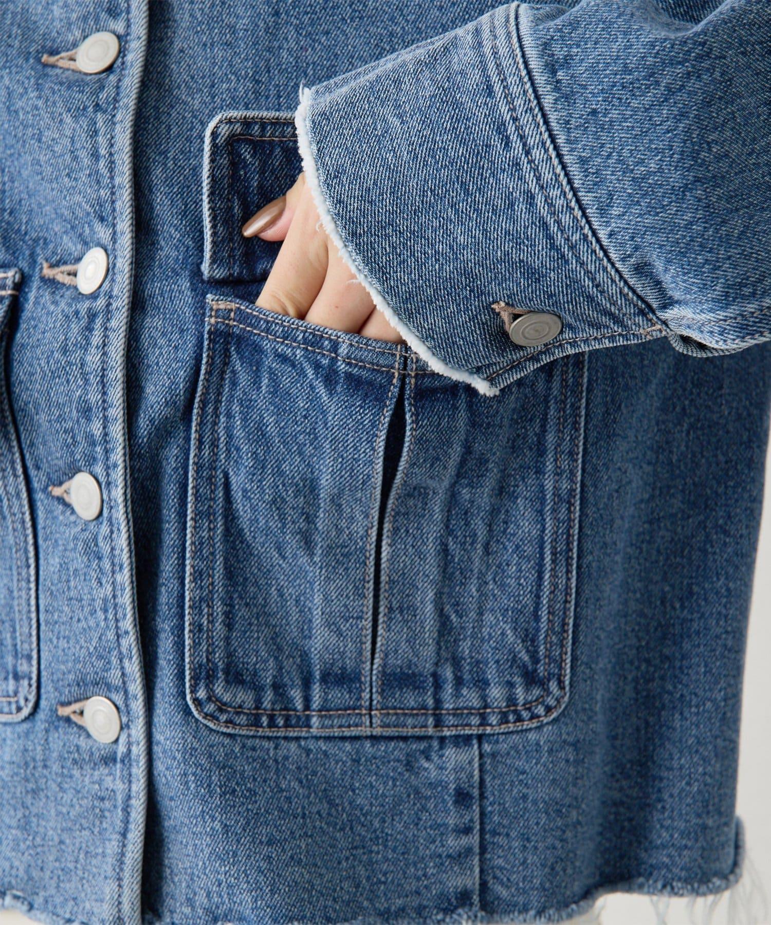 這款圓領夾克採用 12.5 盎司環舊牛仔布製成。