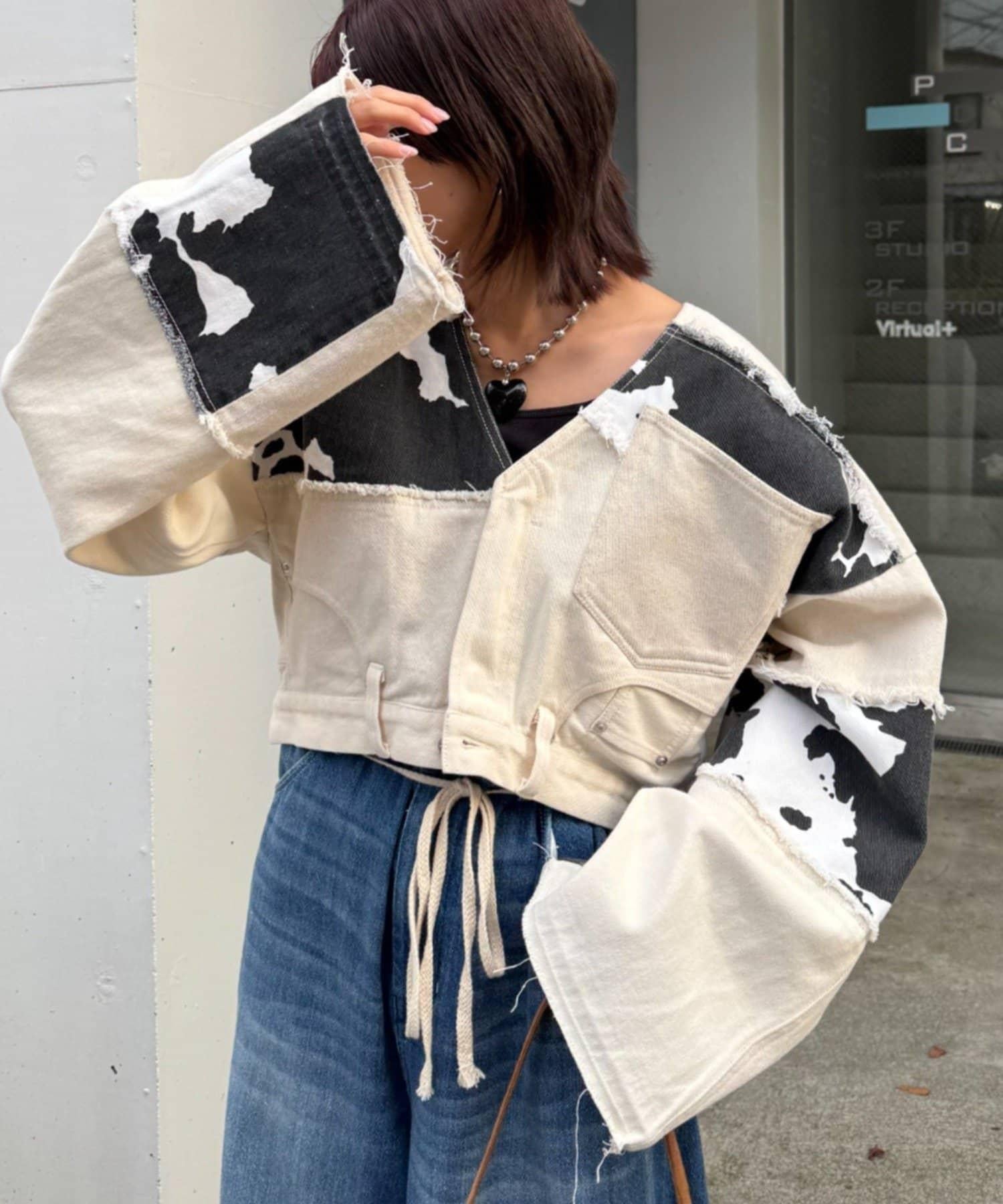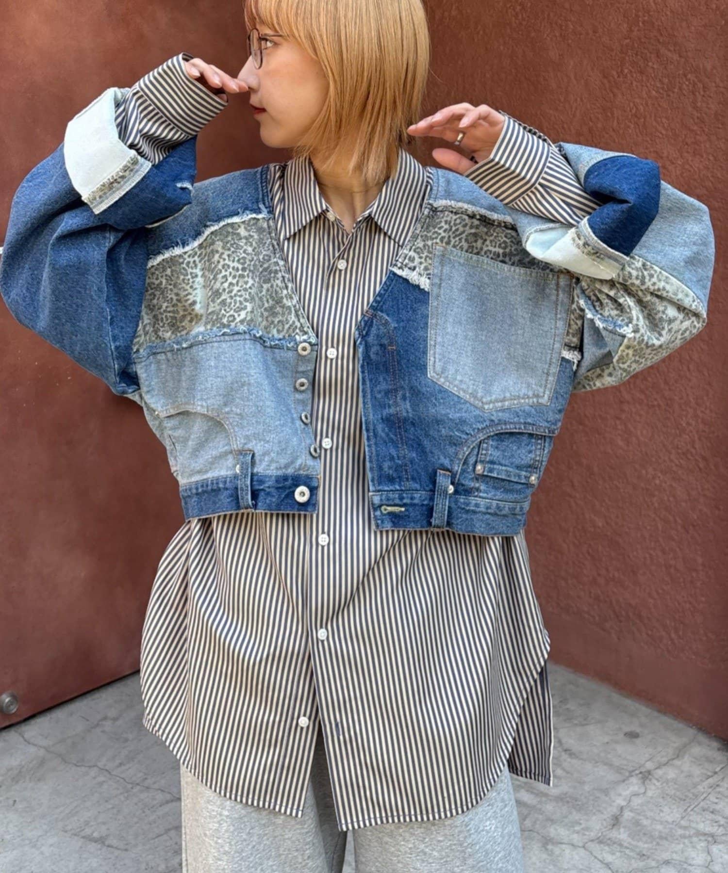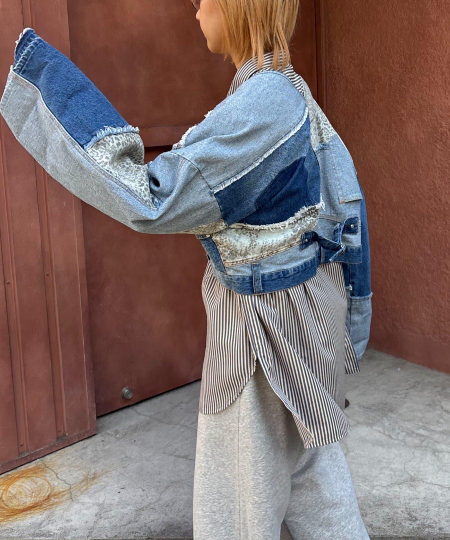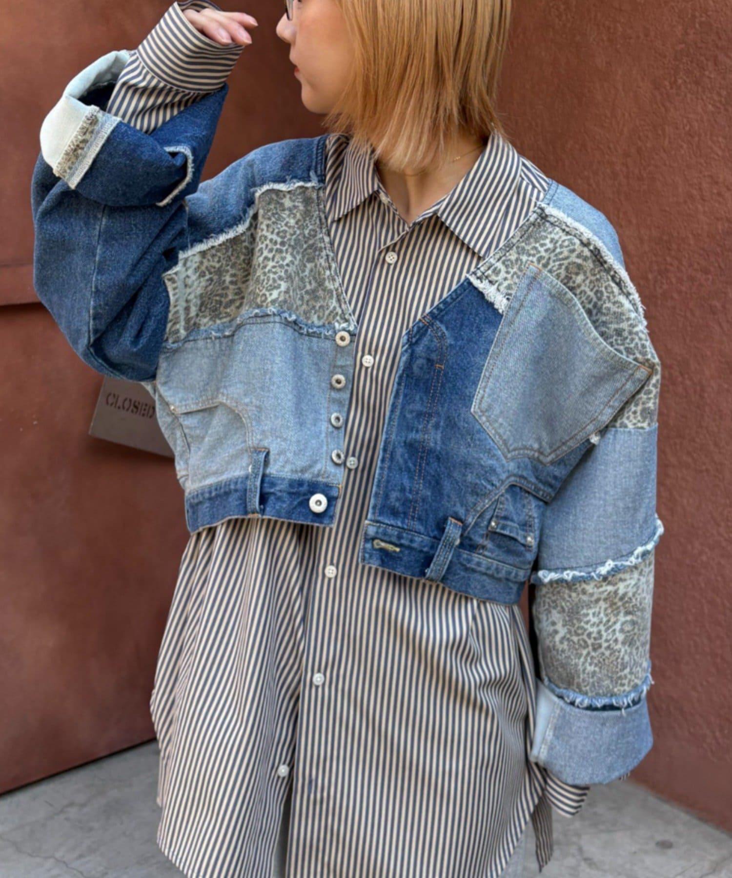 牛仔拼接短款夾克(展示會款)