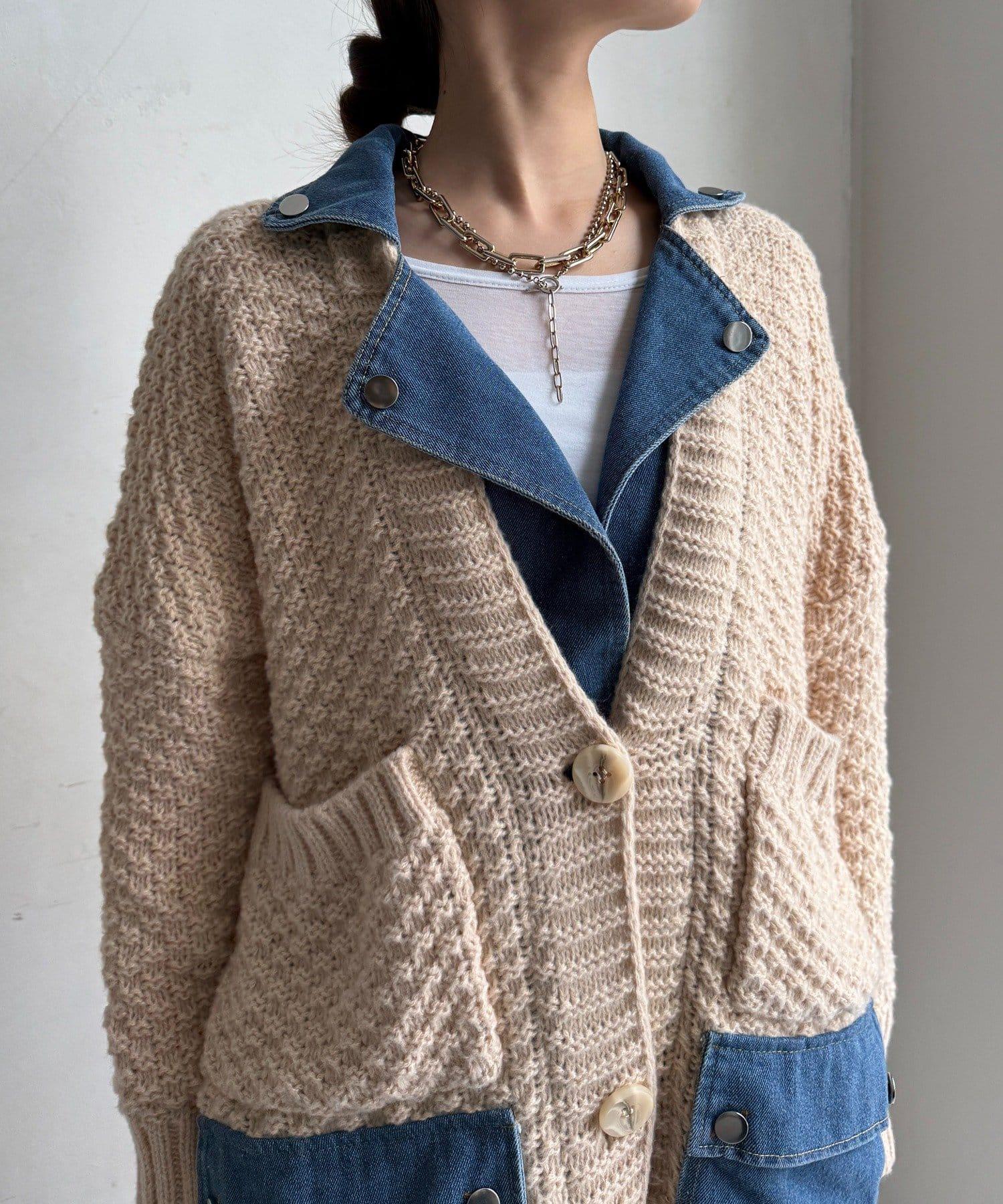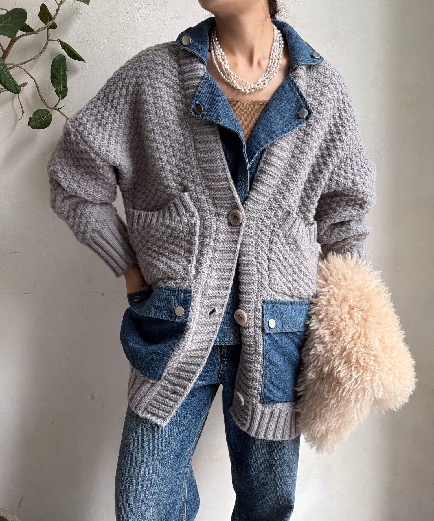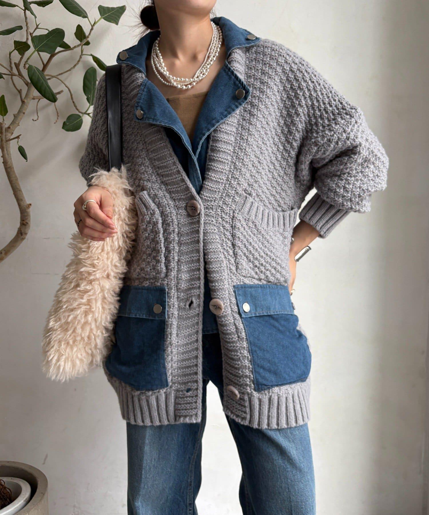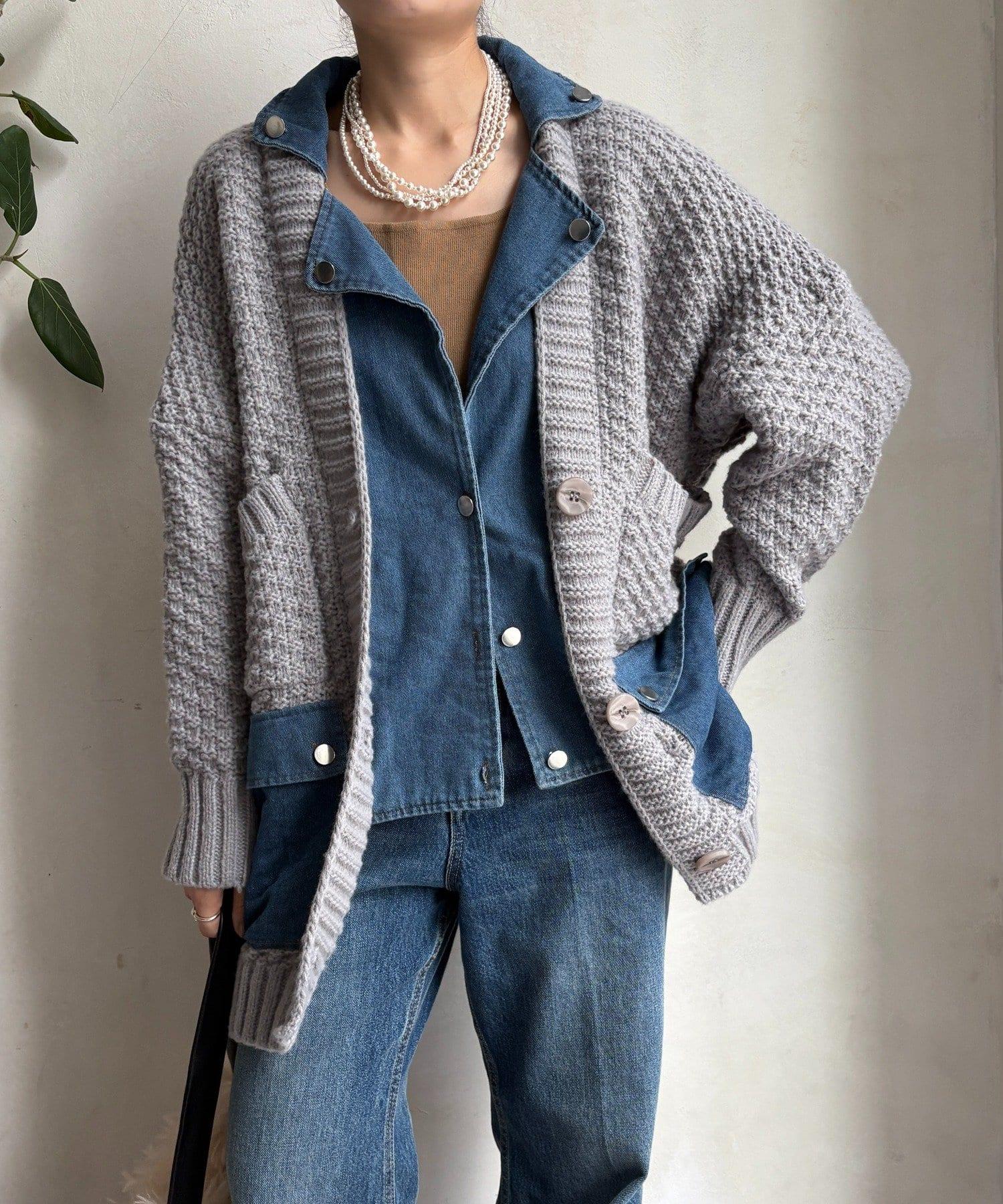 針織開衫外套與牛仔布對接!