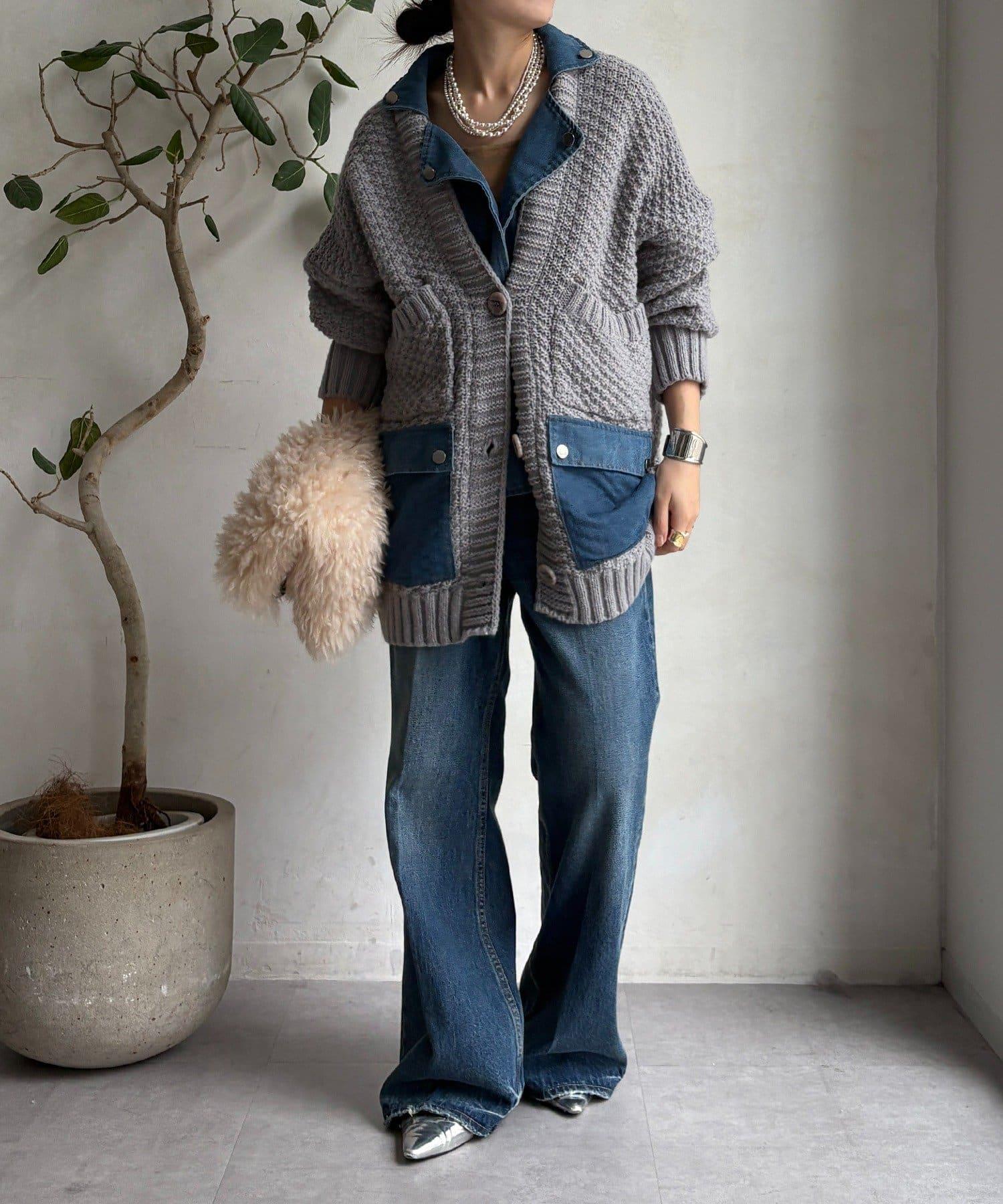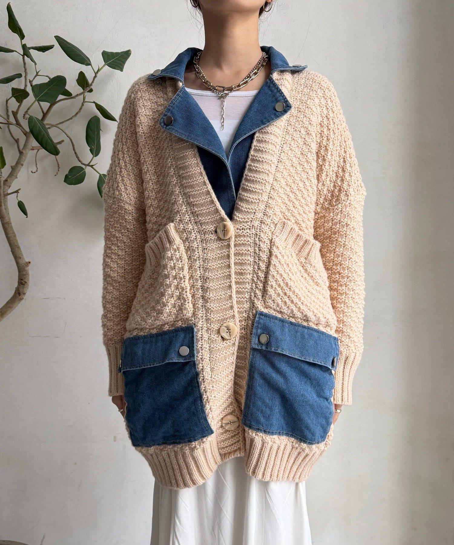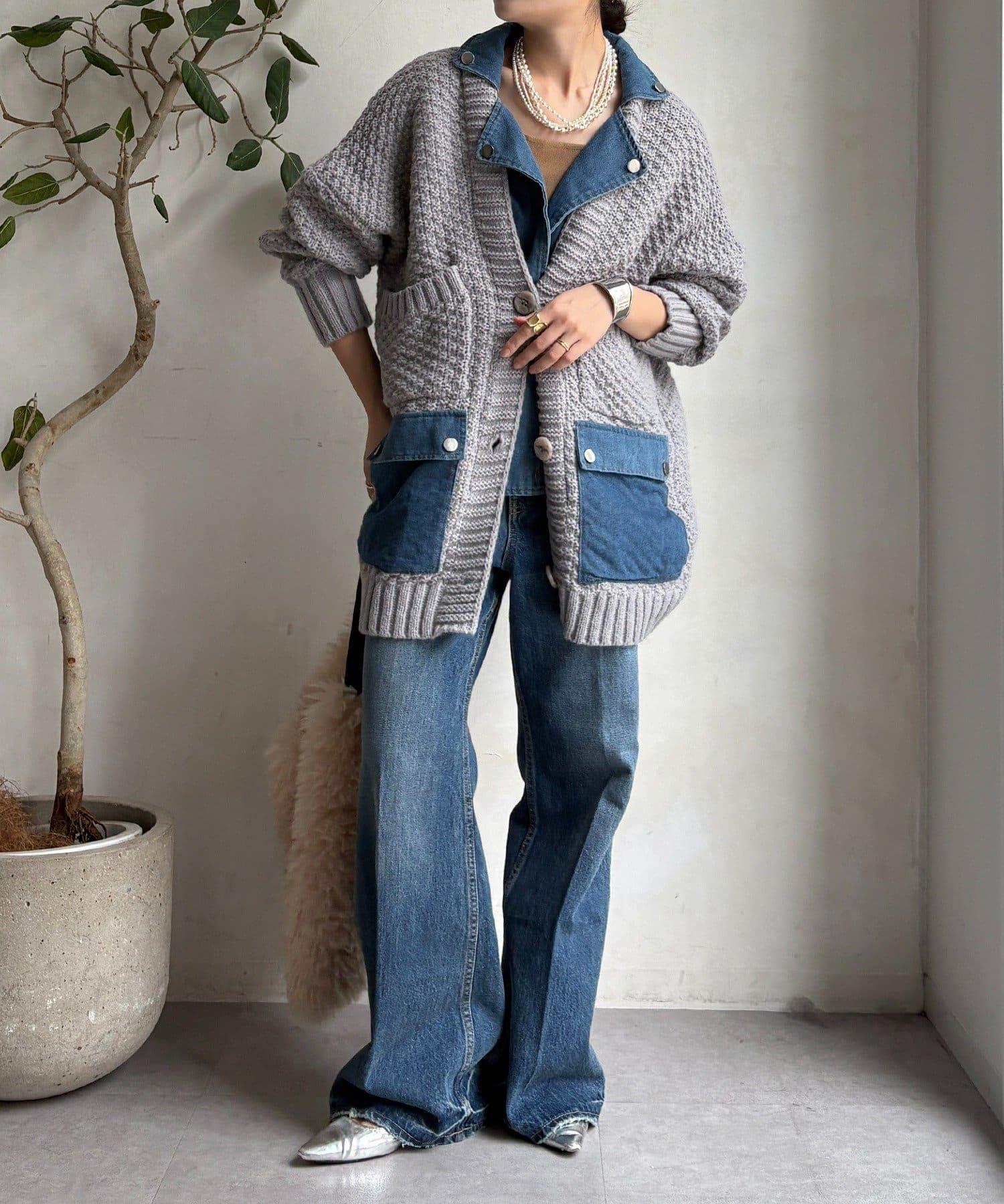 針織開衫外套與牛仔布對接!