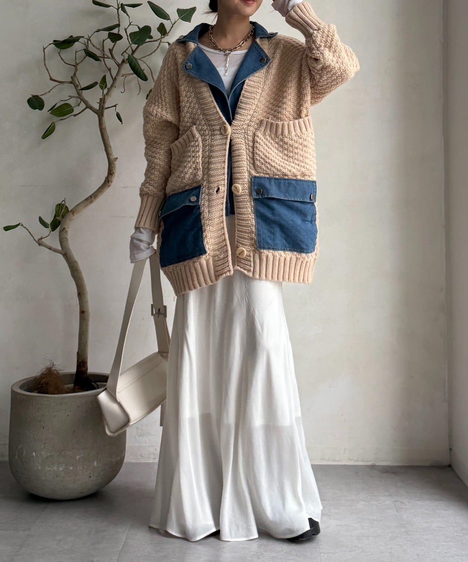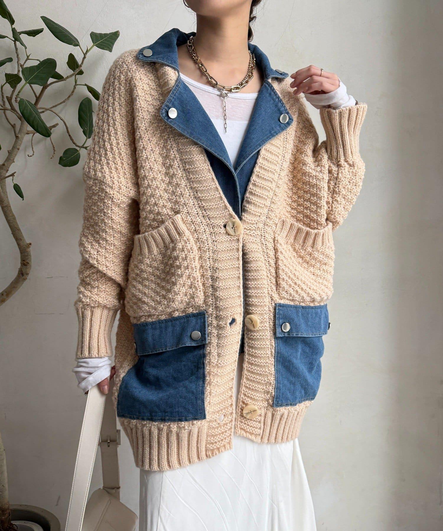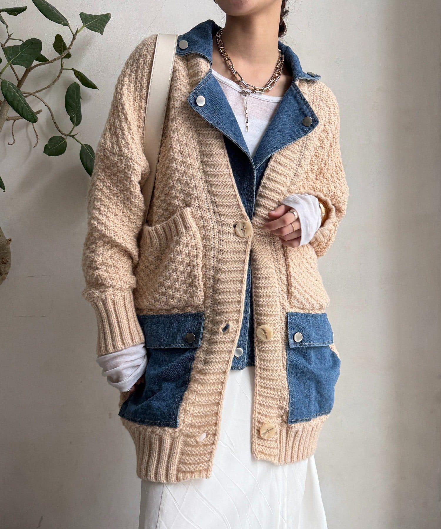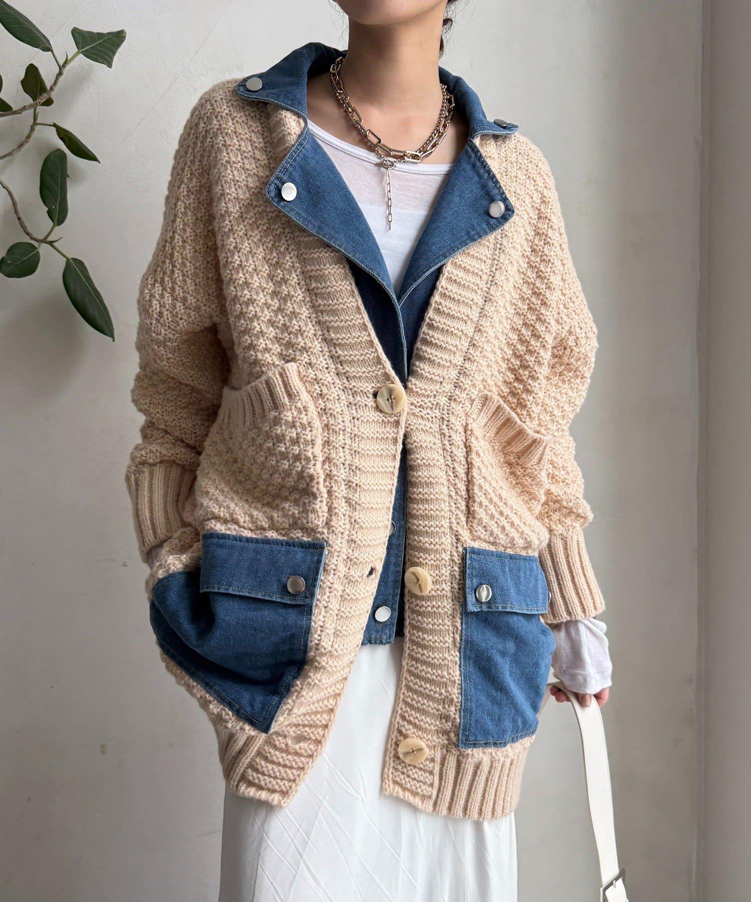 針織開衫外套與牛仔布對接!