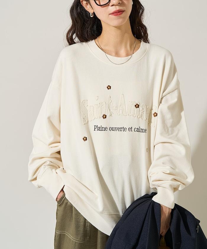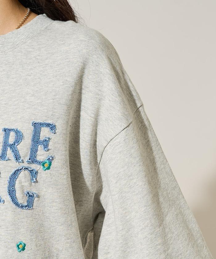 帶有牛仔徽標和花朵刺繡的復古工藝運動衫。