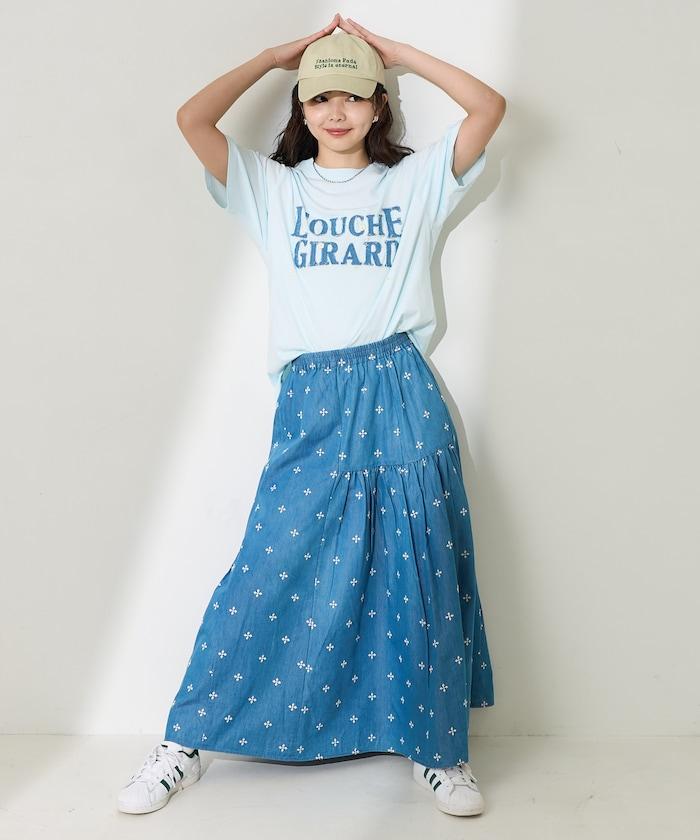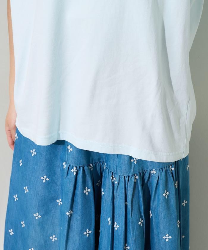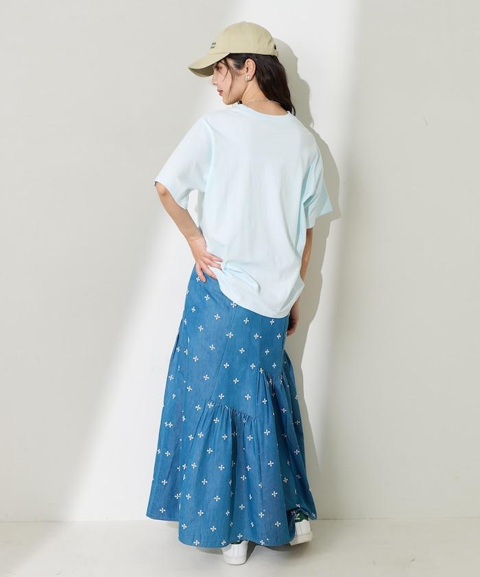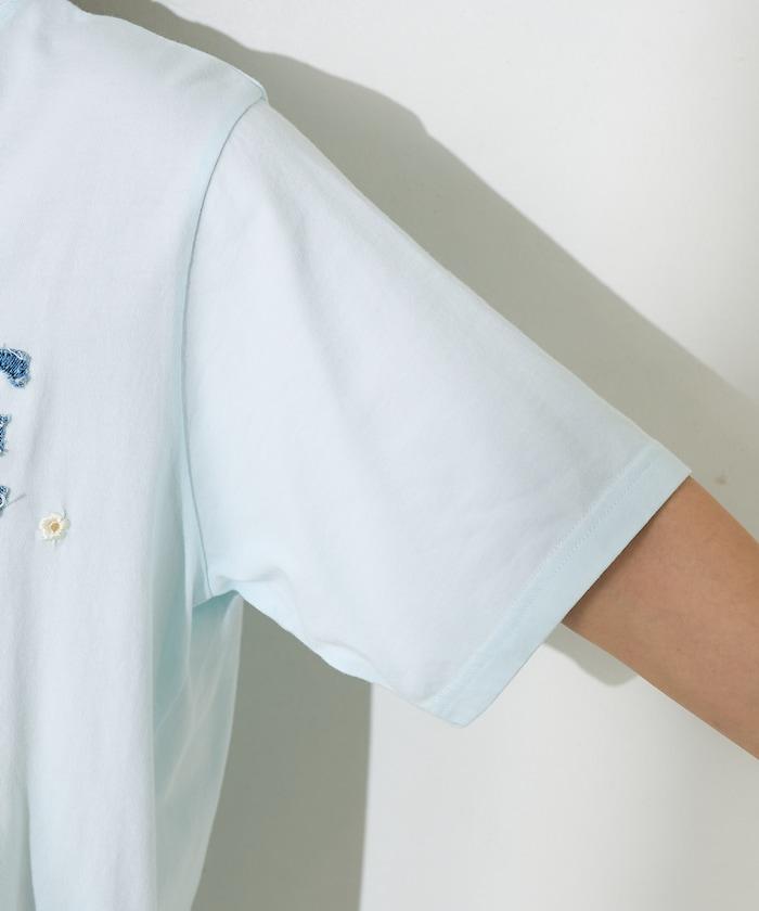 這款 T 恤設計精緻,帶有復古風格的牛仔標誌和花朵刺繡。