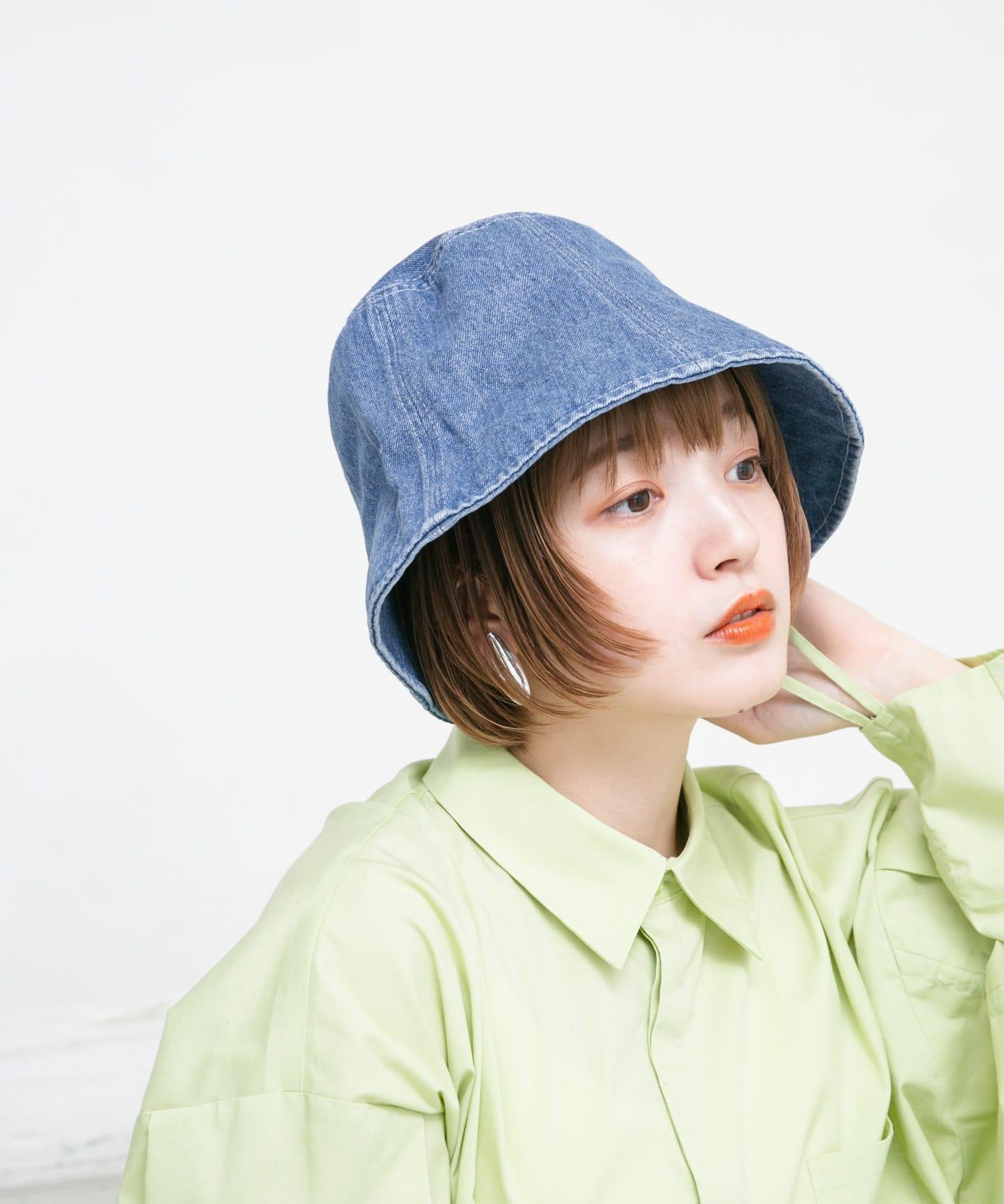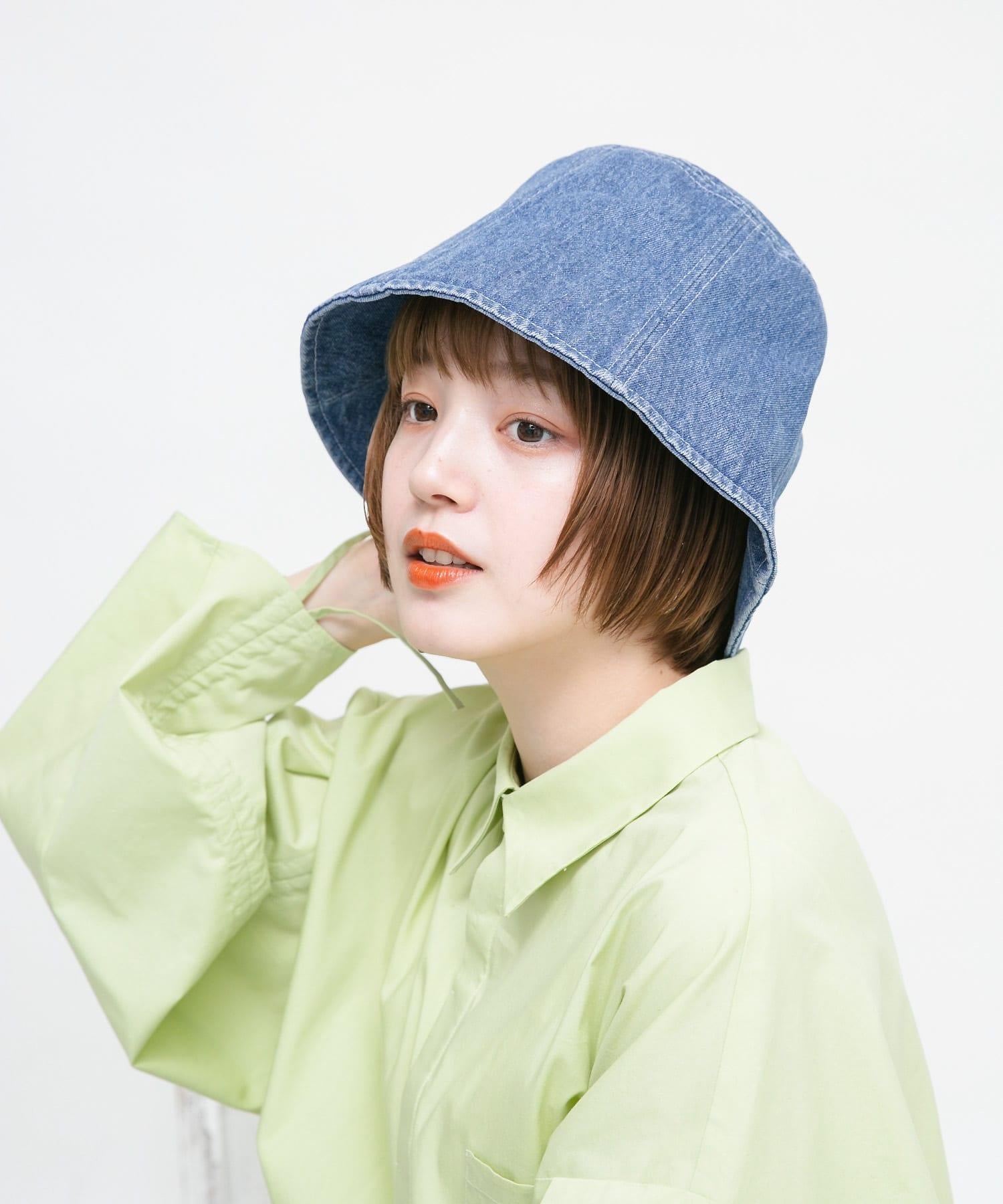 牛仔布水桶帽適合搭配休閒裝。石磨洗舊的外觀是一大亮點。