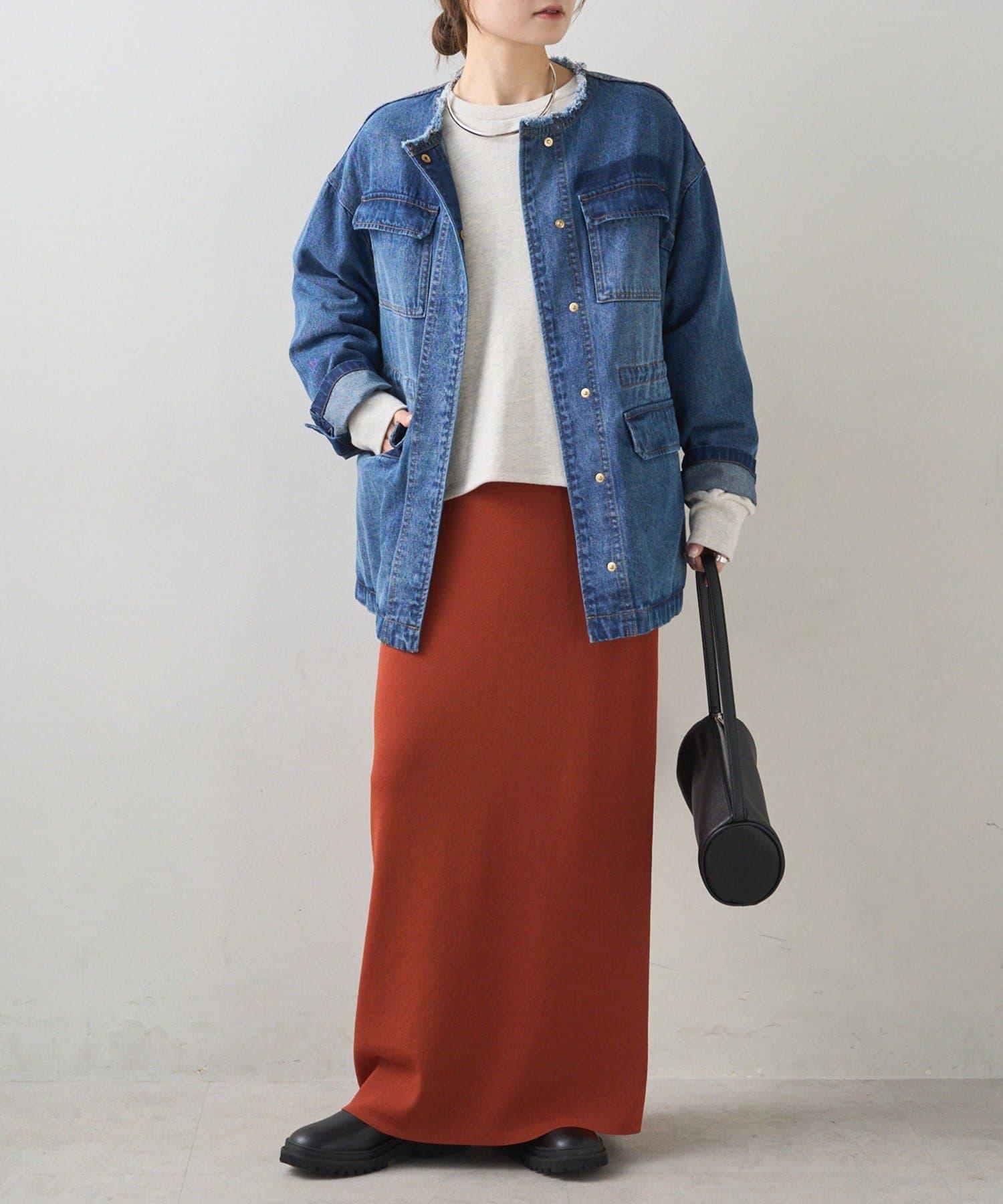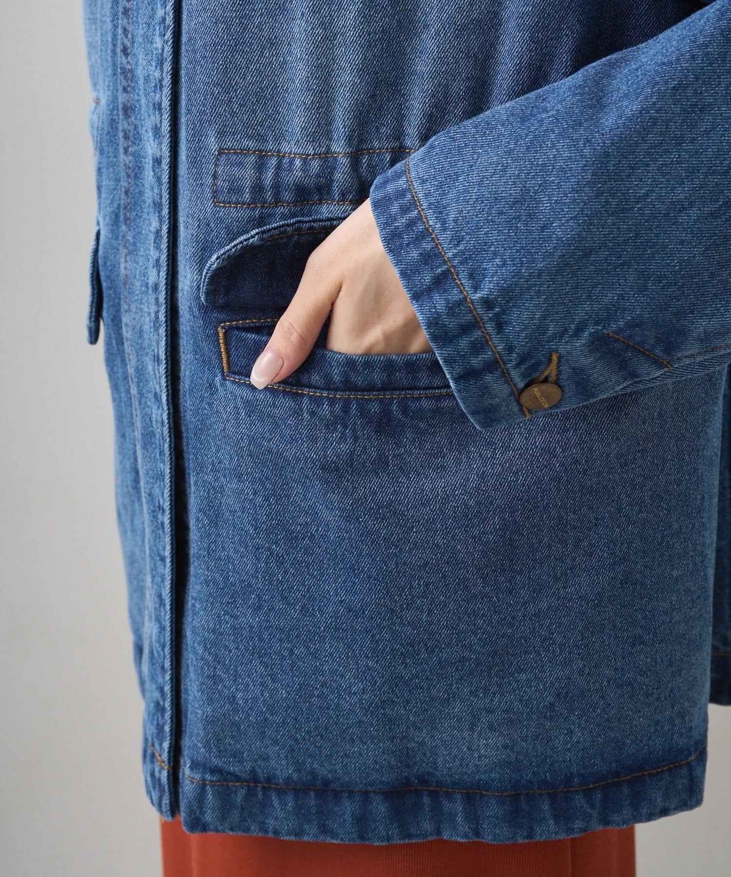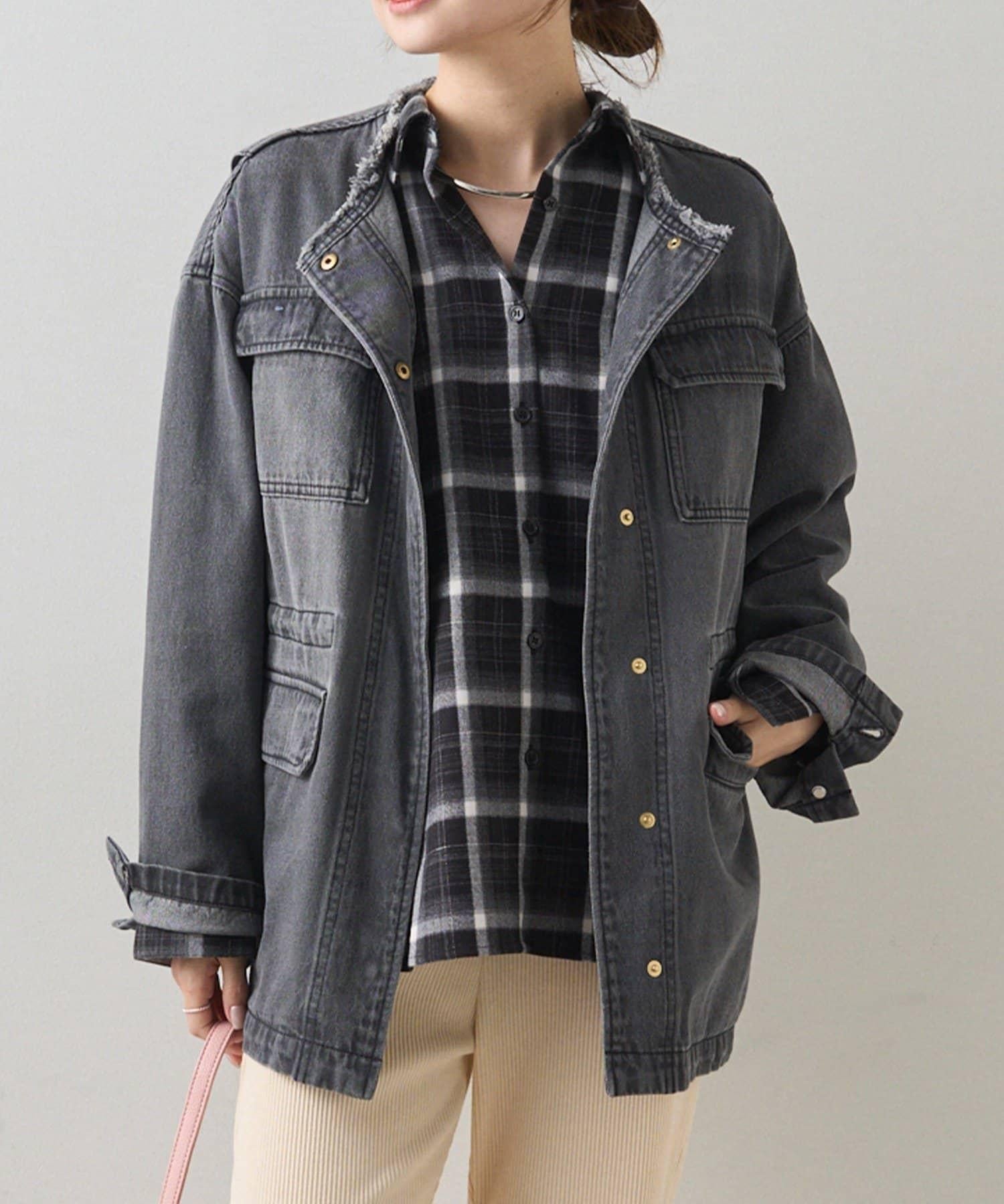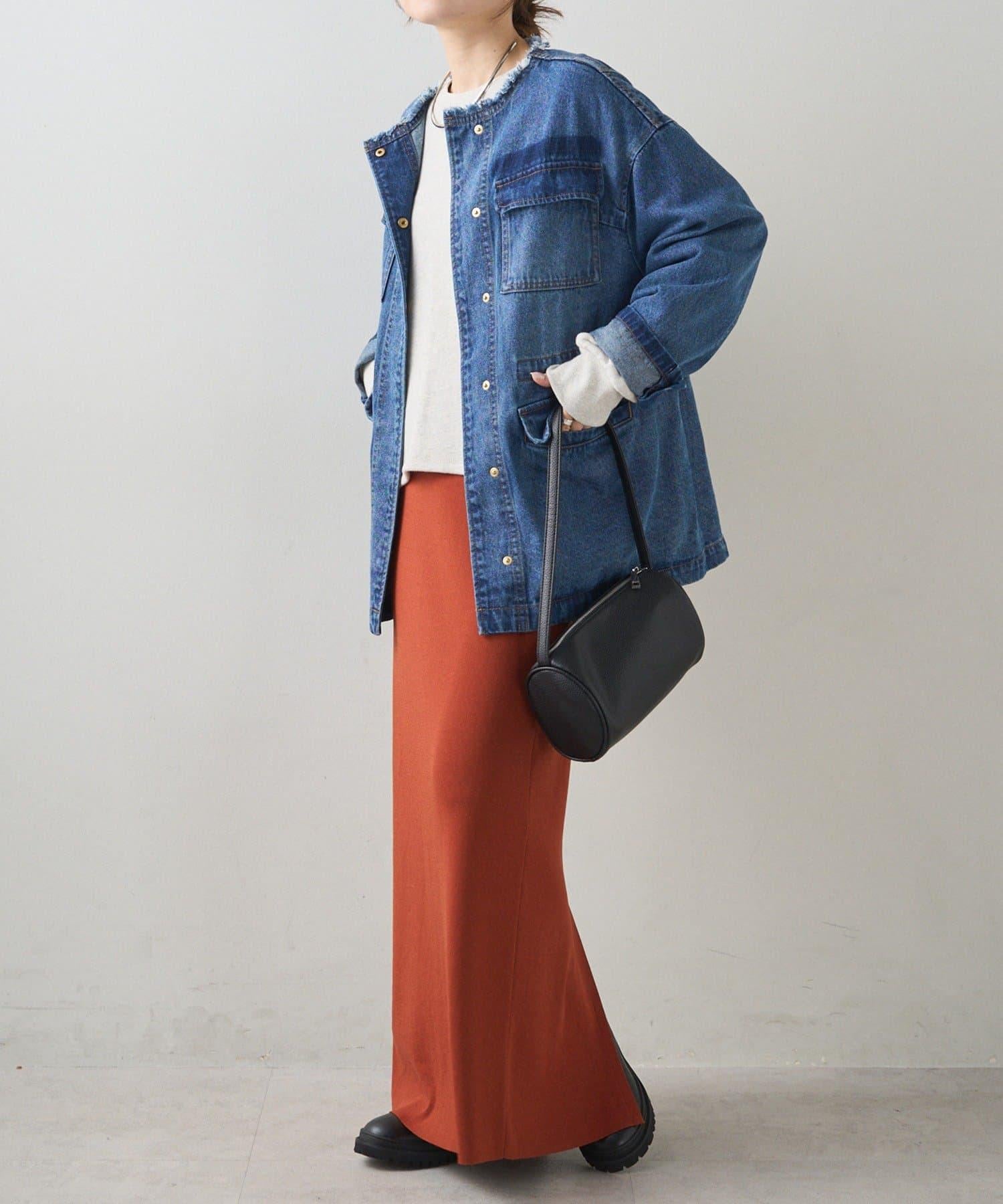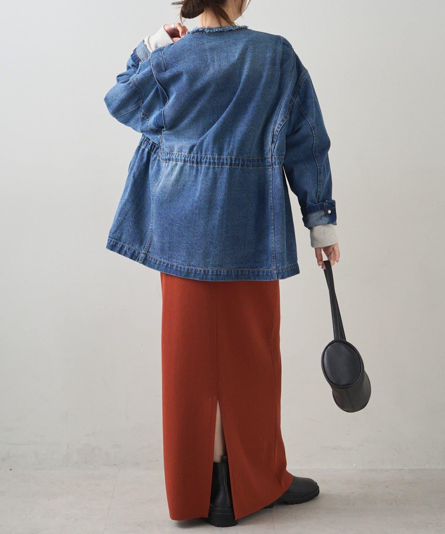 這款夾克既有牛仔布的休閒感,又有無領的精緻感、