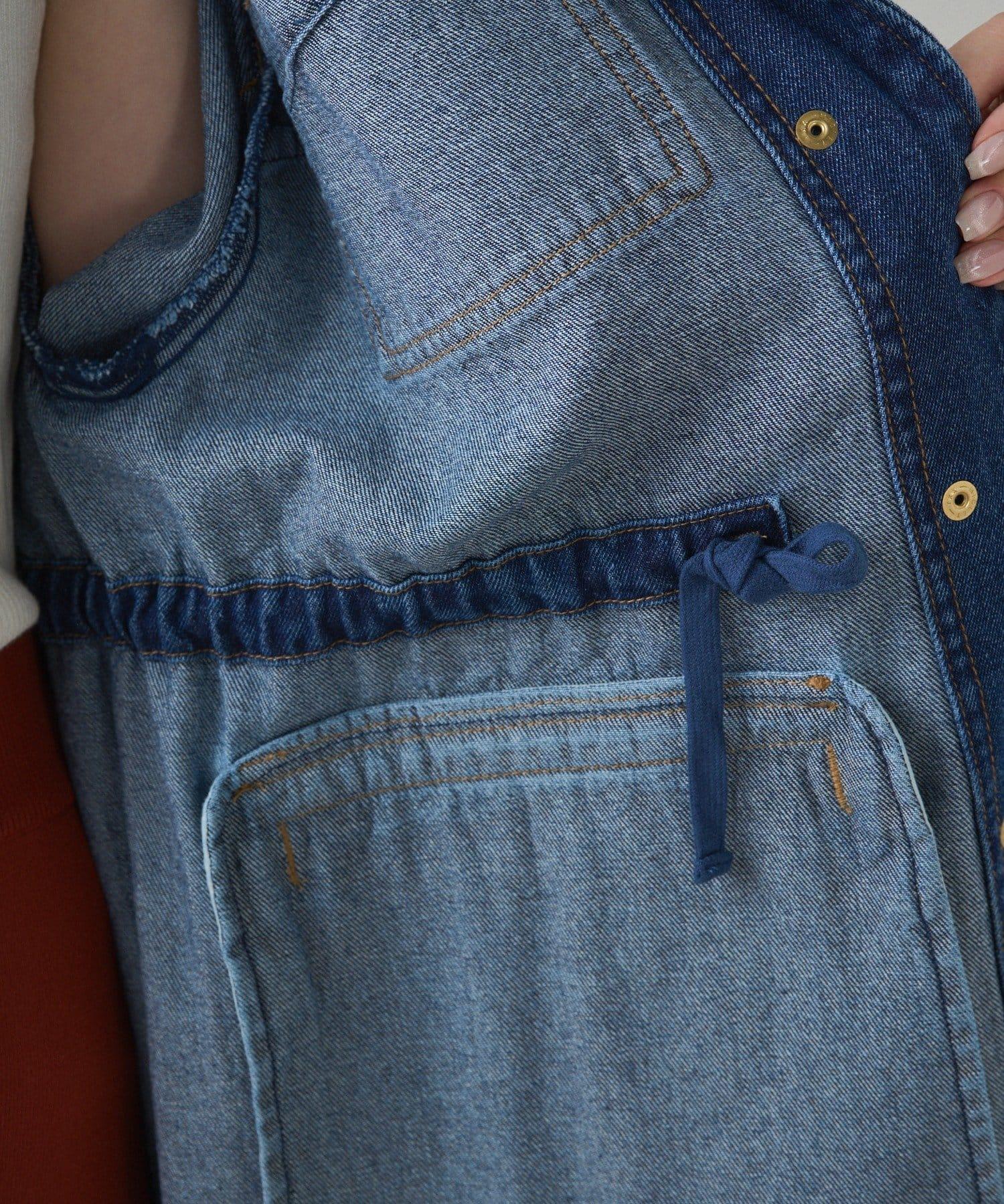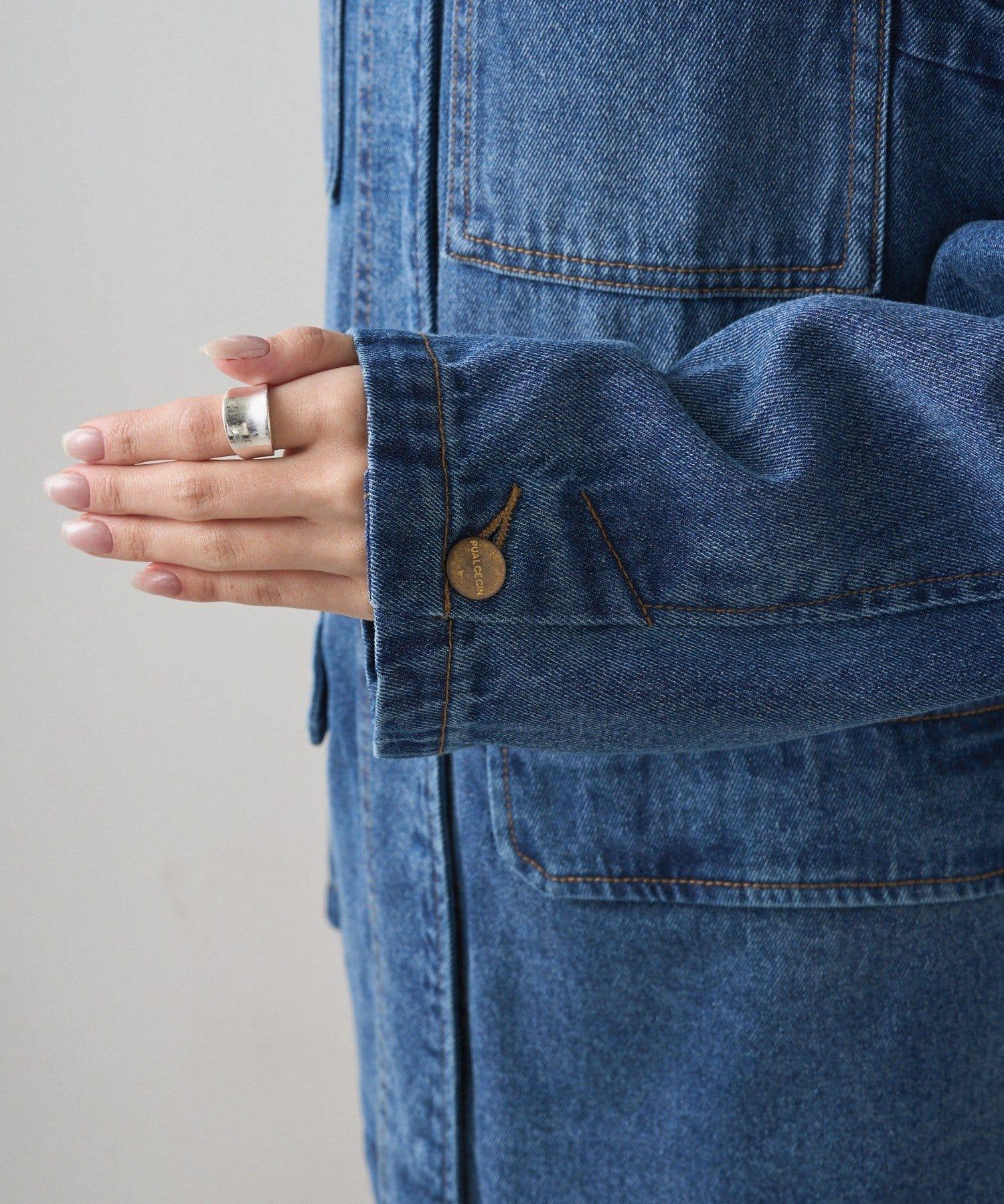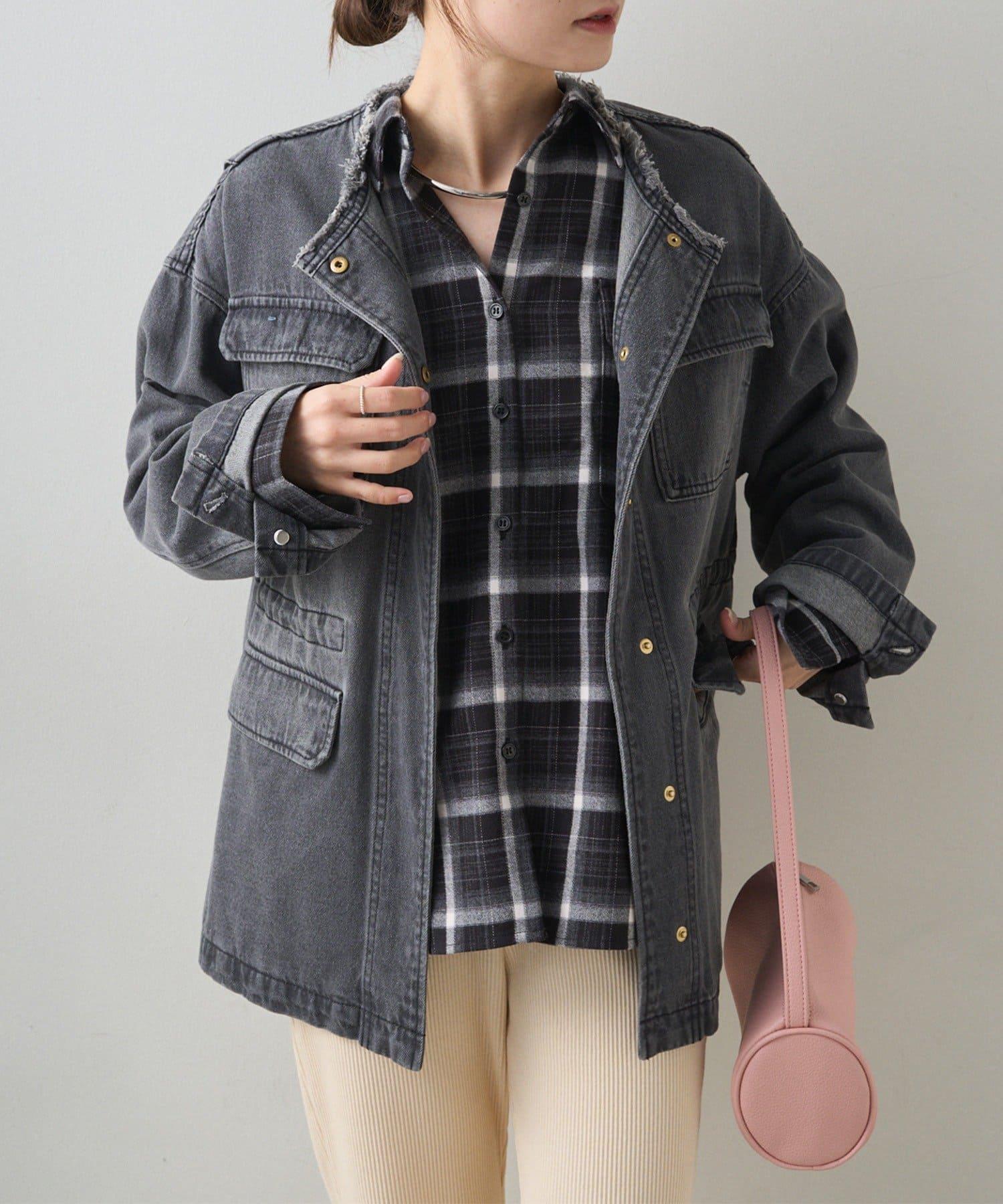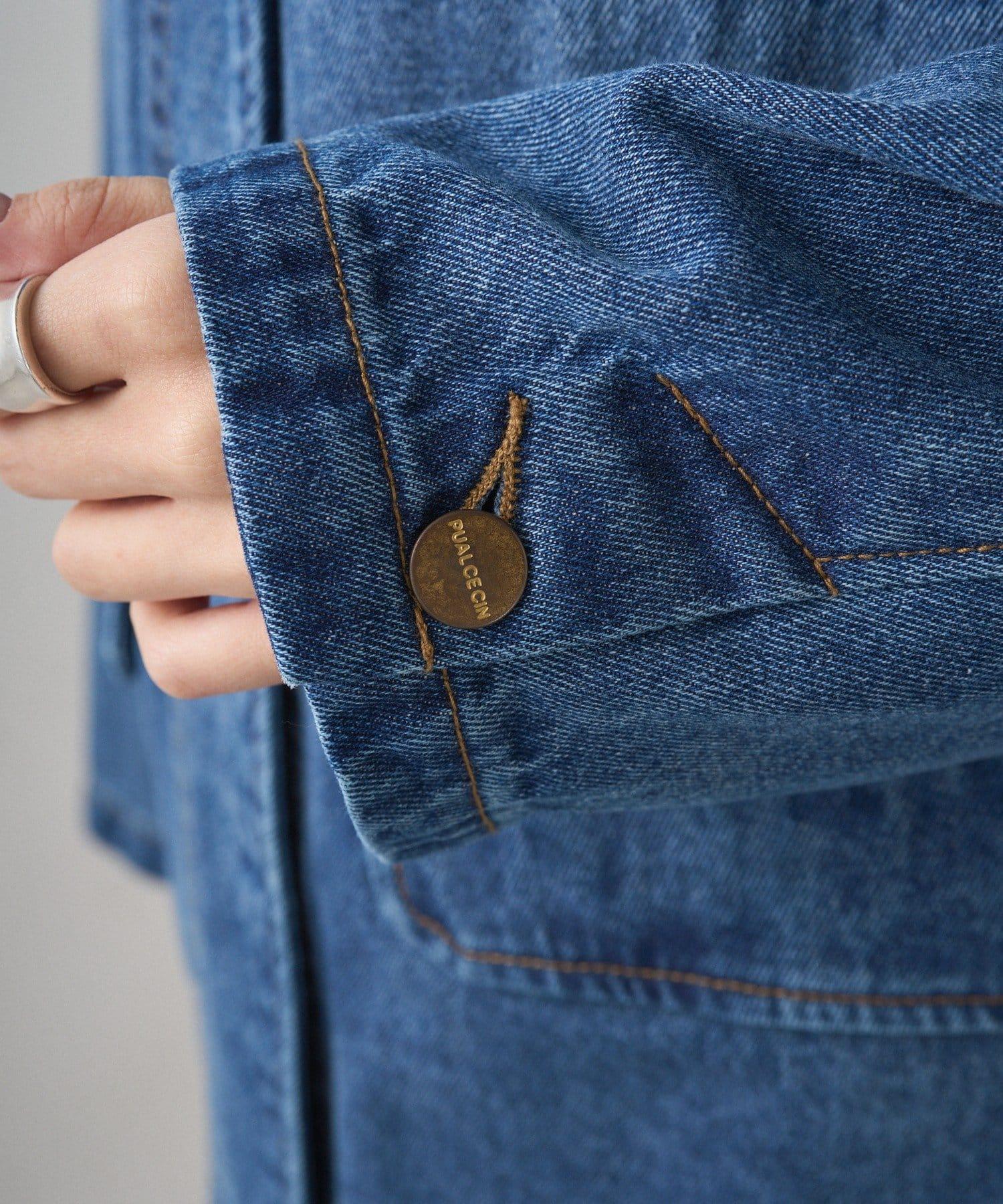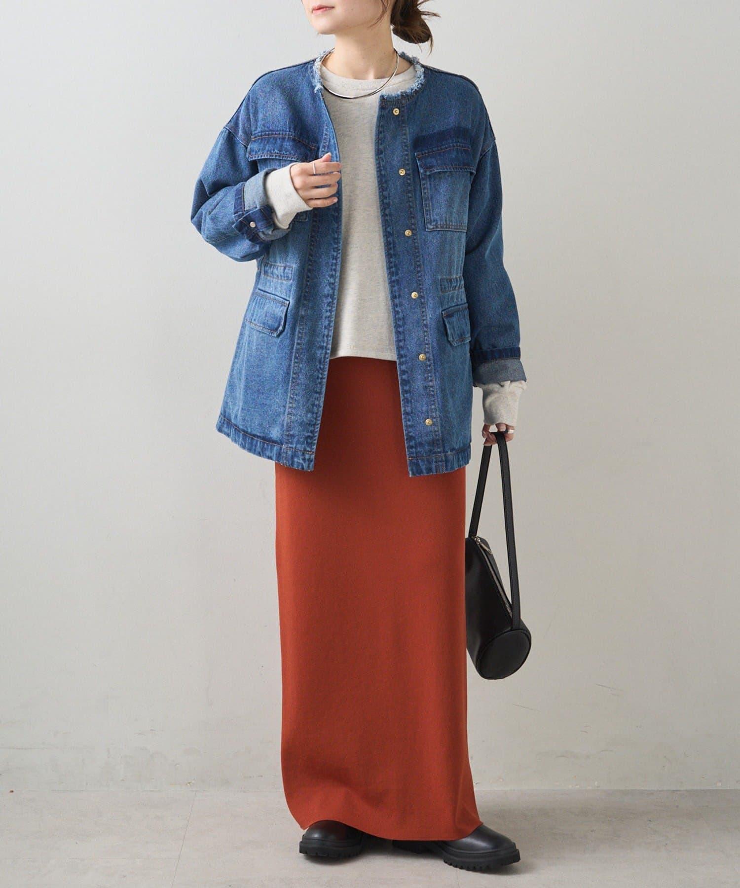 這款夾克既有牛仔布的休閒感,又有無領的精緻感、
