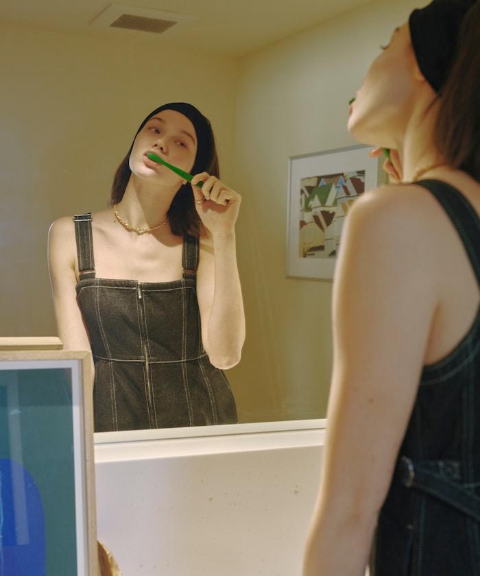 設計中敢於使用拼接的配色,使垂直線格外突出。