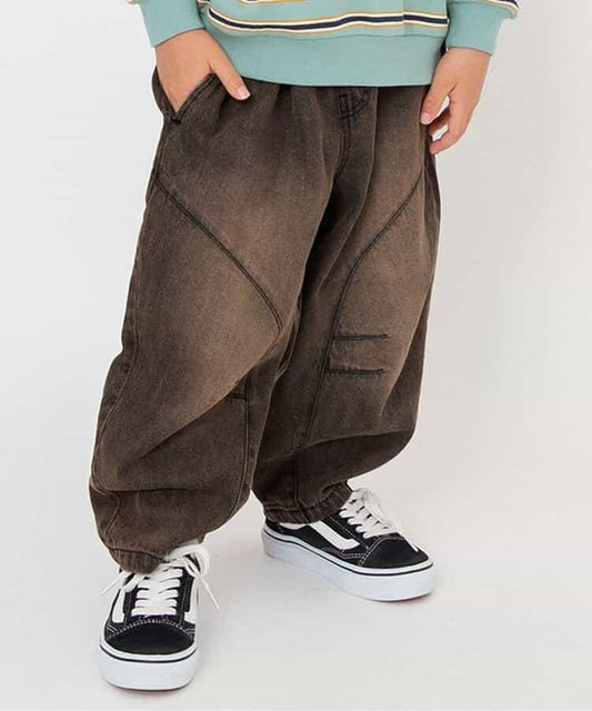 BREEZE的 "WEB Limited Denim Knit Long Pants "因其時尚且易於行動的設計而備受歡迎,推薦用於上學和上學時穿著!