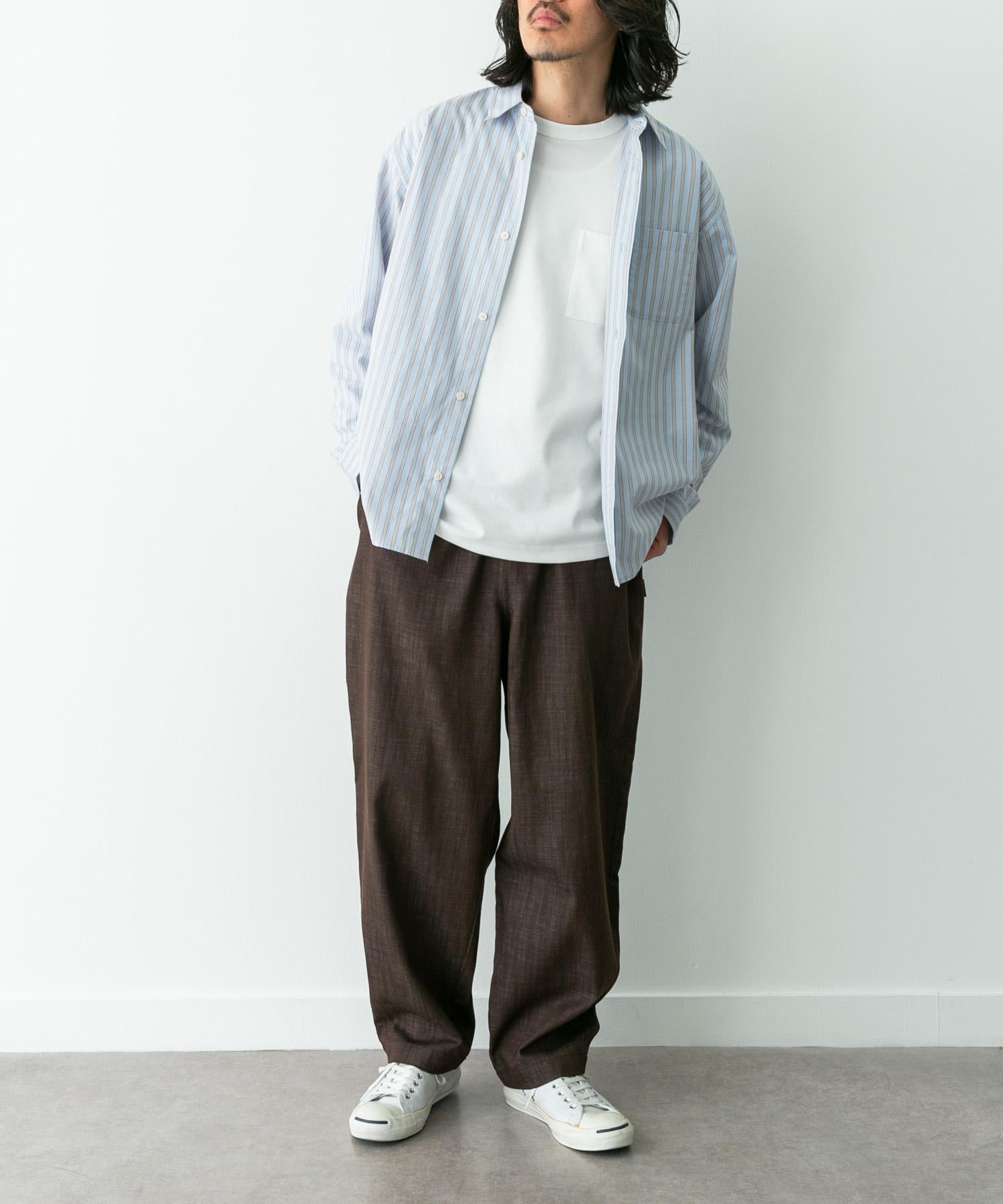 寬鬆、寬大的廓形採用垂直下垂的設計,既能輕鬆搭配出成熟的感覺,又不會顯得過於單調。它可以與運動鞋隨意搭配,打造輕鬆的度假風格,也可以與樂福鞋或皮鞋搭配,給人稍顯優雅的印象。