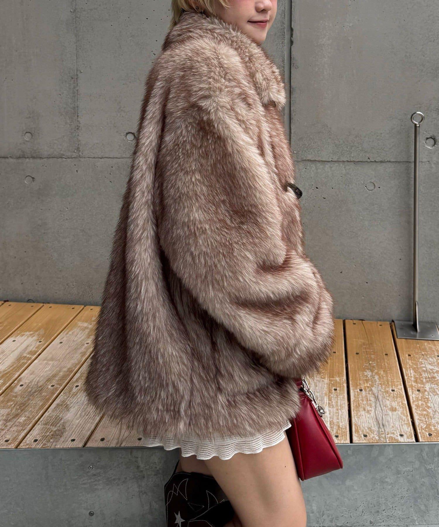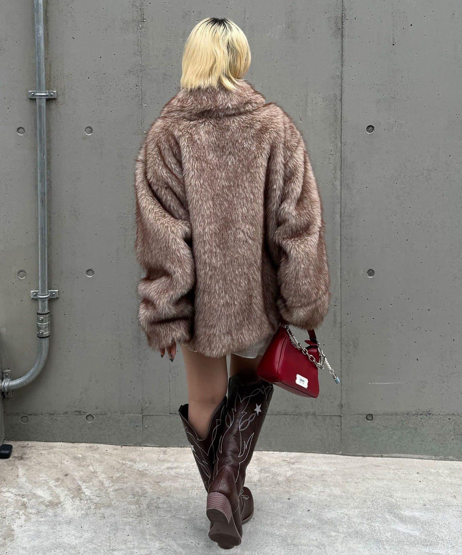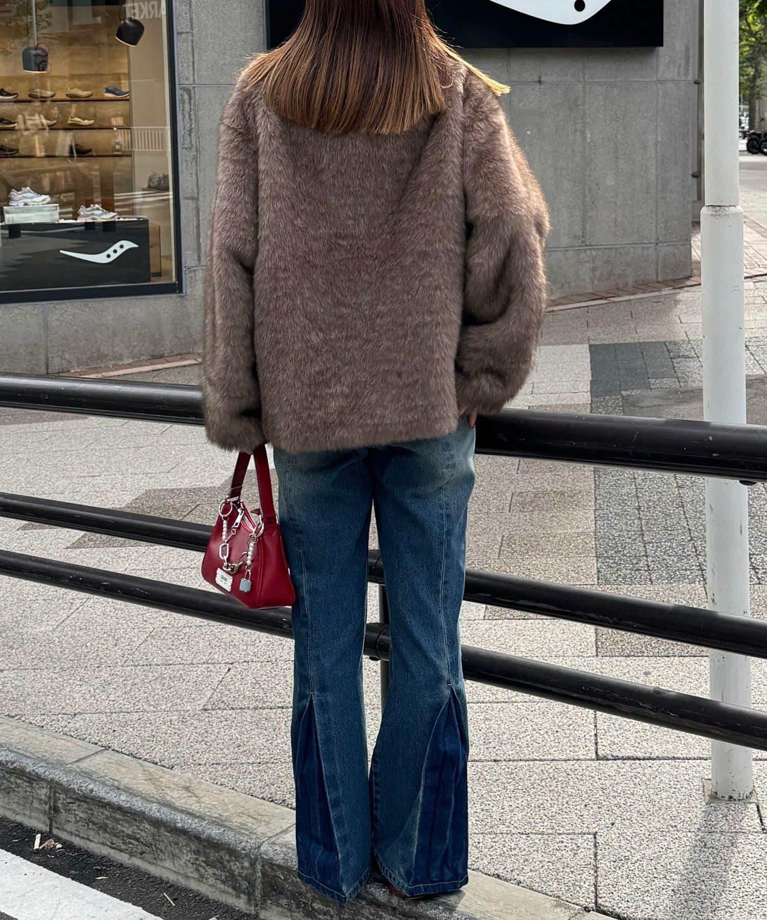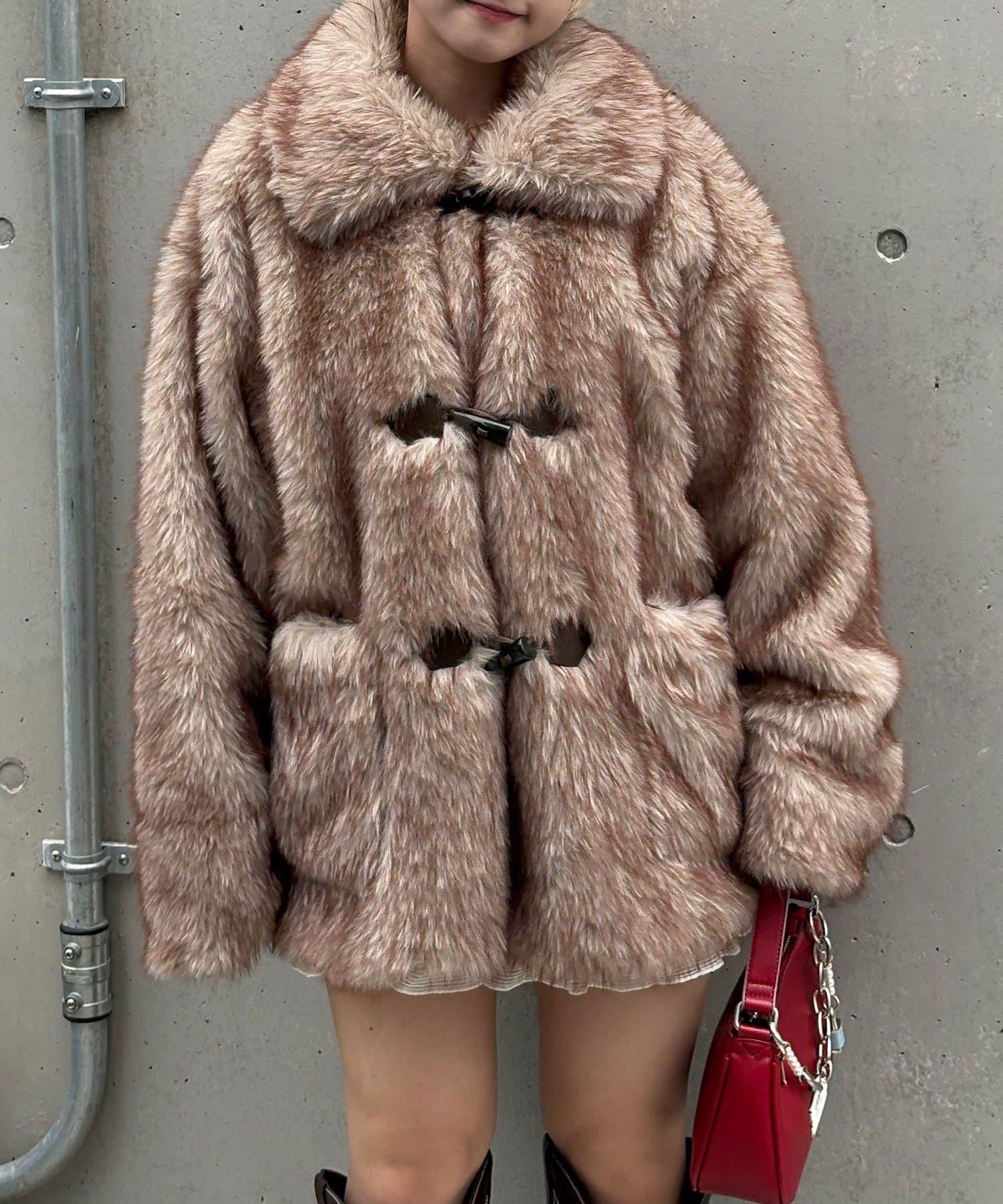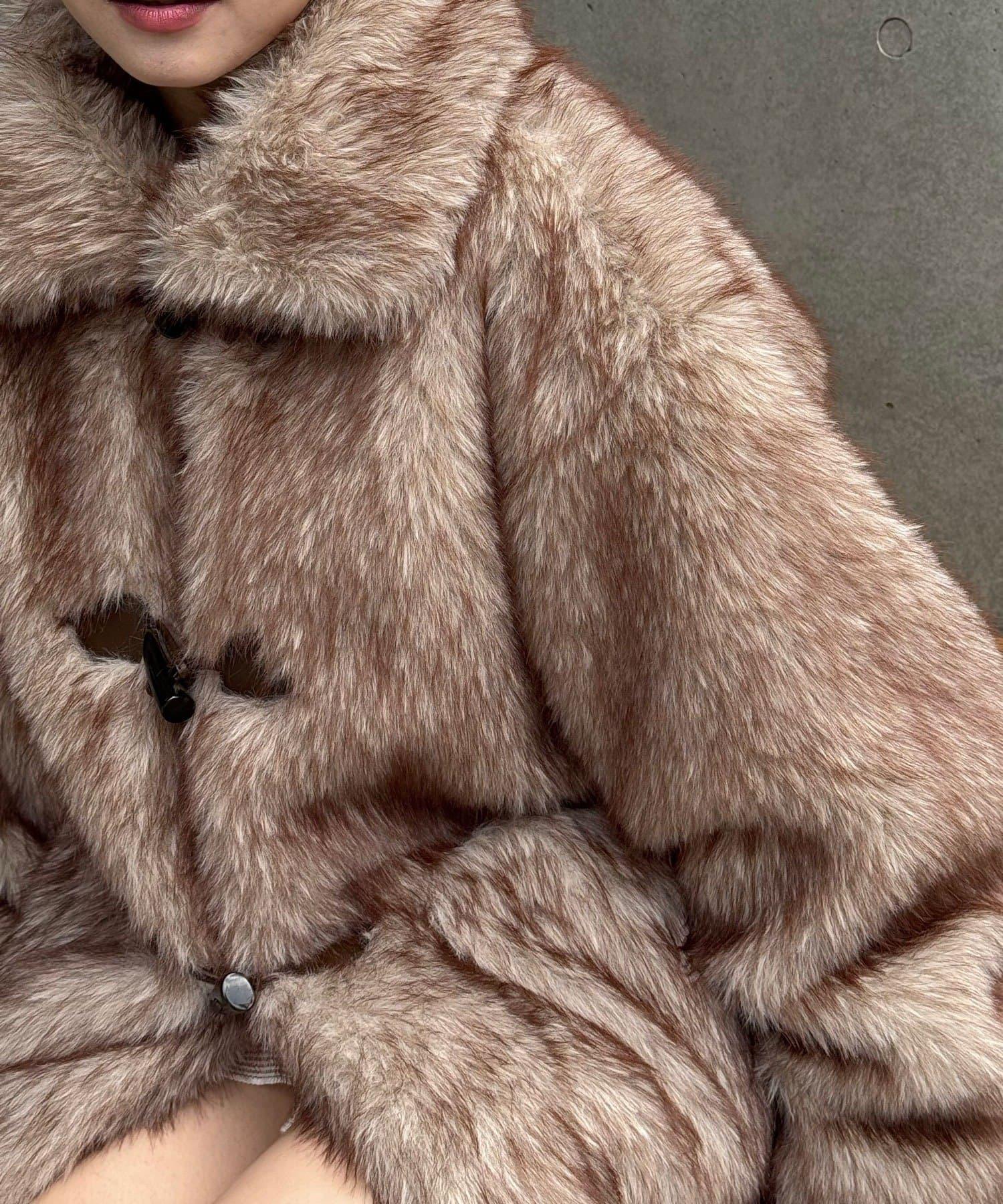 這款帶荷葉邊紐扣的皮草外套有著可愛的蓬鬆體積。