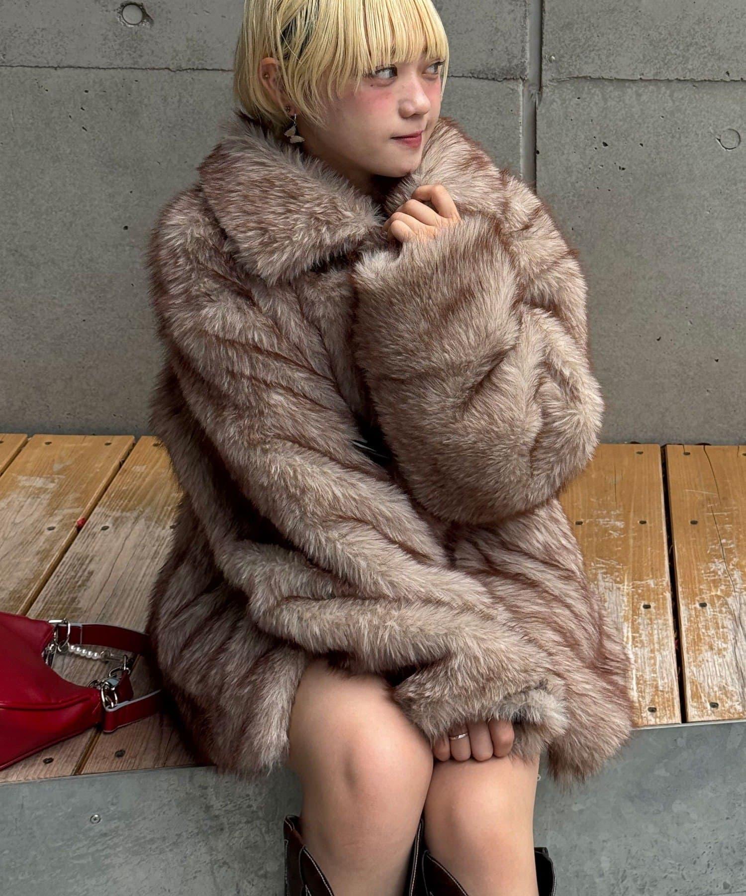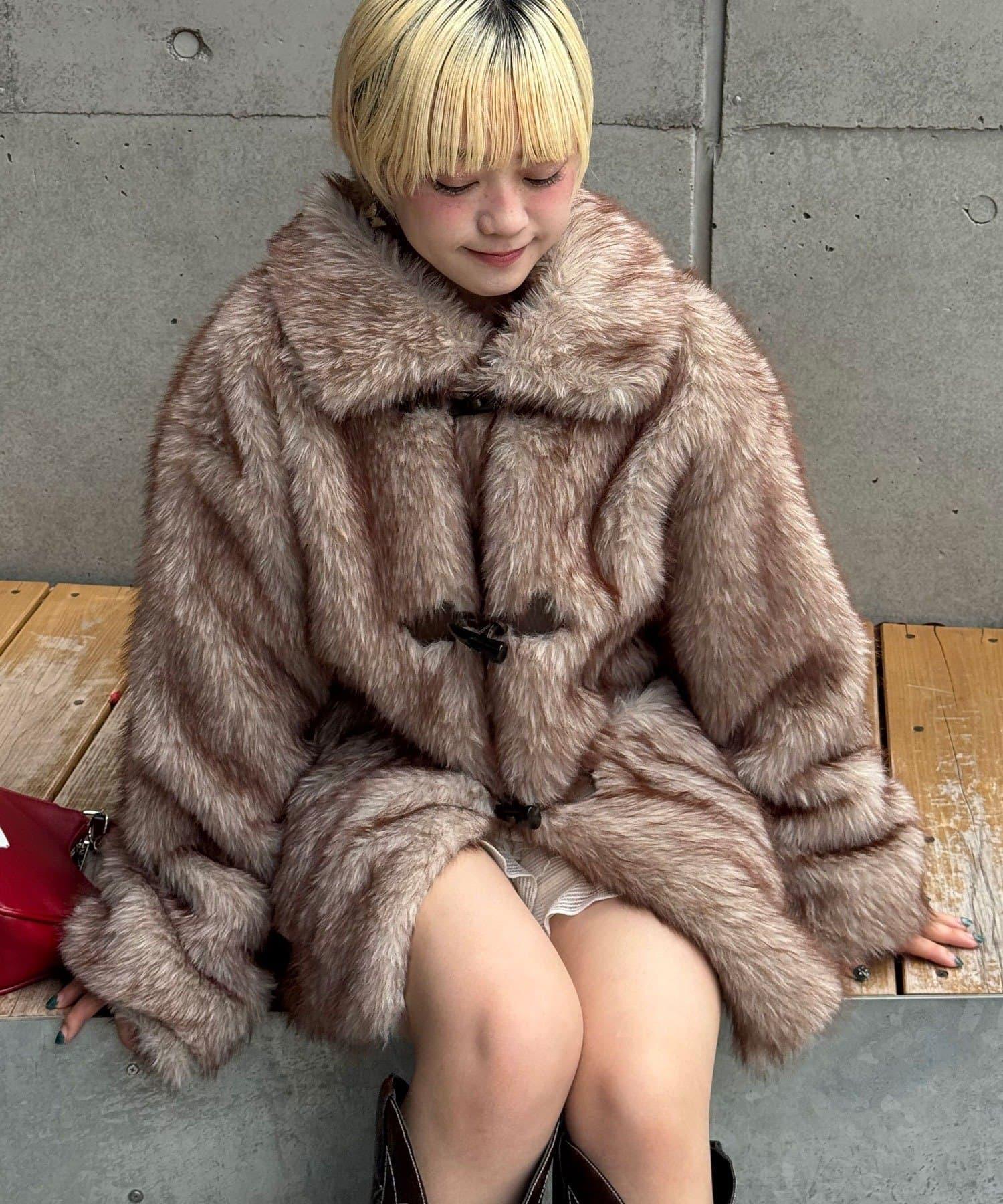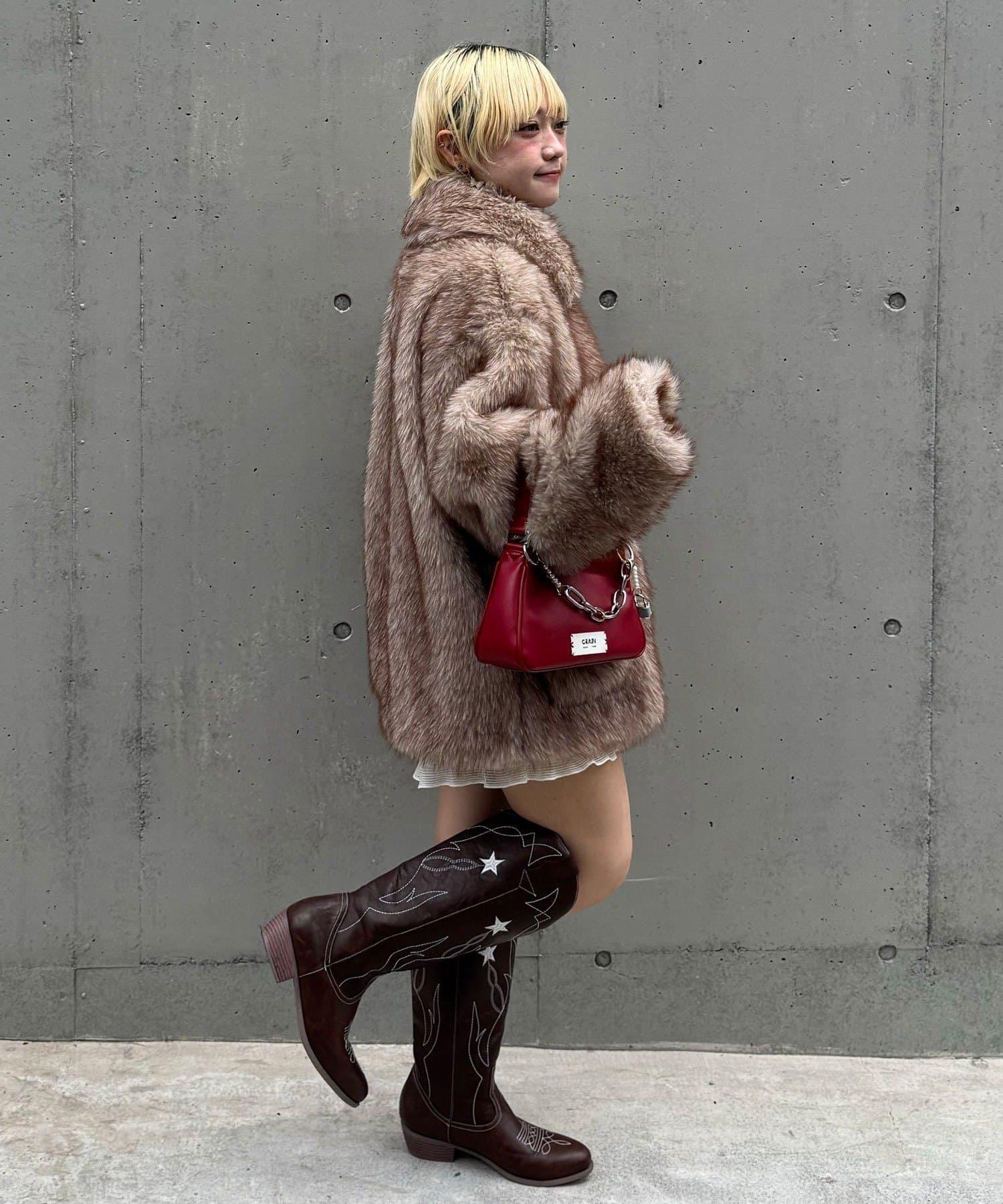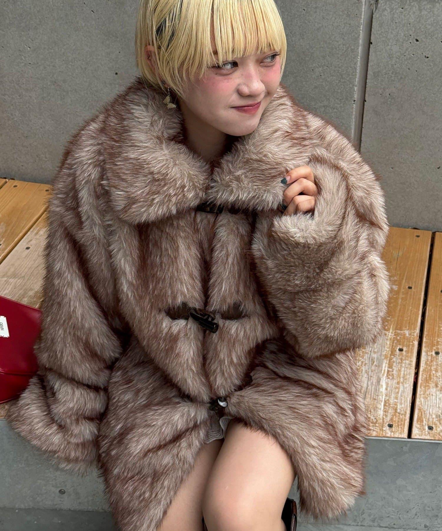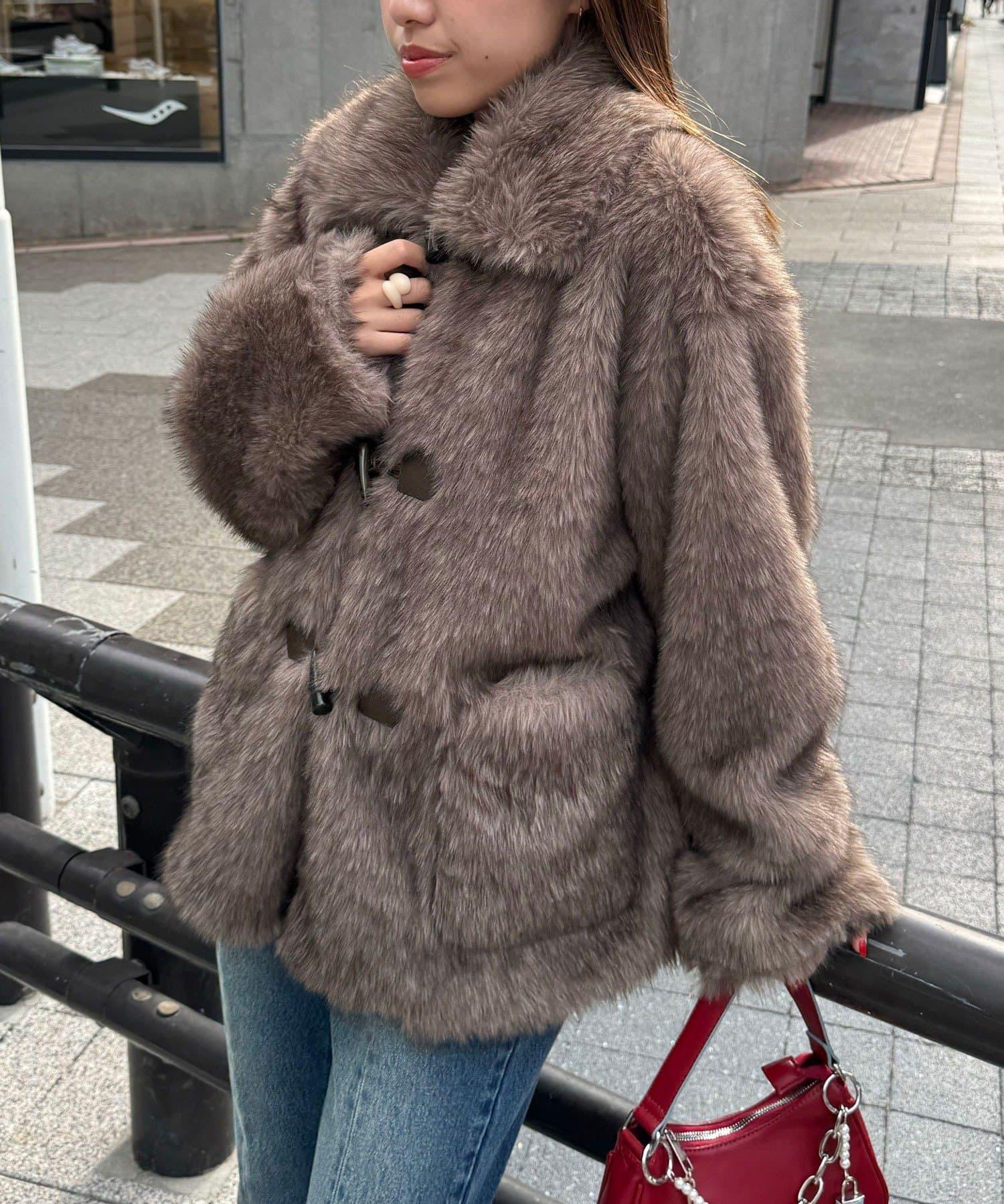 這款帶荷葉邊紐扣的皮草外套有著可愛的蓬鬆體積。